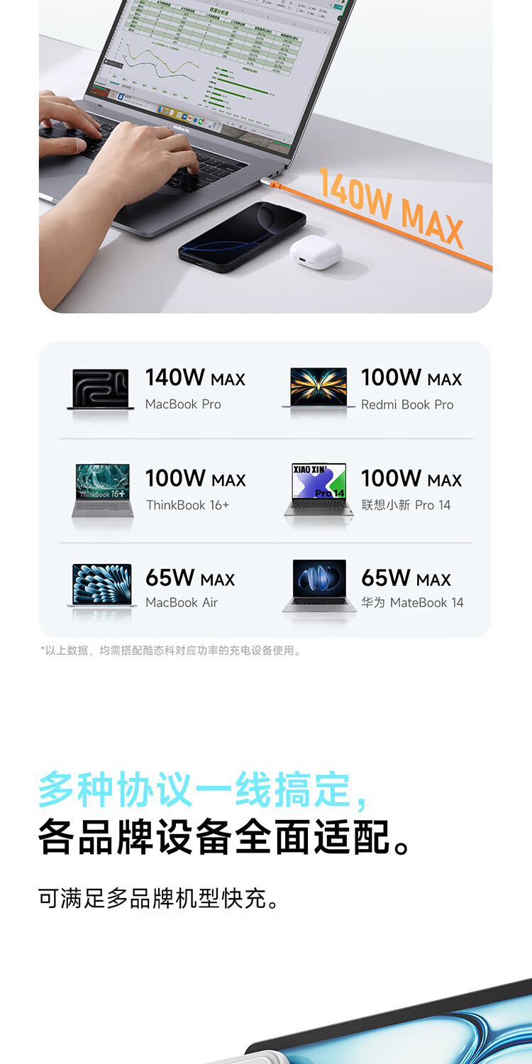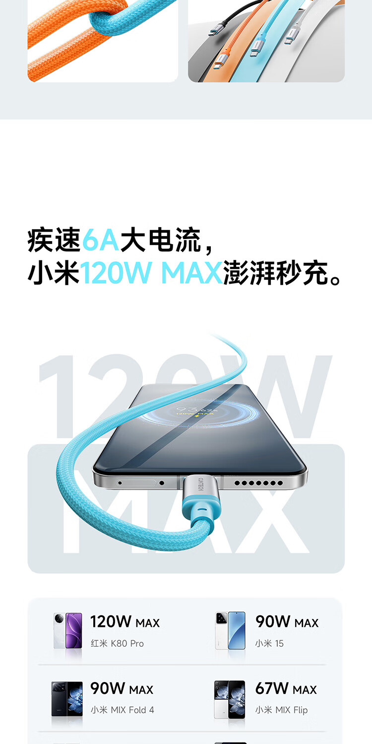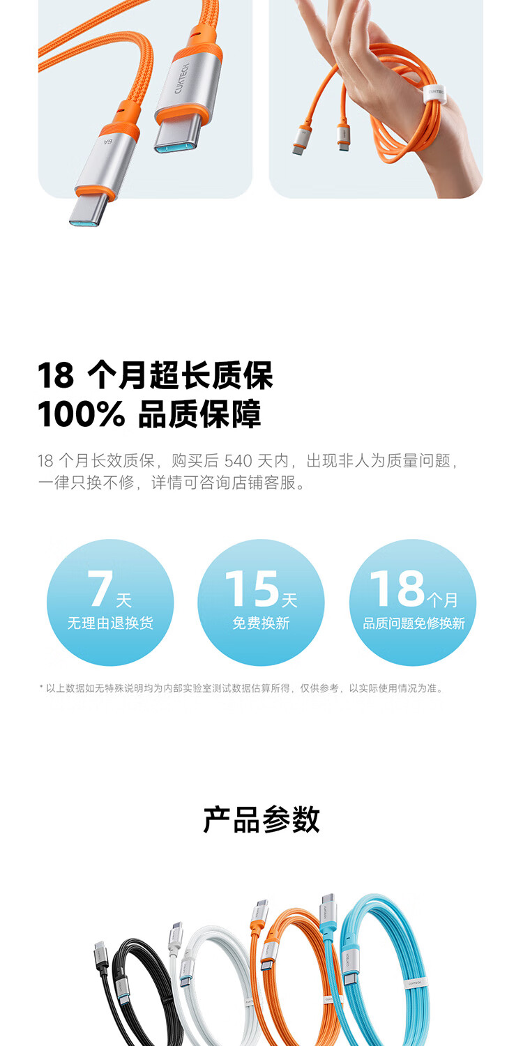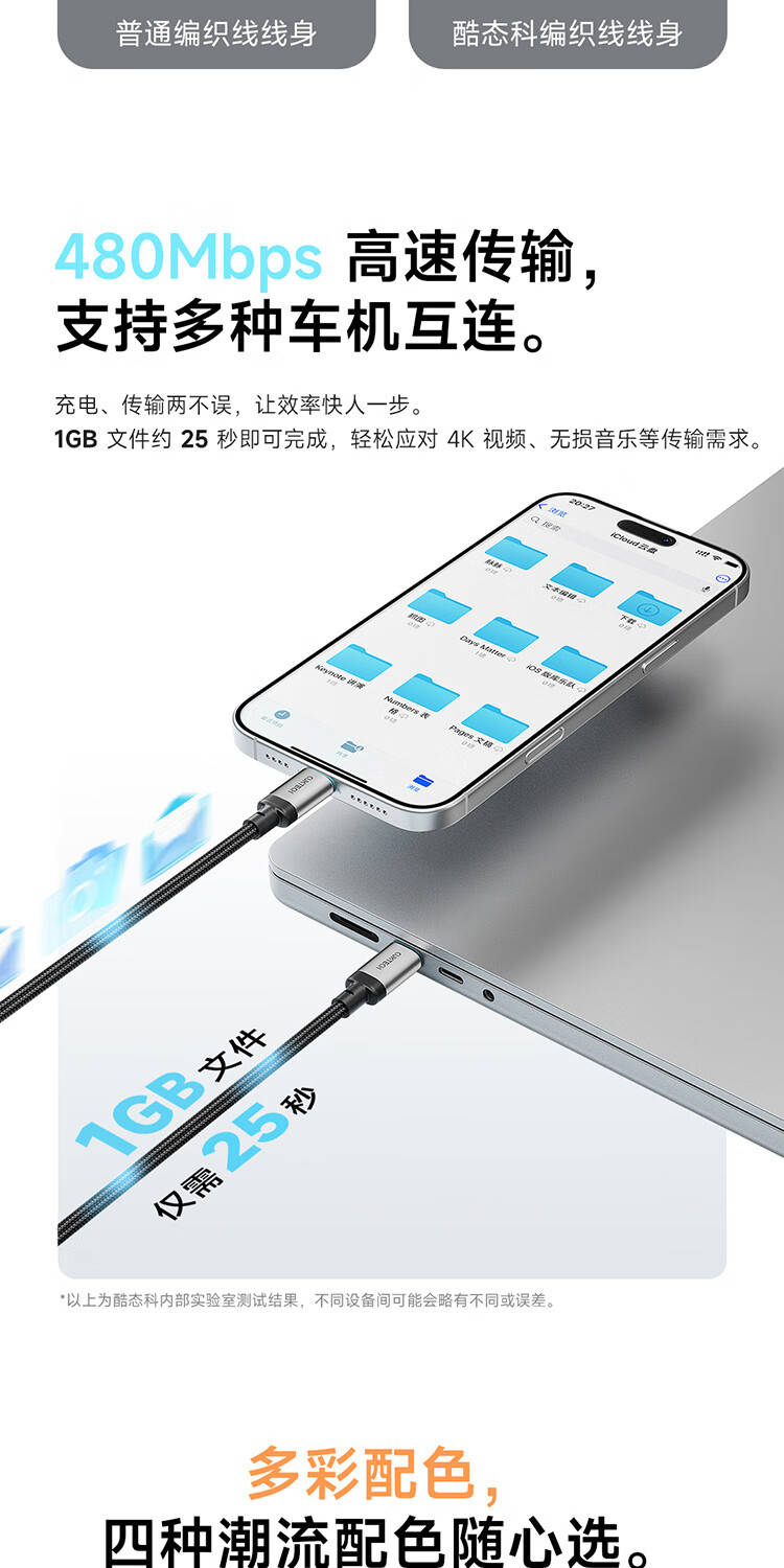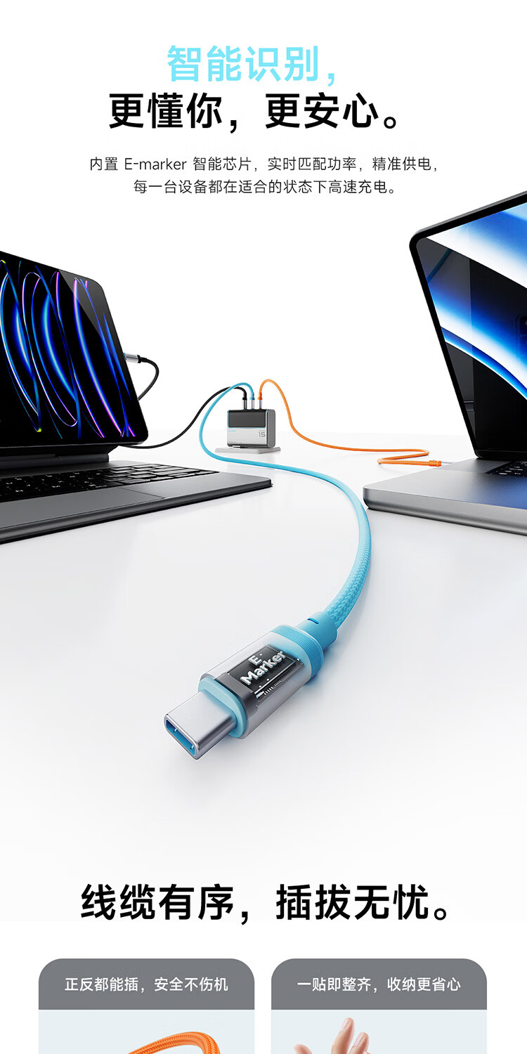 CUKTECH cool state science charging cable Type-C data cable 240W high power 6A current ctoc braided fast charging suitable for Apple 17/ipad/Xiaomi Huawei mobile phone notebook 1.5m