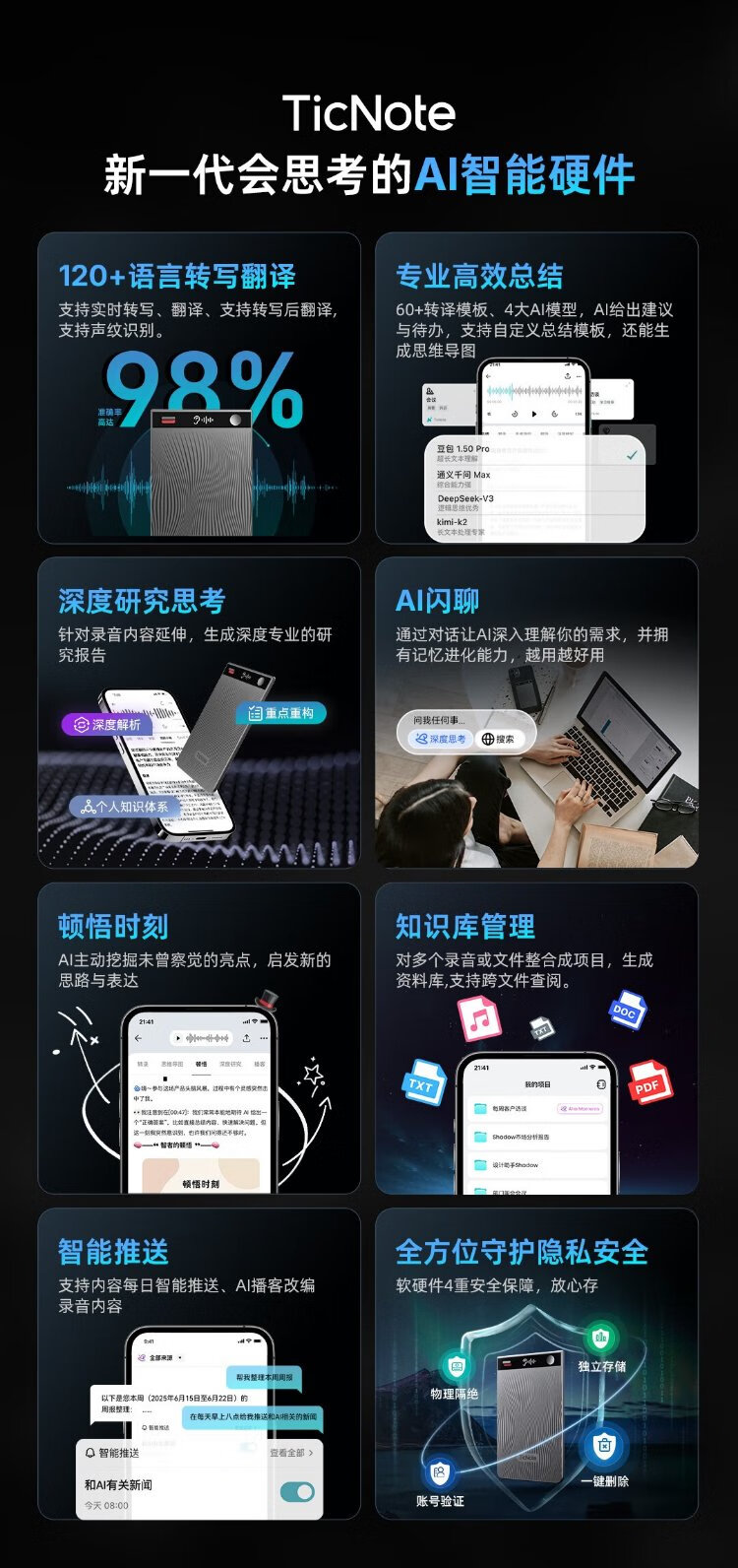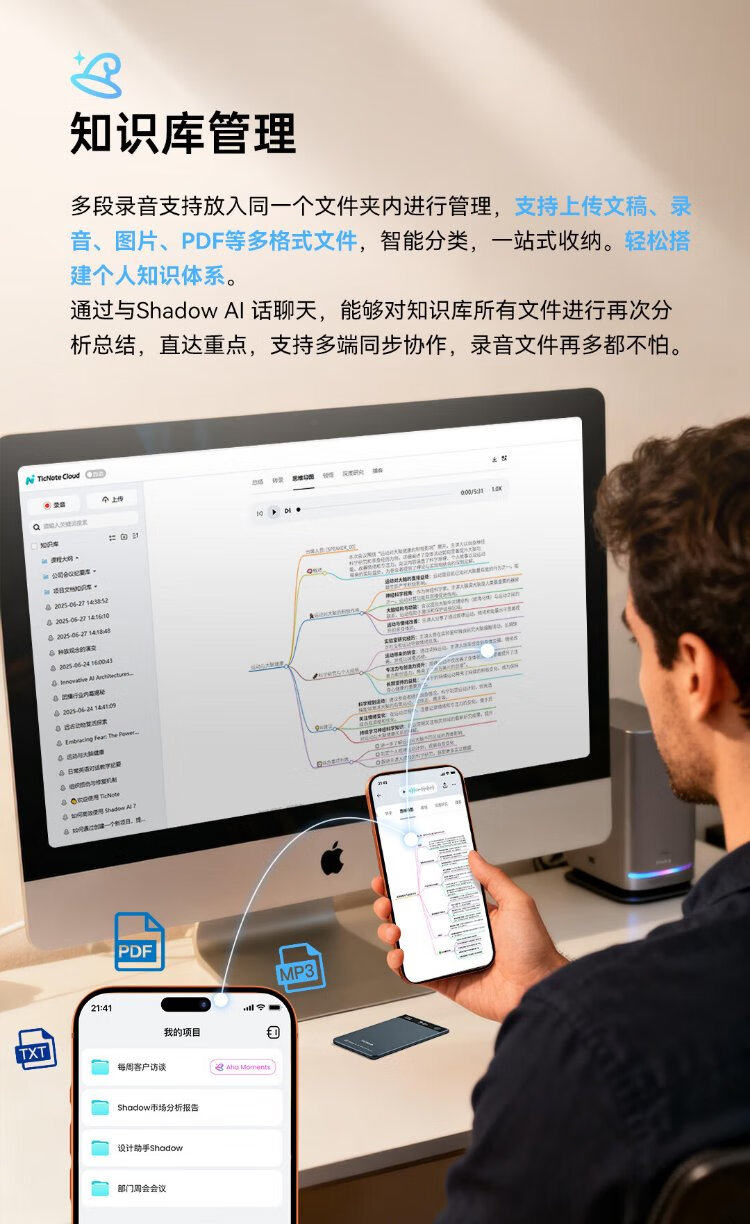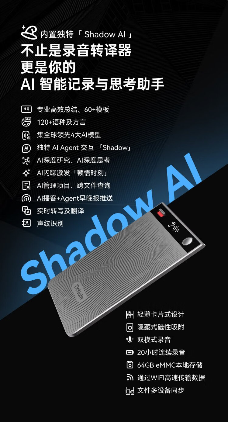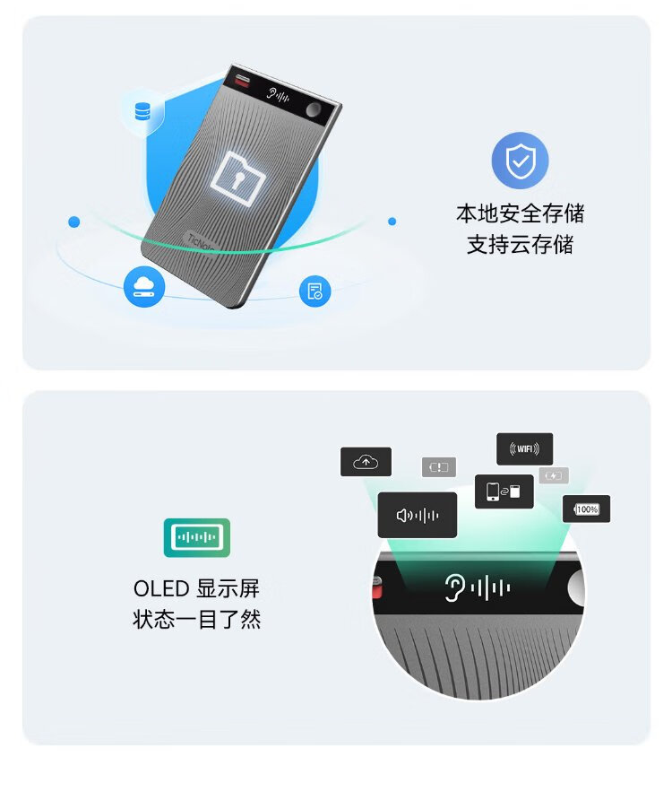 Mobvoi TicNote AI Recorder Joyful Edition Twilight Blue Recording to Text Recording Card Intelligent Noise Reduction Portable Professional Recording Equipment Recorder Minutes Summary