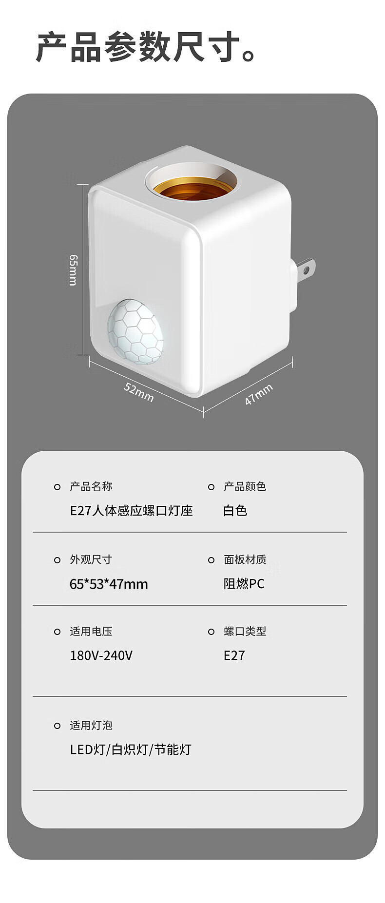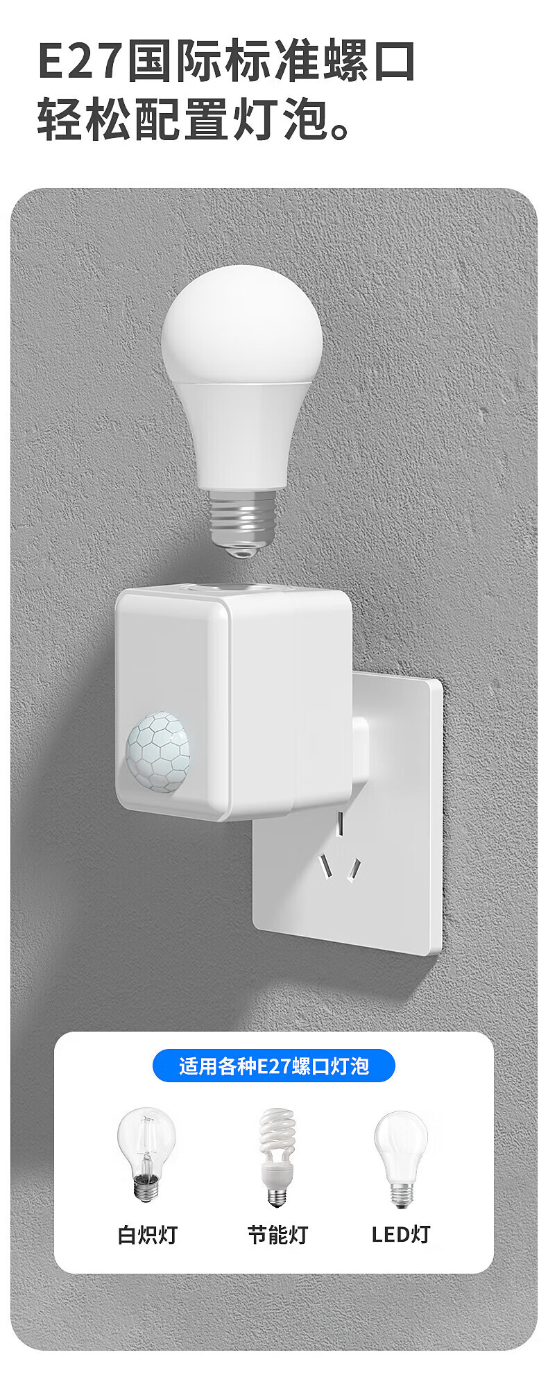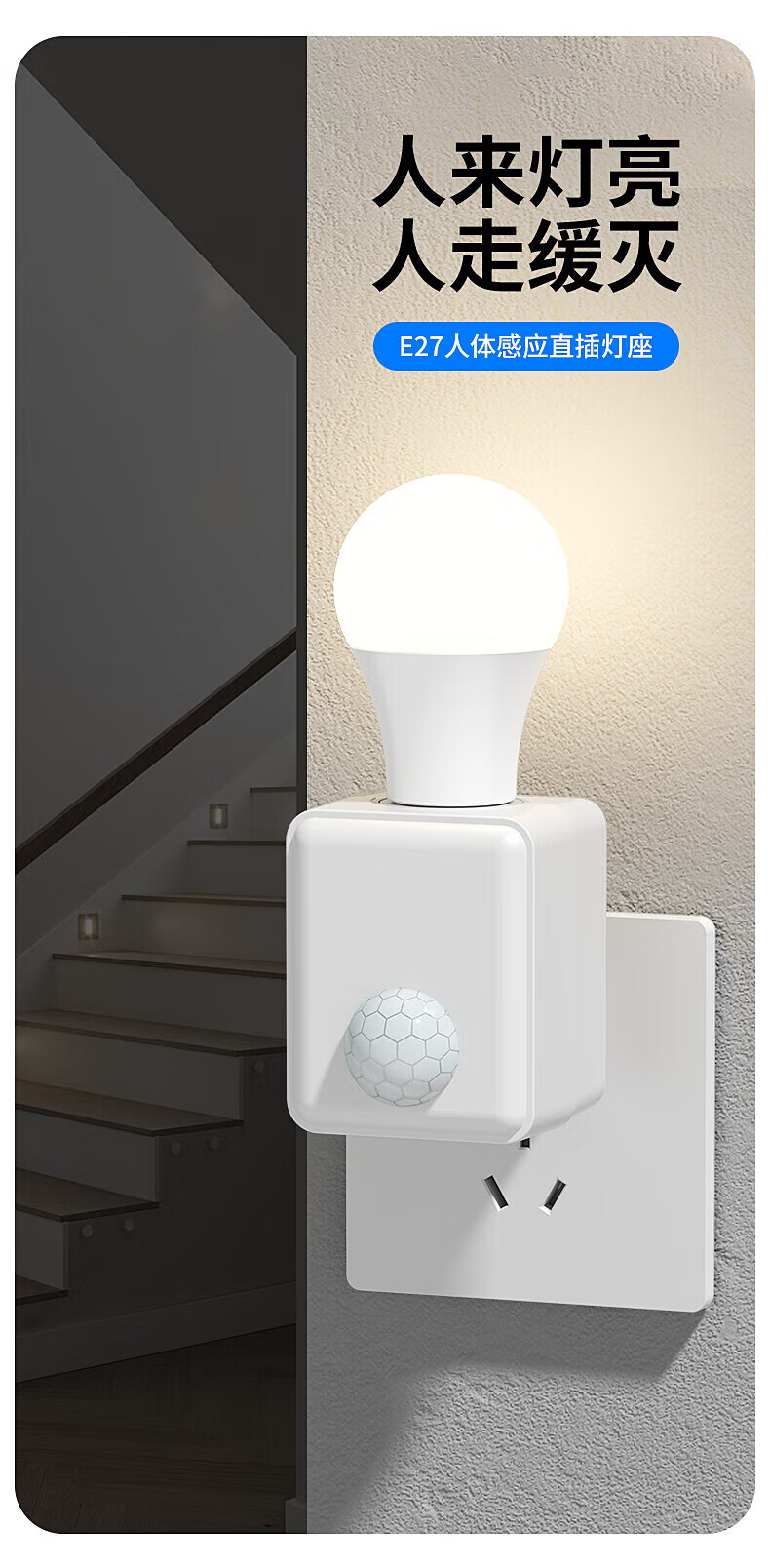 Gongtai Intelligent Human Body Sensor Socket Lamp Socket E27 Screw Corridor Sensor Energy-Saving Lamp Switch Lamp Holder GT-RT27-C60