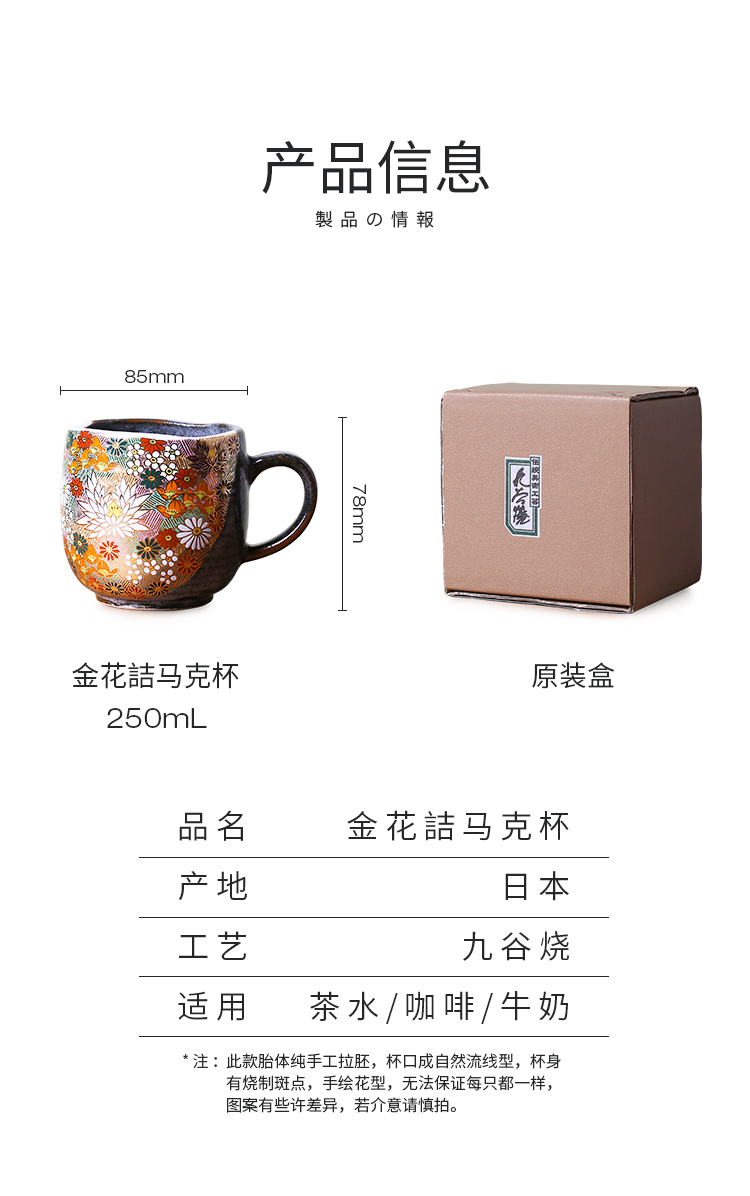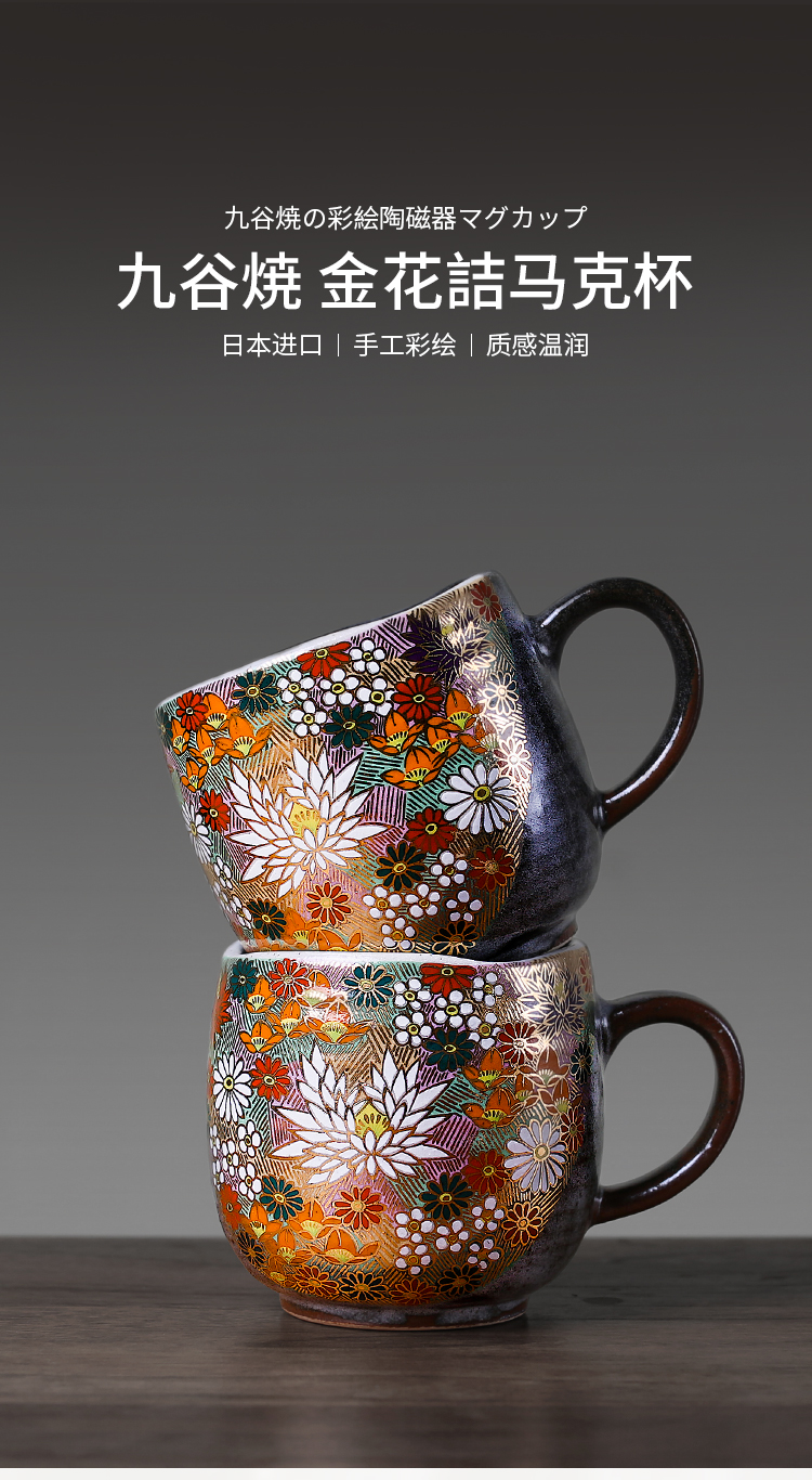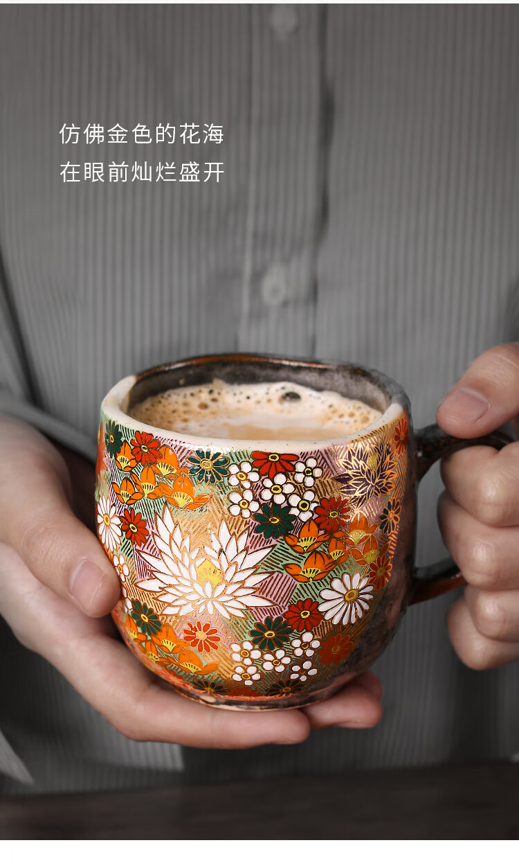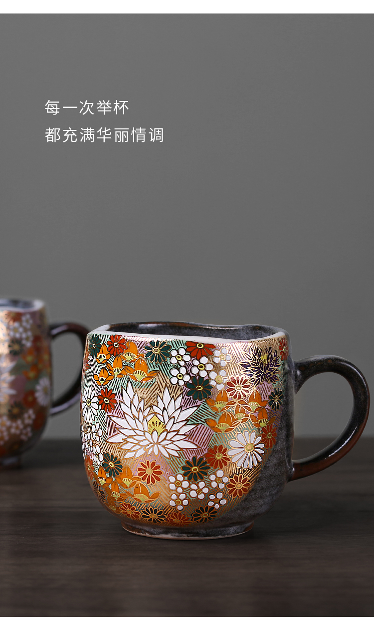 Japan imported Kutani yaki hand-made Jinhuazhe mug for home use coffee cup tea cup retro ceramic cup wedding gift Jinhuazhe mug 1 piece (250ml)