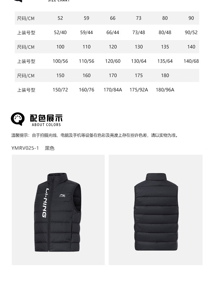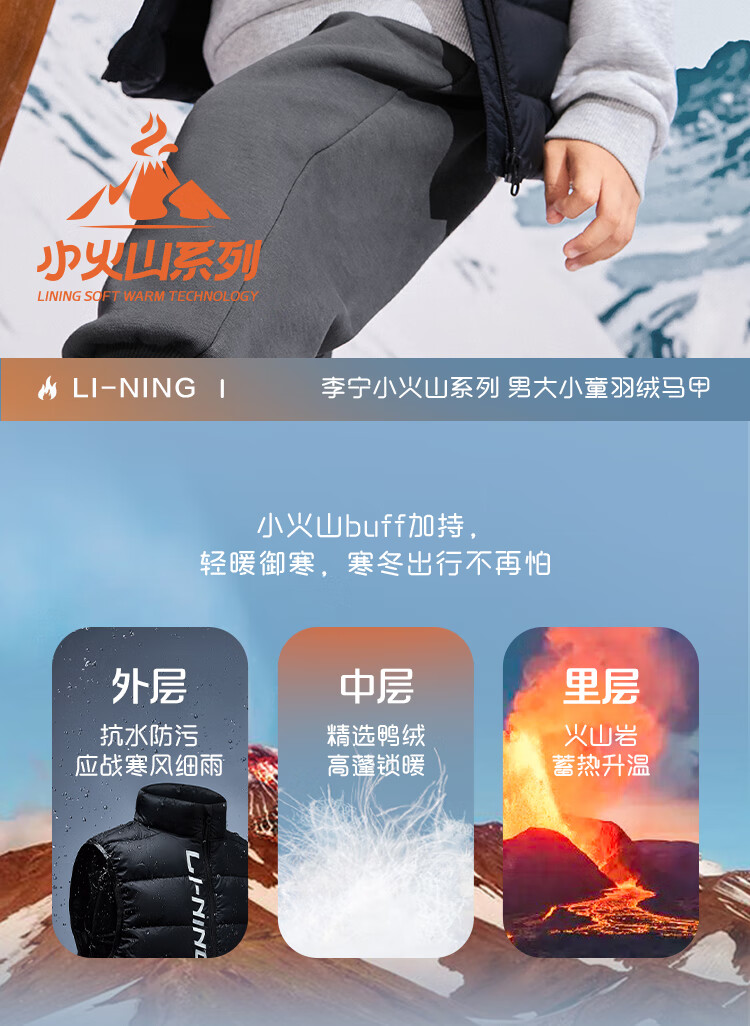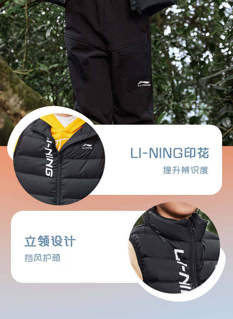 Li Ning (LI-NING) children's clothing children's down vest for men and women small and large children's waterproof and warm down vest 150YMRV025-1