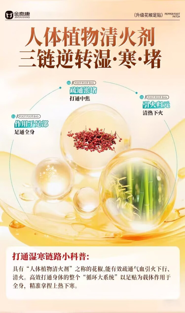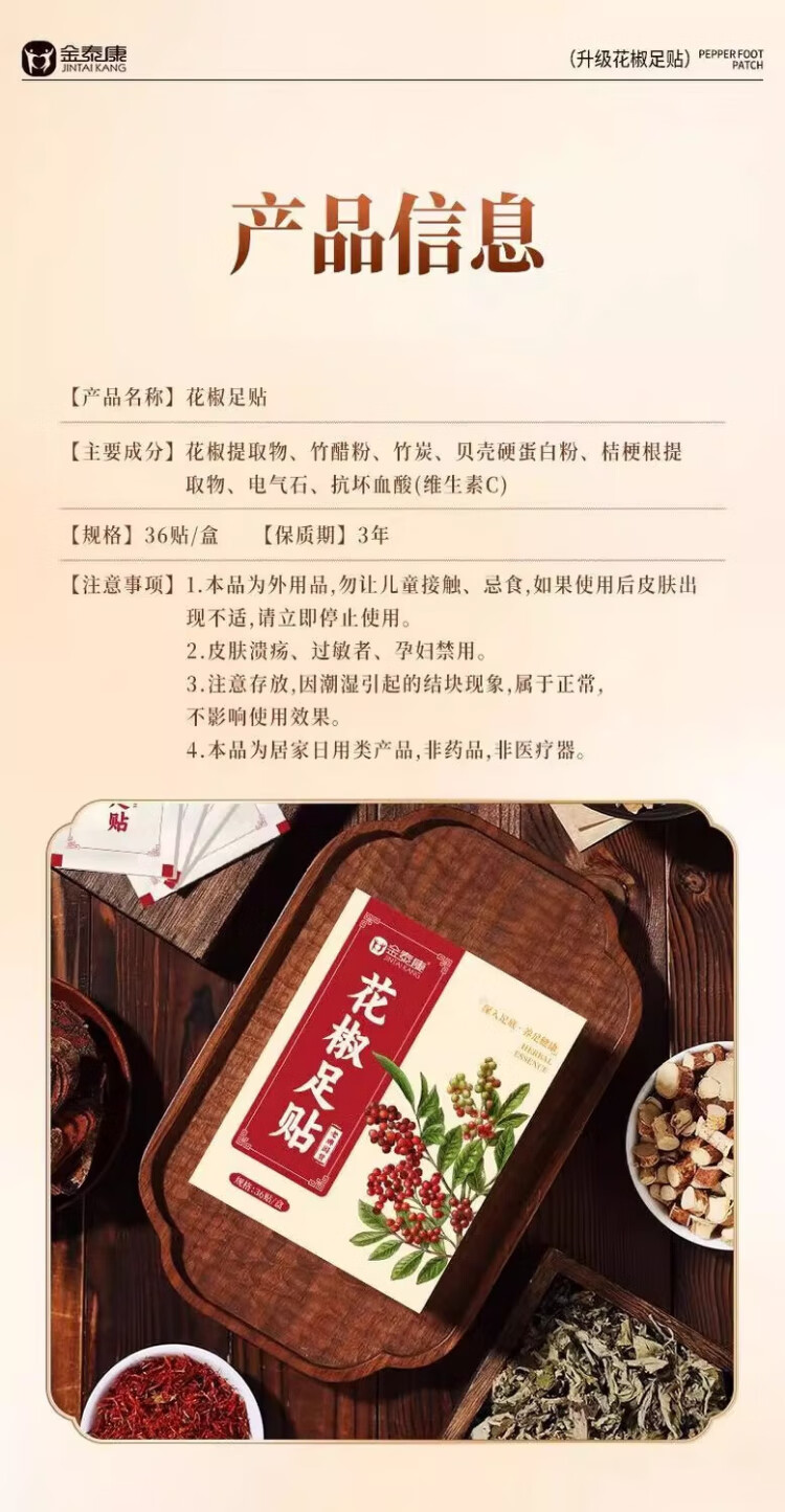 Jin Taikang Foot Patch, Sichuan pepper to expel moisture, drive away cold and remove moisture, foot patch for men and women, 36 patches