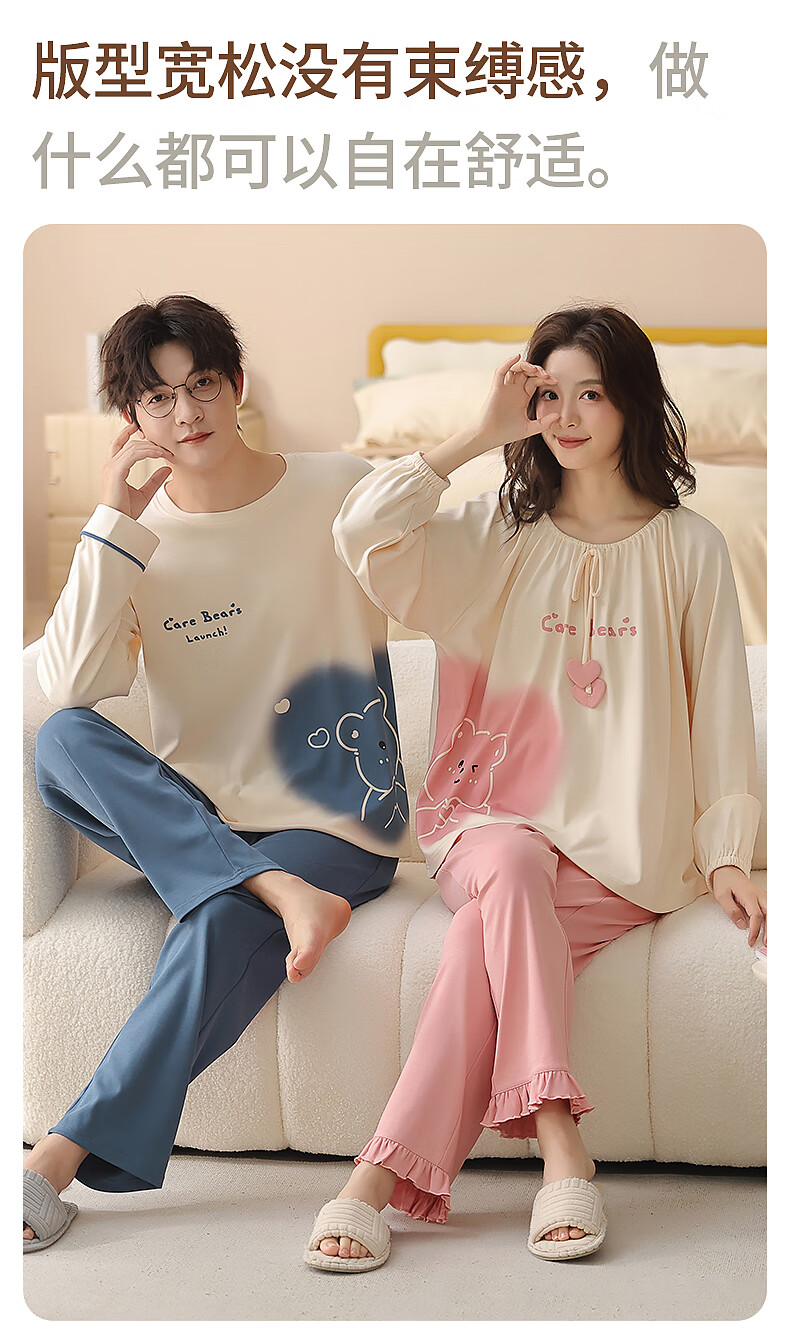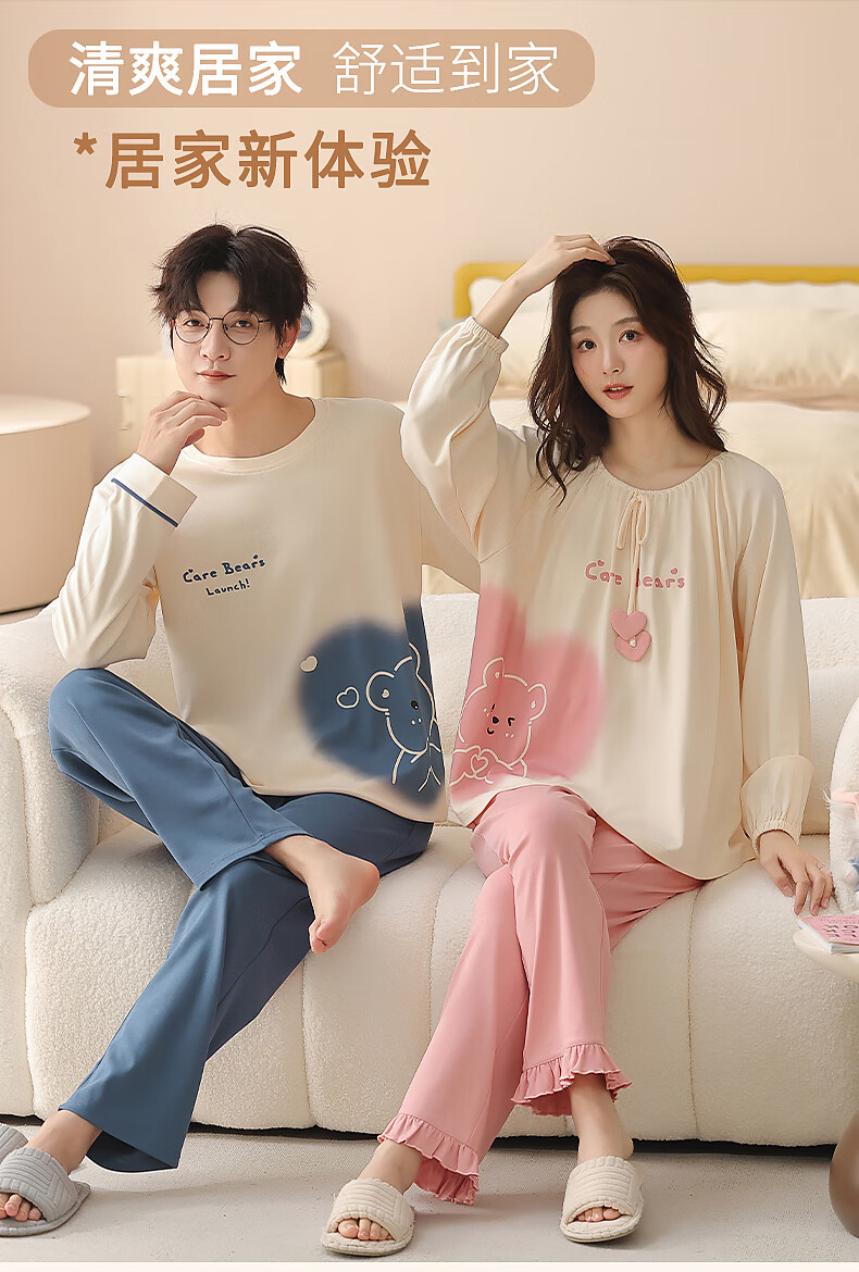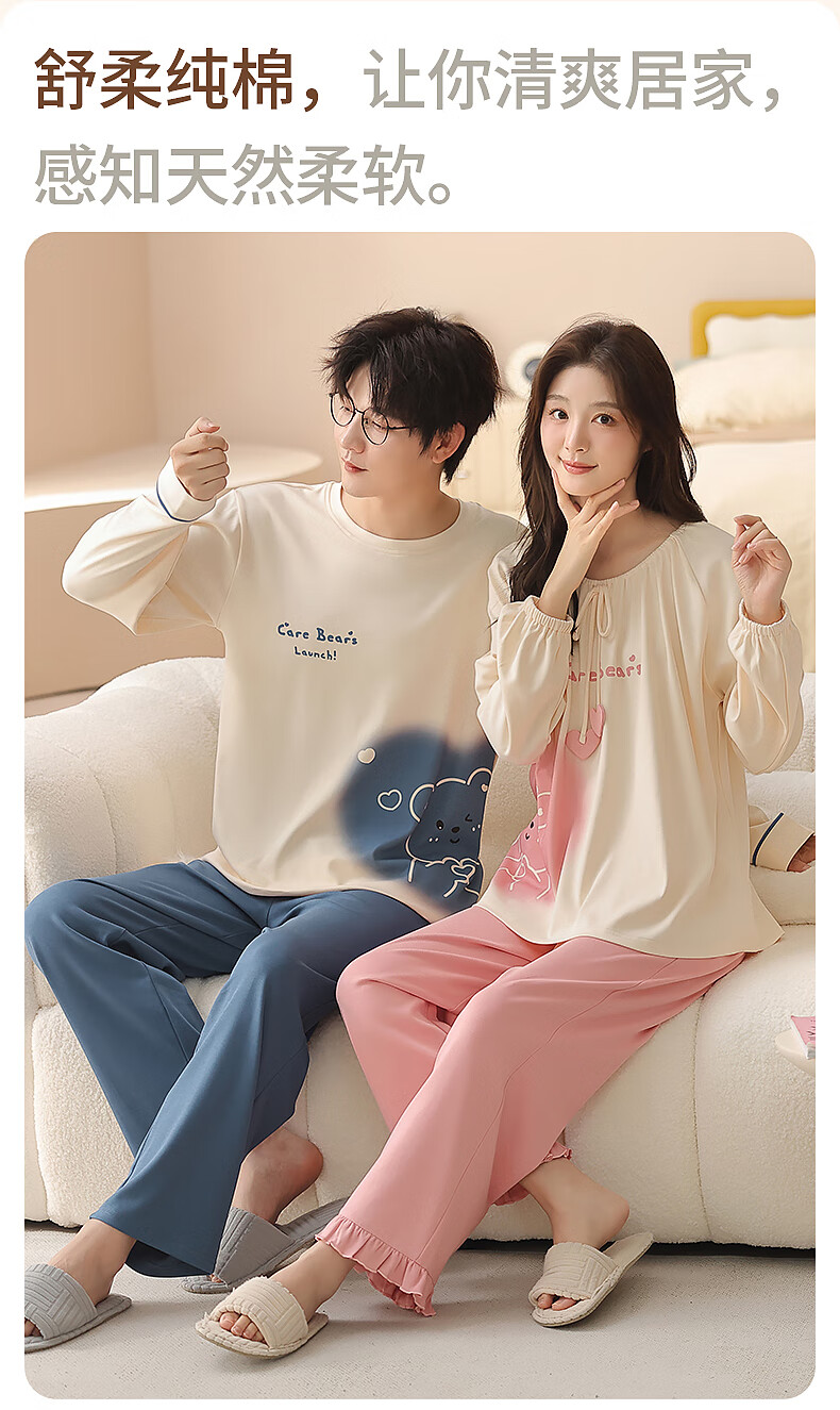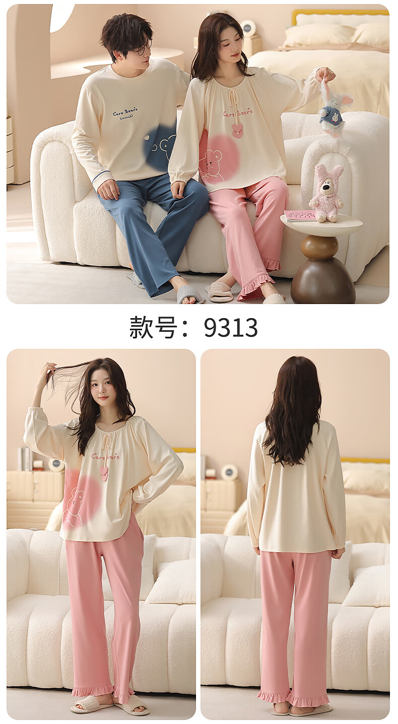 Yiduo couple pajamas women's autumn and winter with chest pad pure cotton long-sleeved princess style cartoon cute men's home wear set