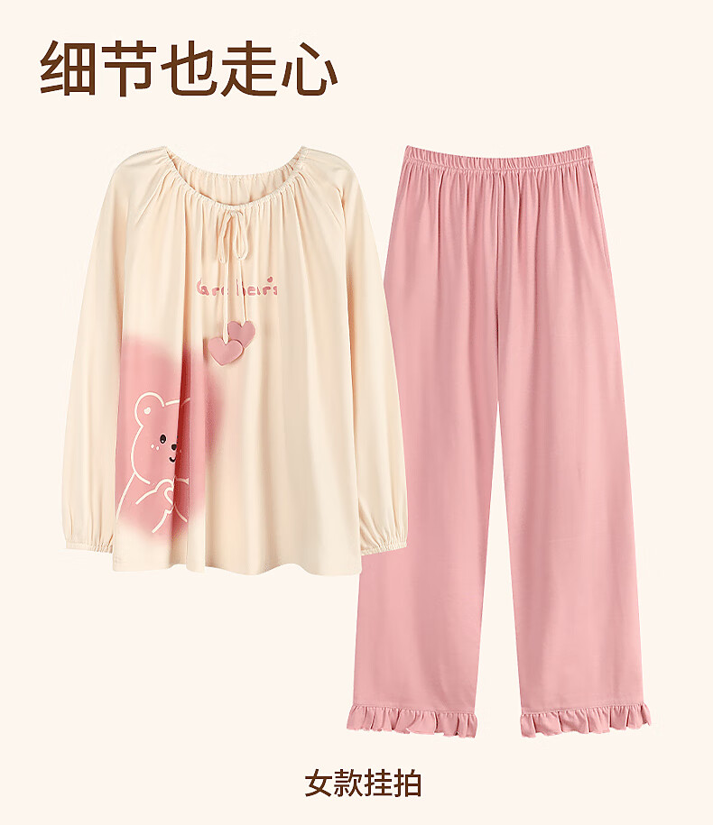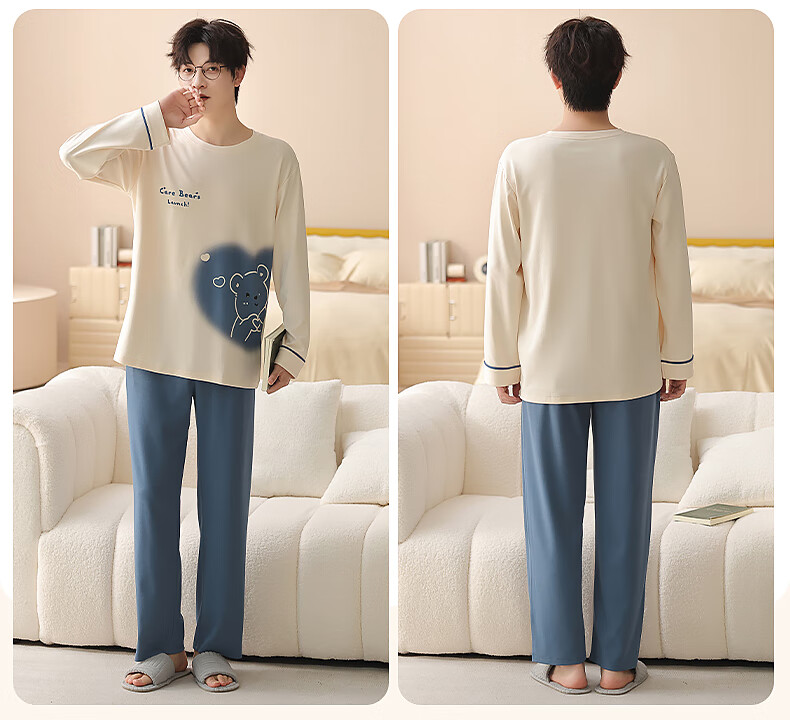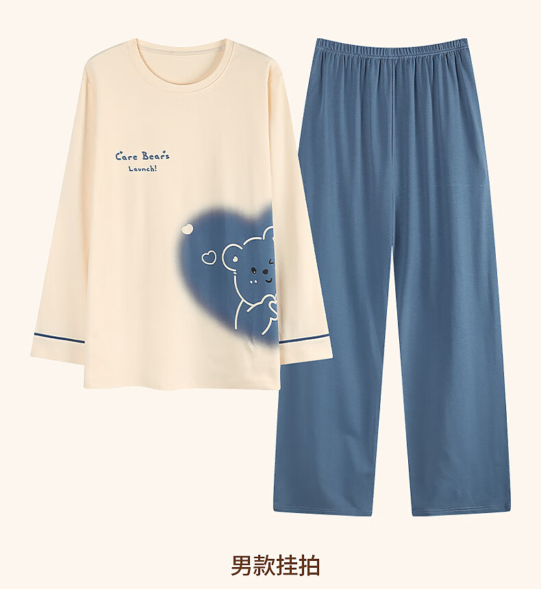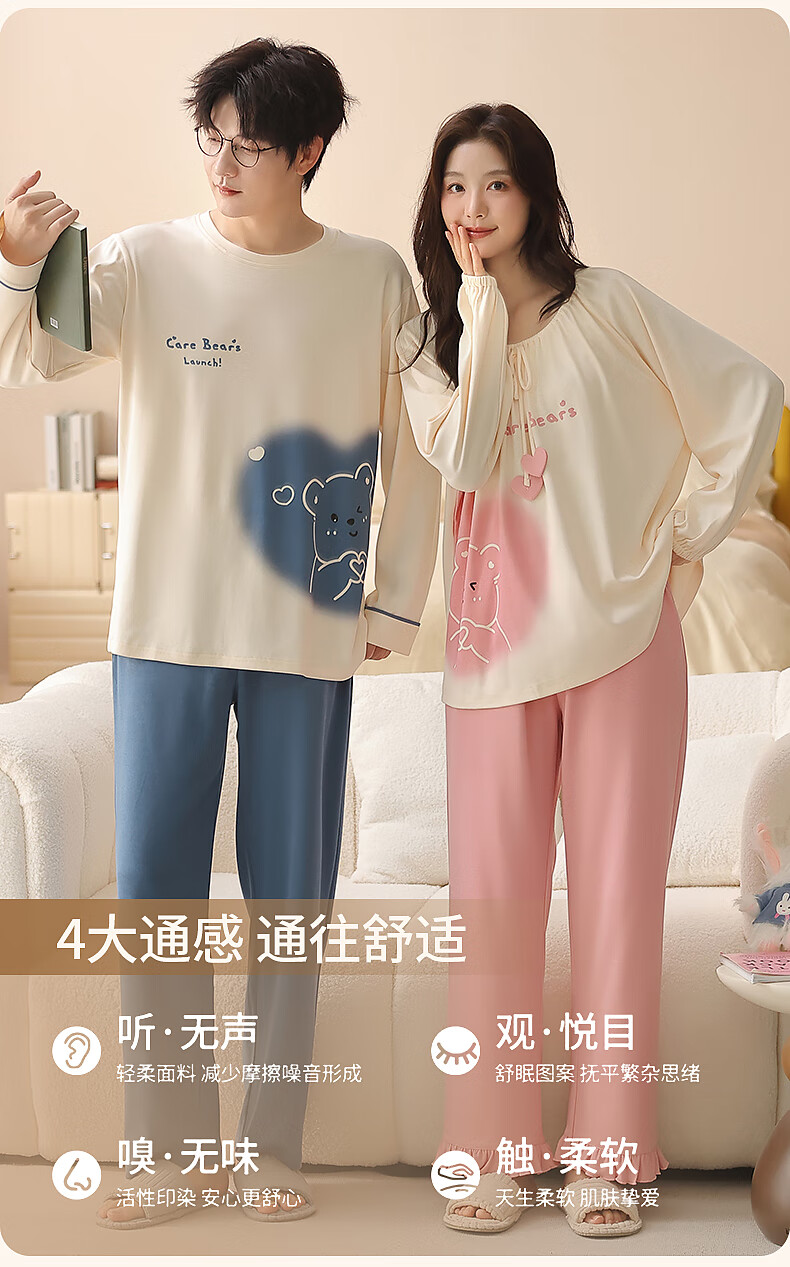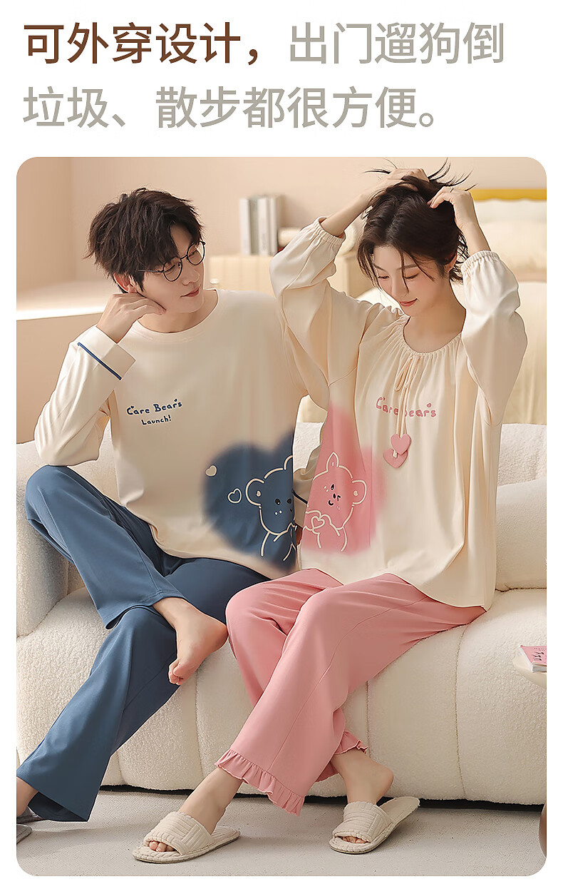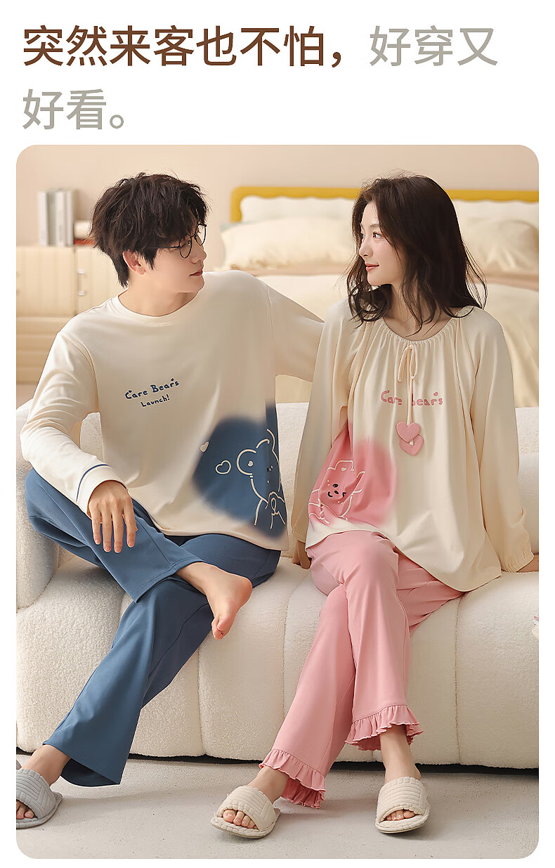 Yiduo couple pajamas women's autumn and winter with chest pad pure cotton long-sleeved princess style cartoon cute men's home wear set