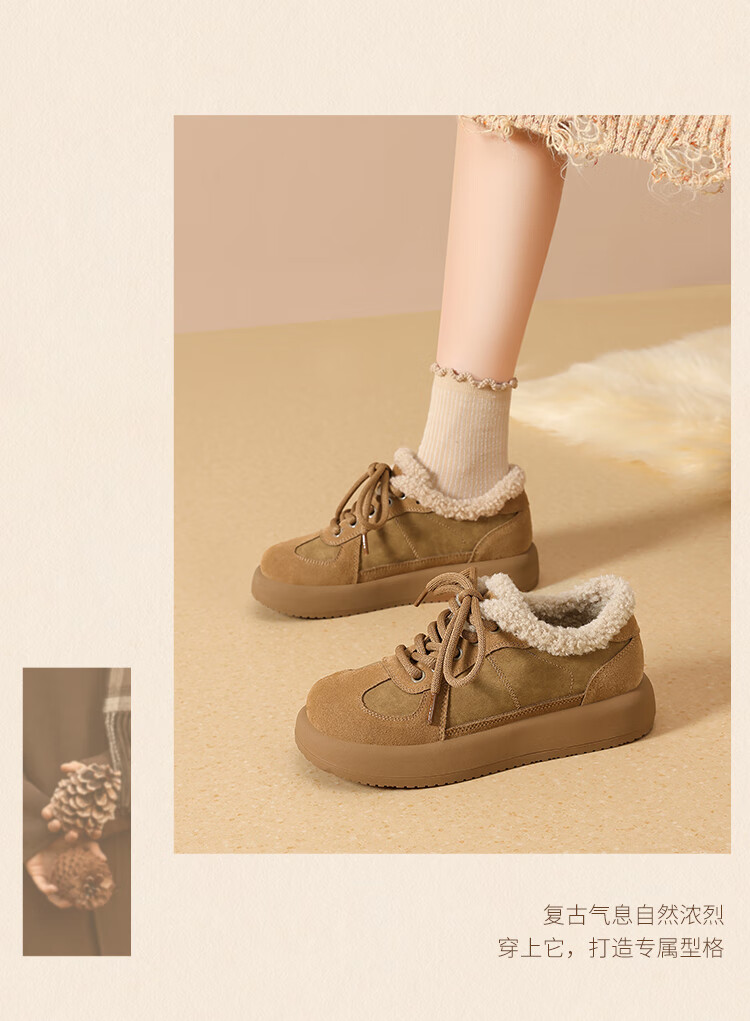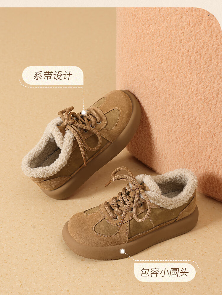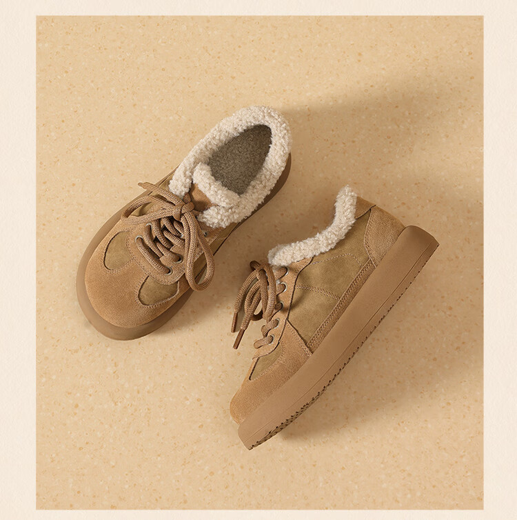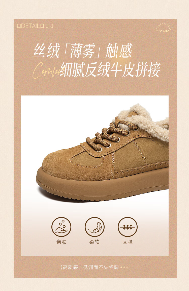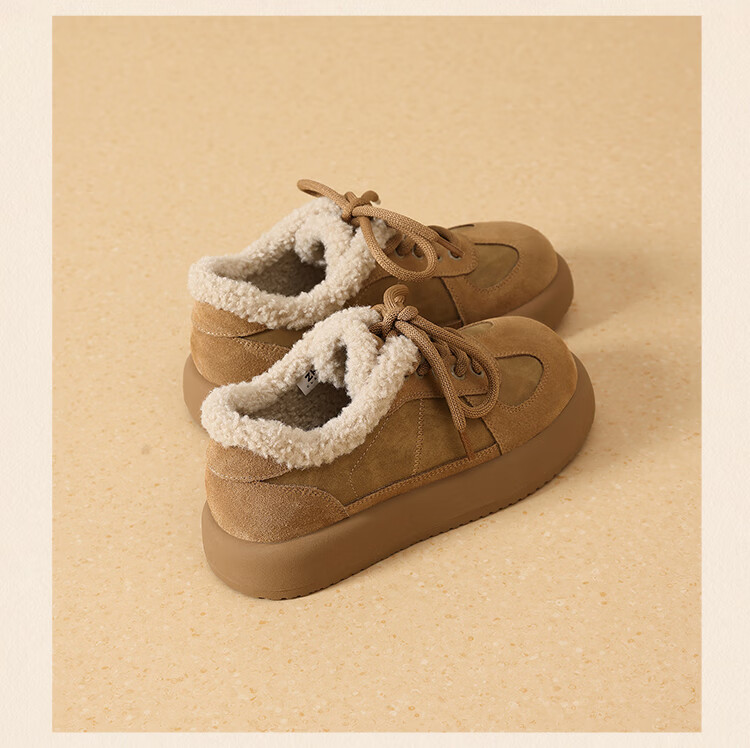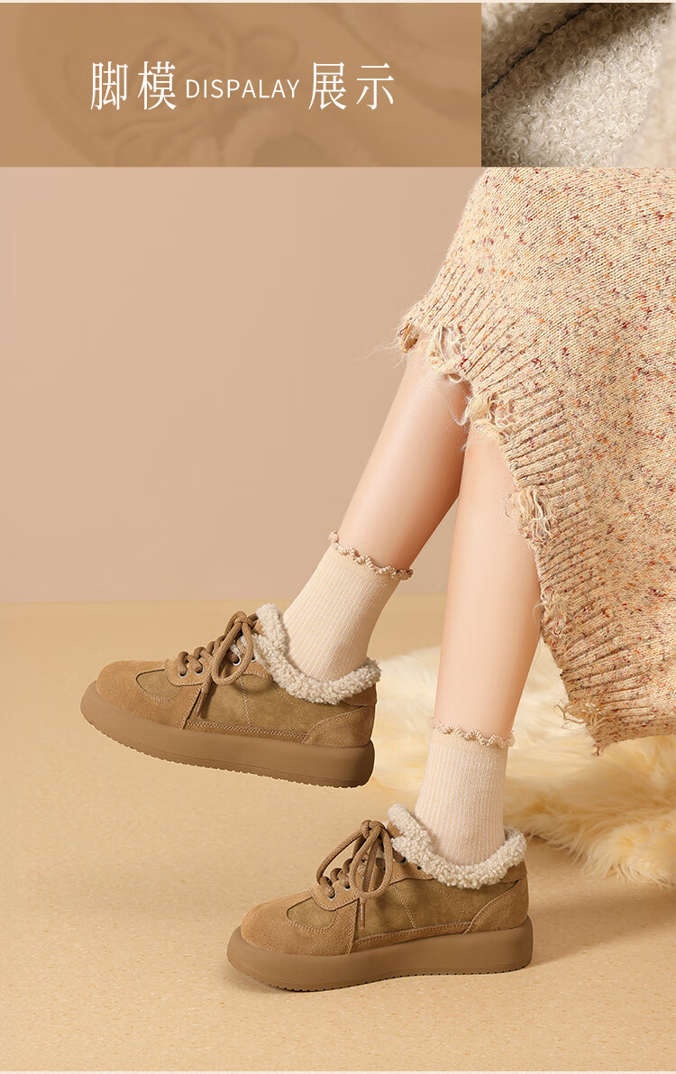 ZHR Birkenstock shoes for women winter short plush casual women's suede cowhide versatile cotton shoes for women EH278B camel 38
