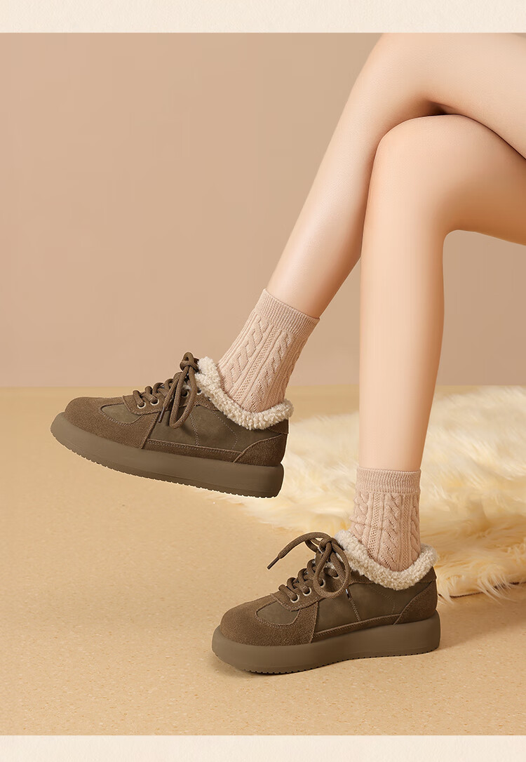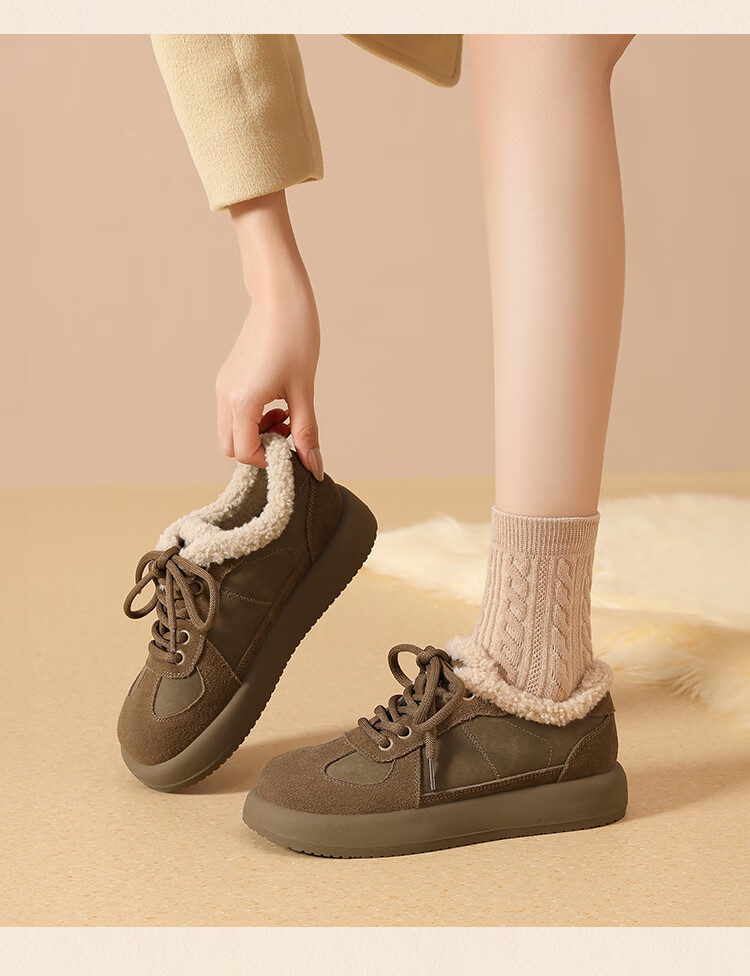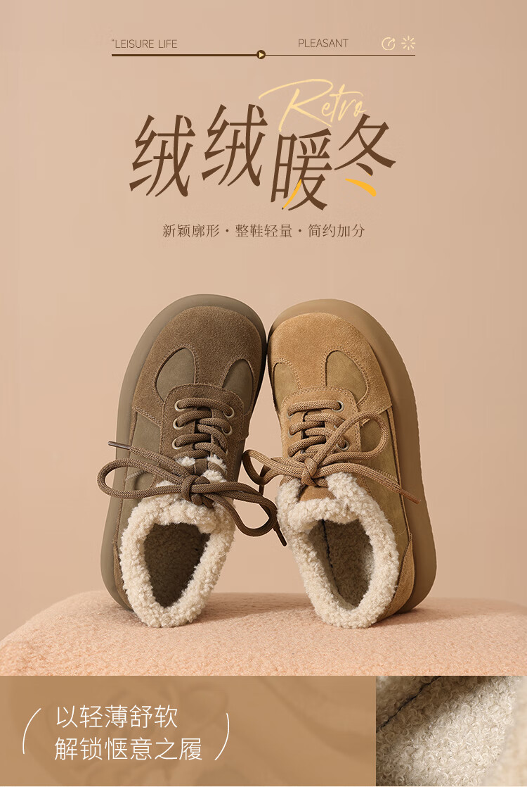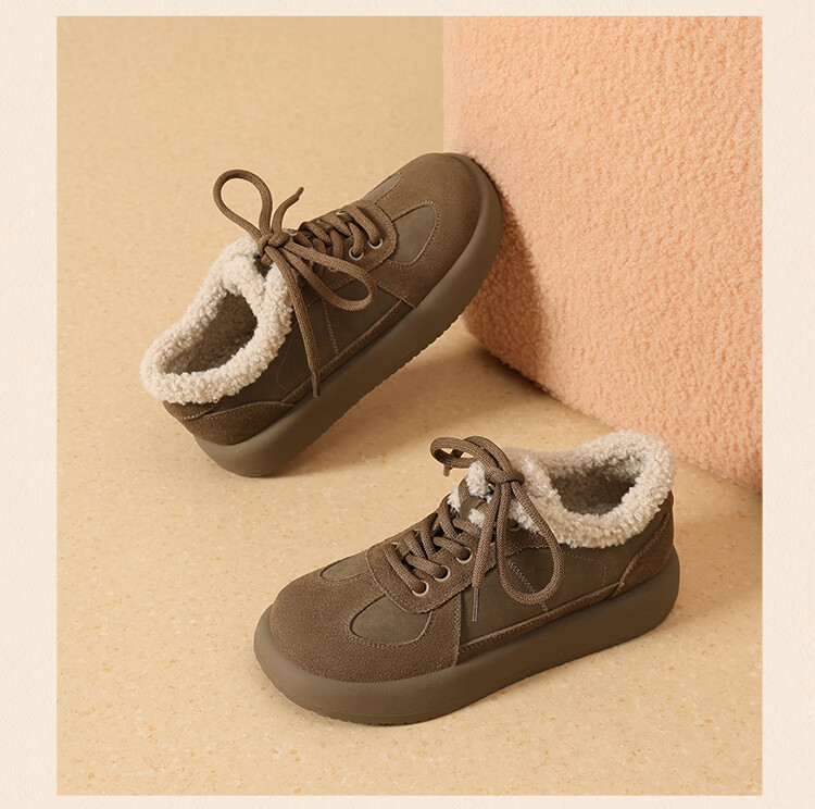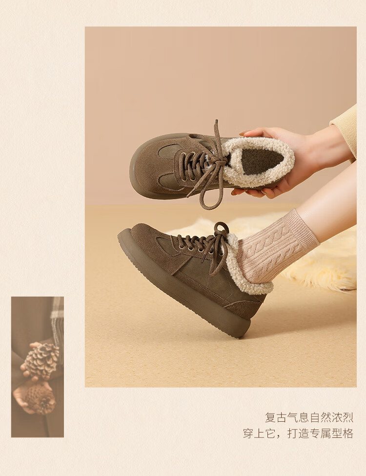 ZHR Birkenstock shoes for women winter short plush casual women's suede cowhide versatile cotton shoes for women EH278B camel 38