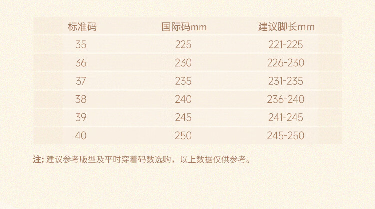 China (cm) 36 - 37 38 - 39 40 - 42 43 - 44 45 - 47