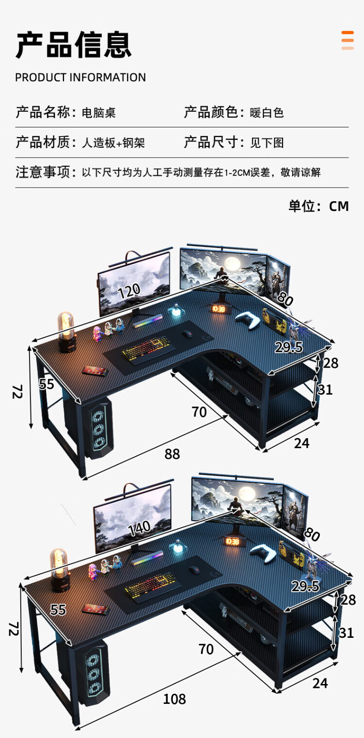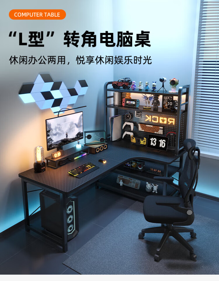Shanshan Wood Art Corner Computer Desk Desktop Bedroom Home Desk Bookshelf Integrated Double Gaming Table Corner Office Desk