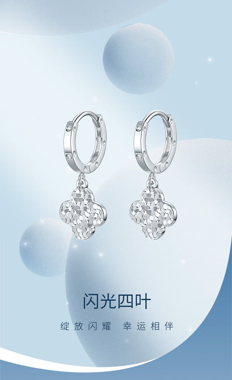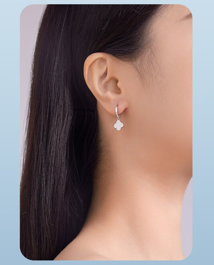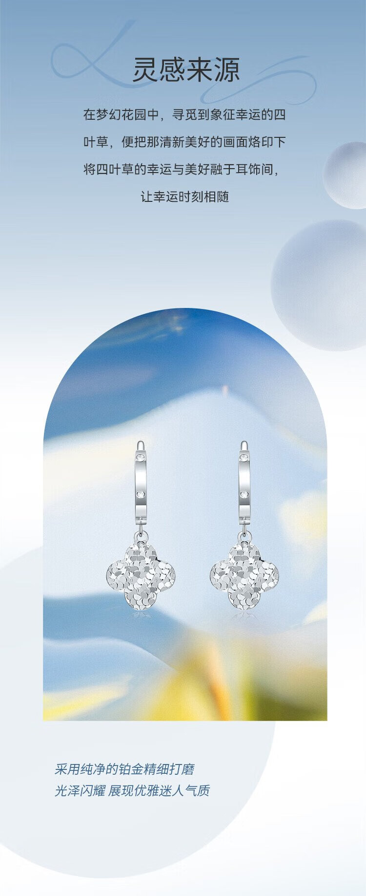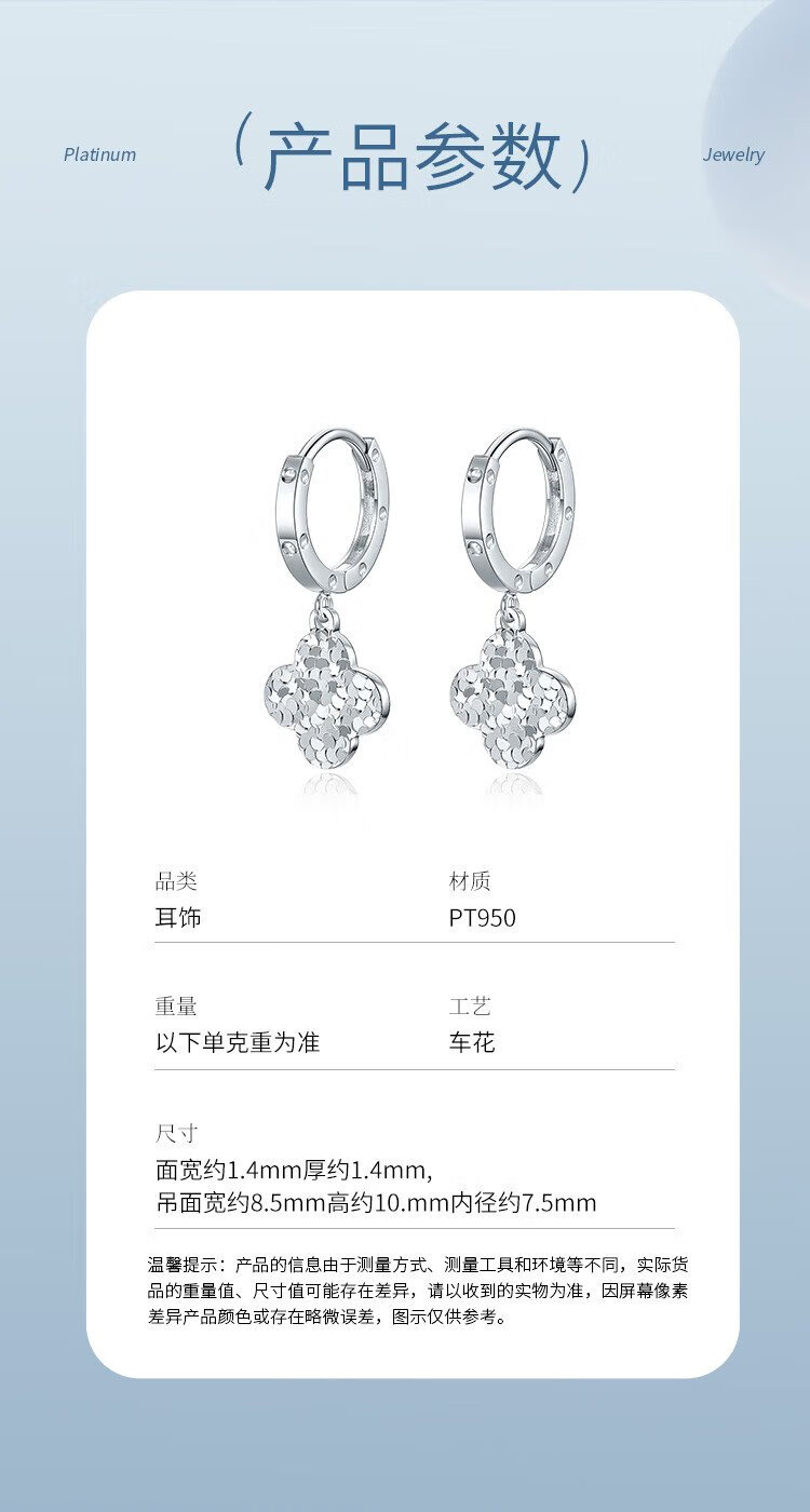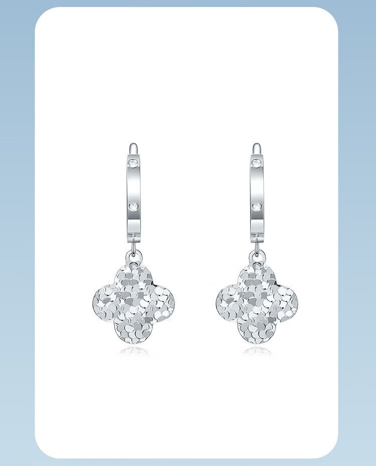 Liuguifu Jewelry Platinum Earrings Sparkling Four Leaves pt950 Platinum Earrings Fashion Earrings PT0200075 3.3g