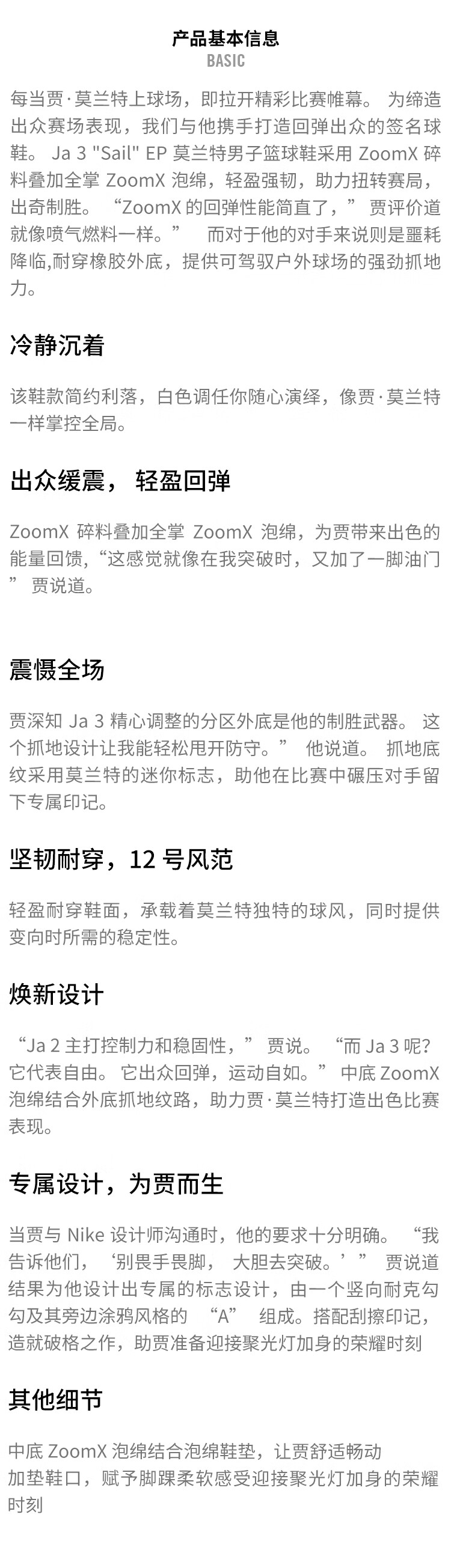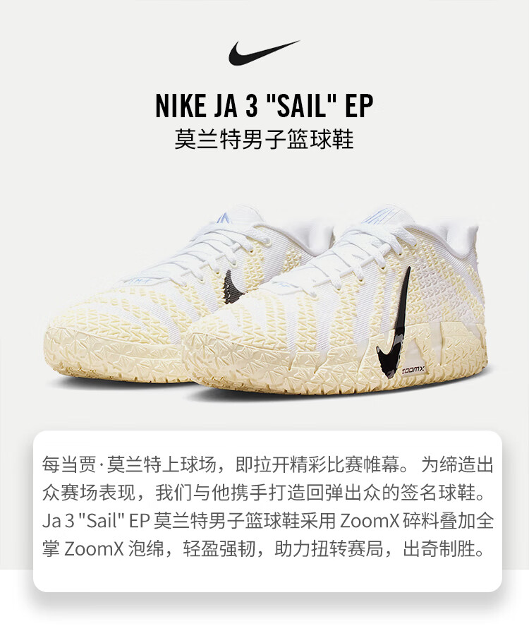 Nike NIKE Men's Basketball Shoes Morant 3 Generation JA 3 Sports Shoes HF2794-101 Coconut Milk White 43