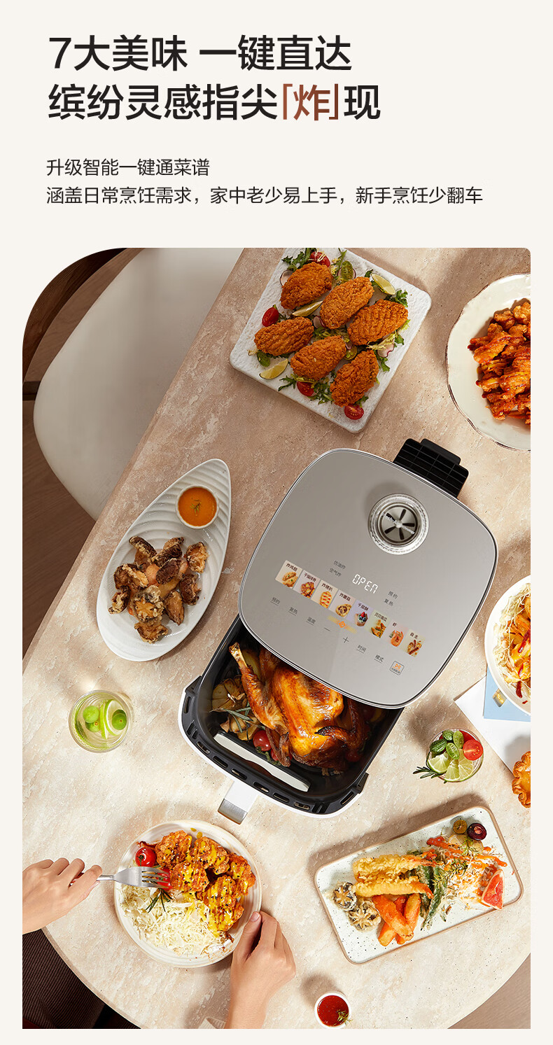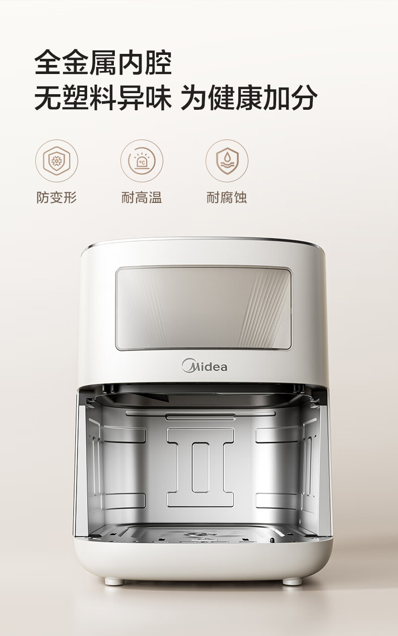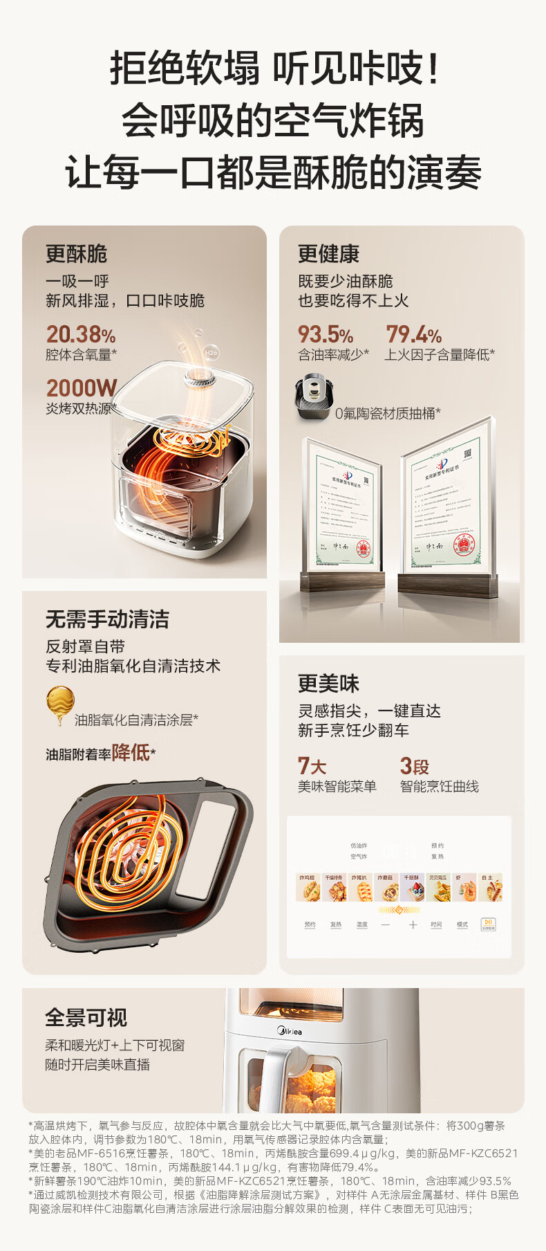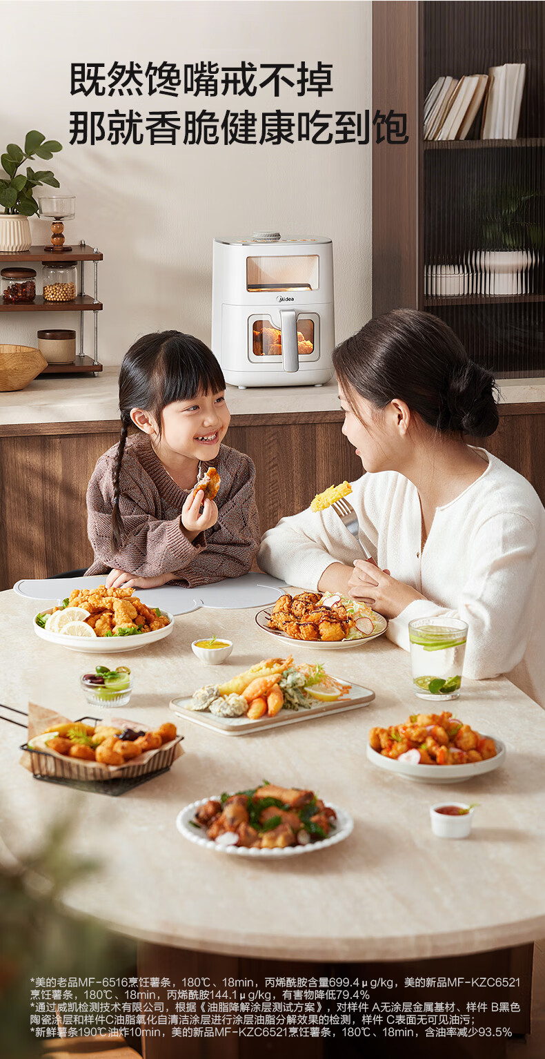 Midea New Fengyan Grilled Air Fryer 2025 New Turn-Free 0 Fluorine Ceramic Household Large Capacity 6.5L Large View Window Air Fryer Steaming and Grilling Integrated KZC6521