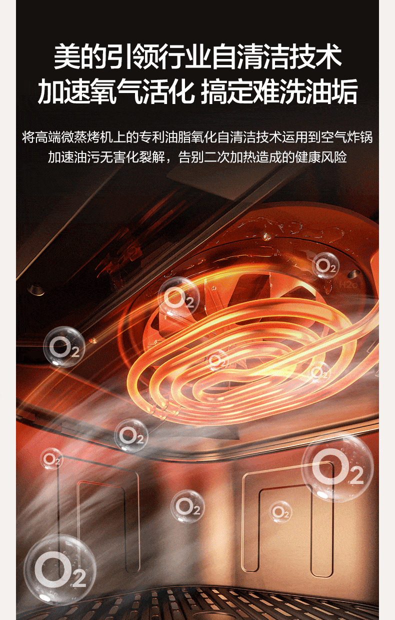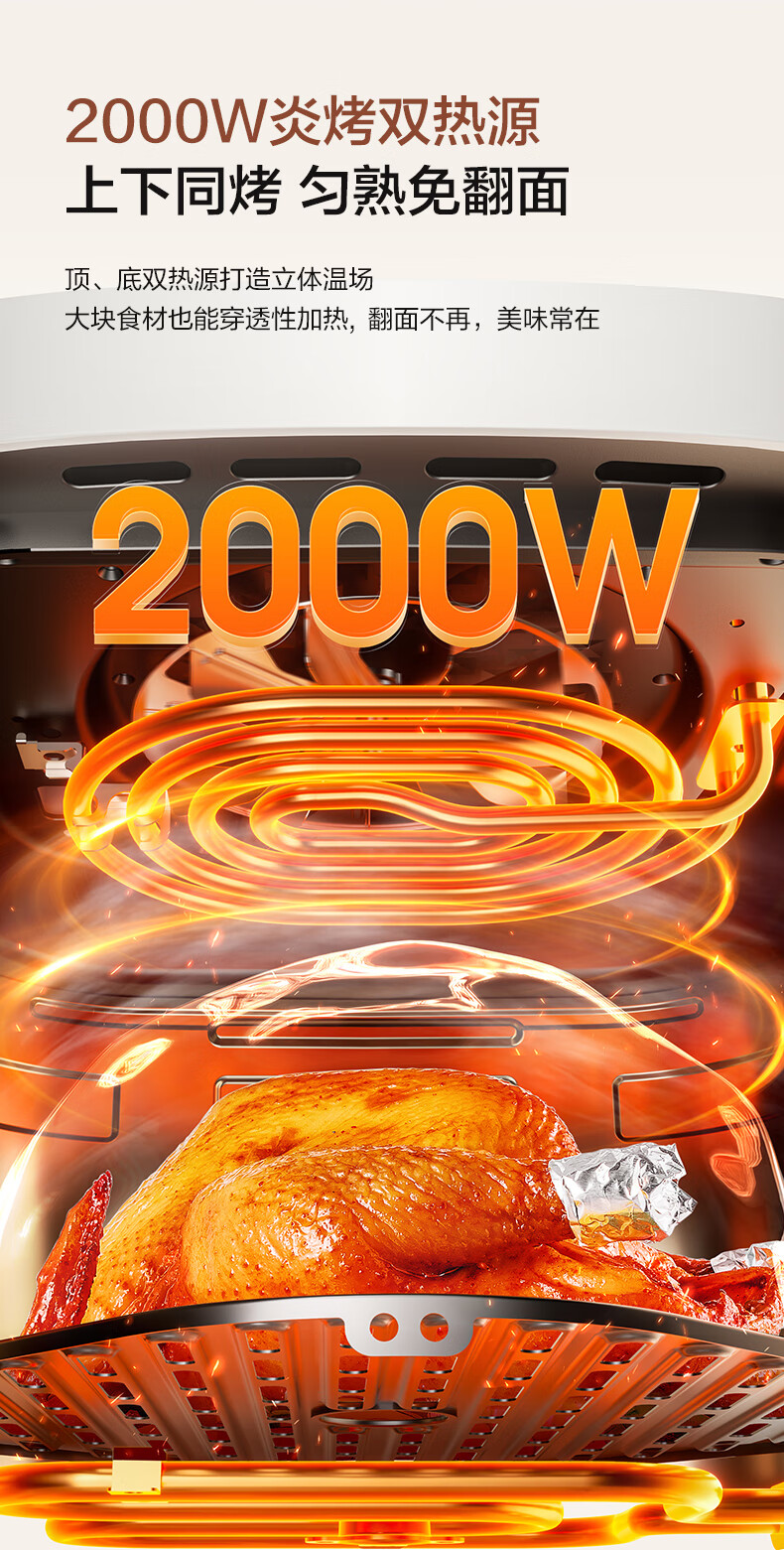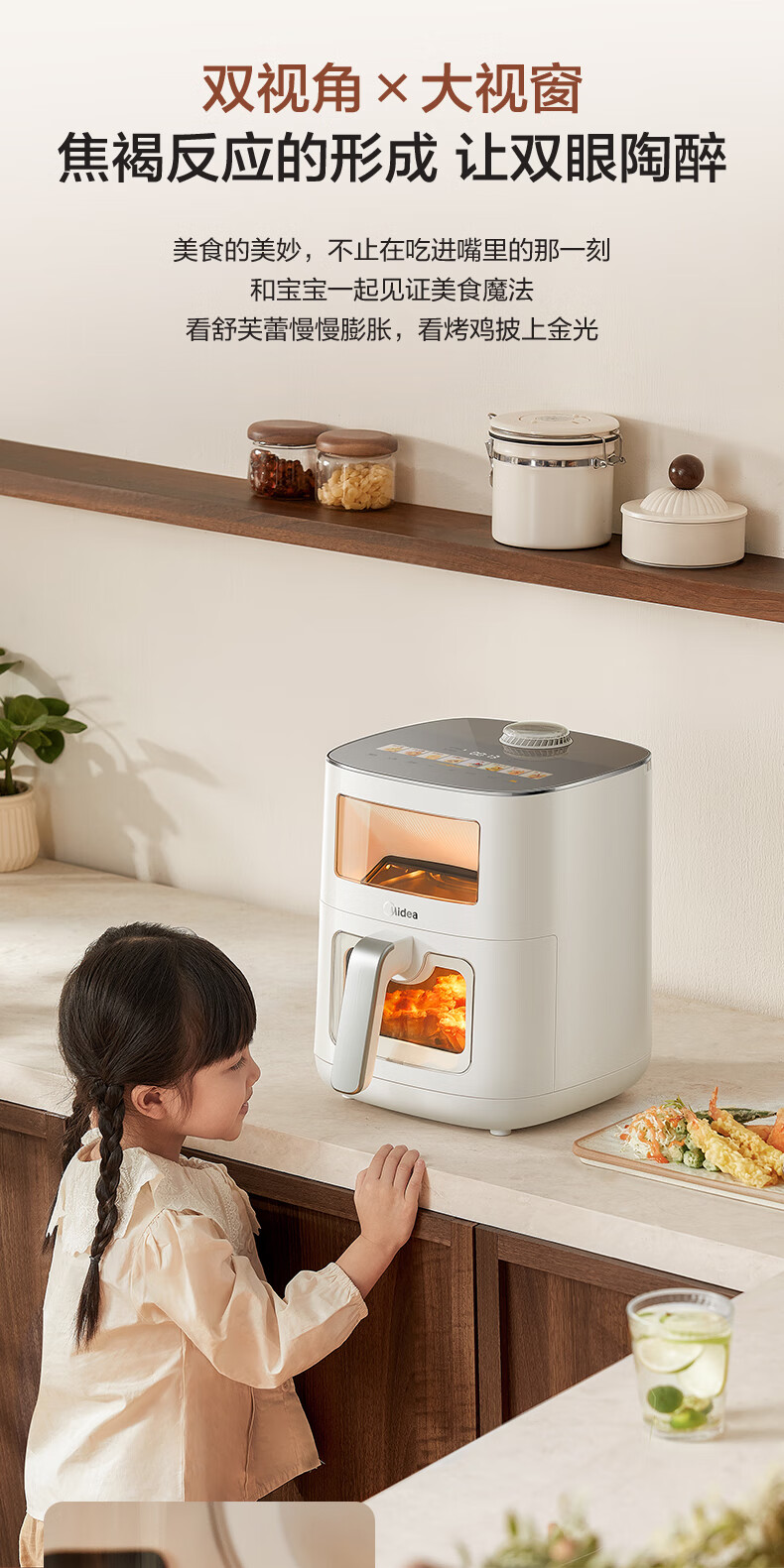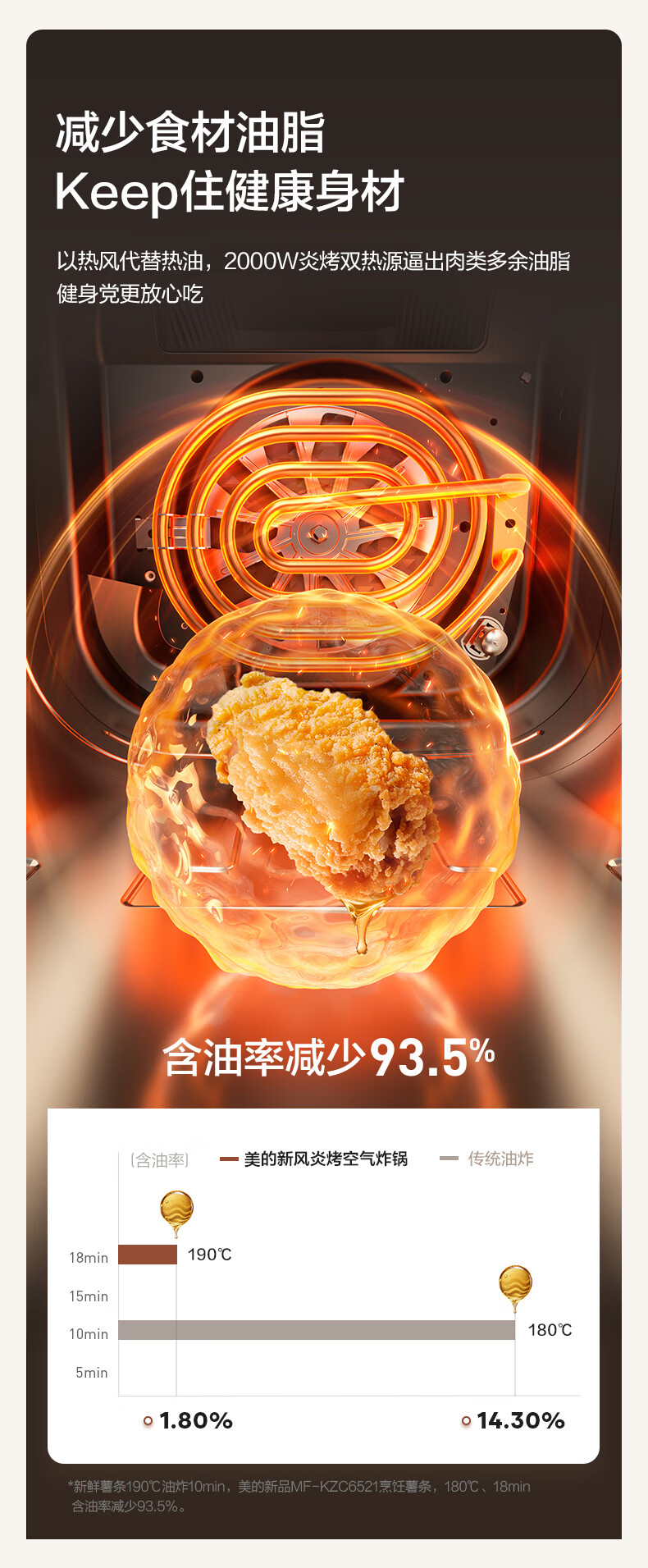 Midea New Fengyan Grilled Air Fryer 2025 New Turn-Free 0 Fluorine Ceramic Household Large Capacity 6.5L Large View Window Air Fryer Steaming and Grilling Integrated KZC6521