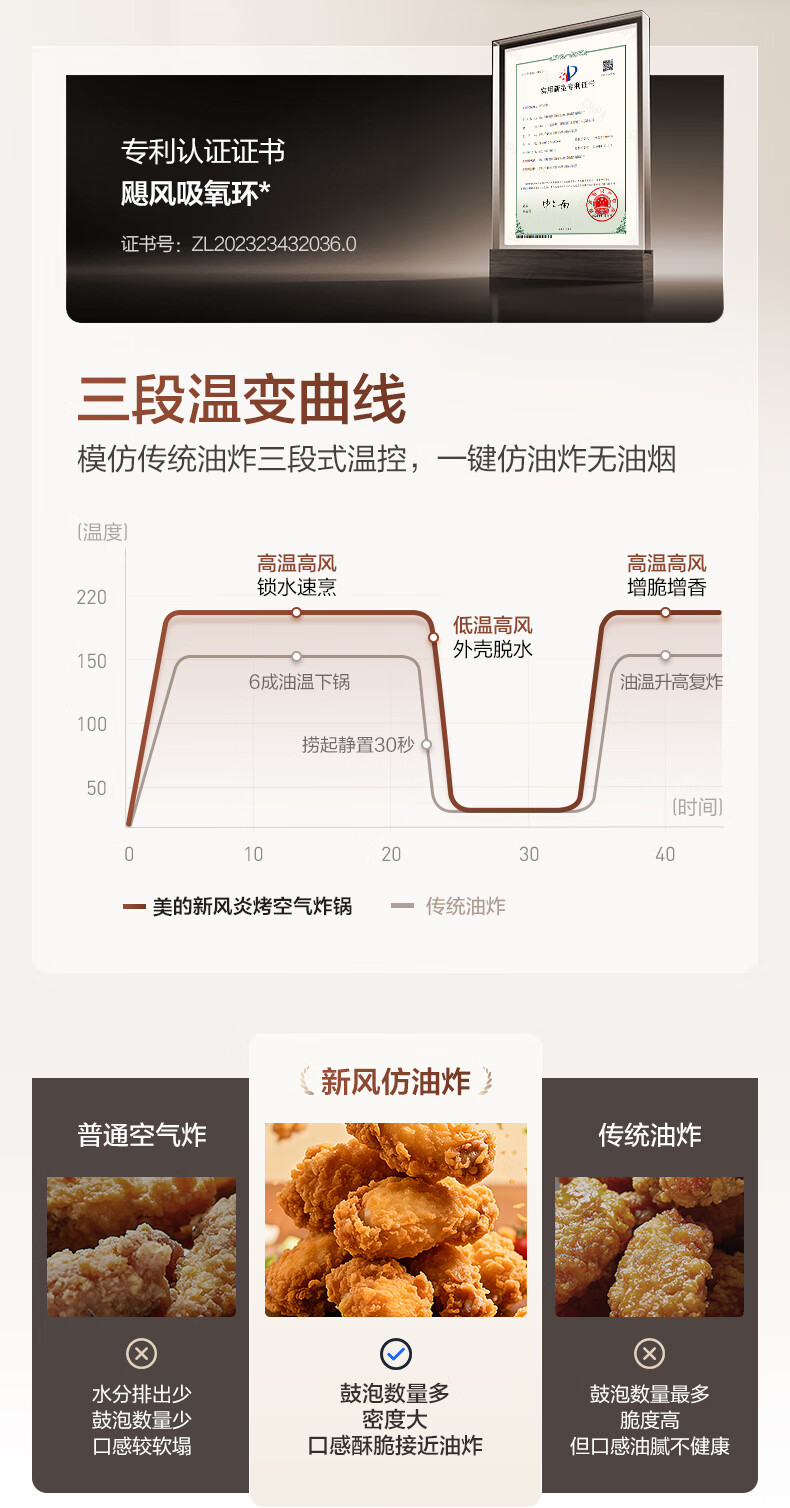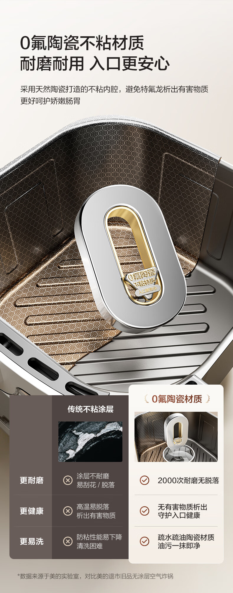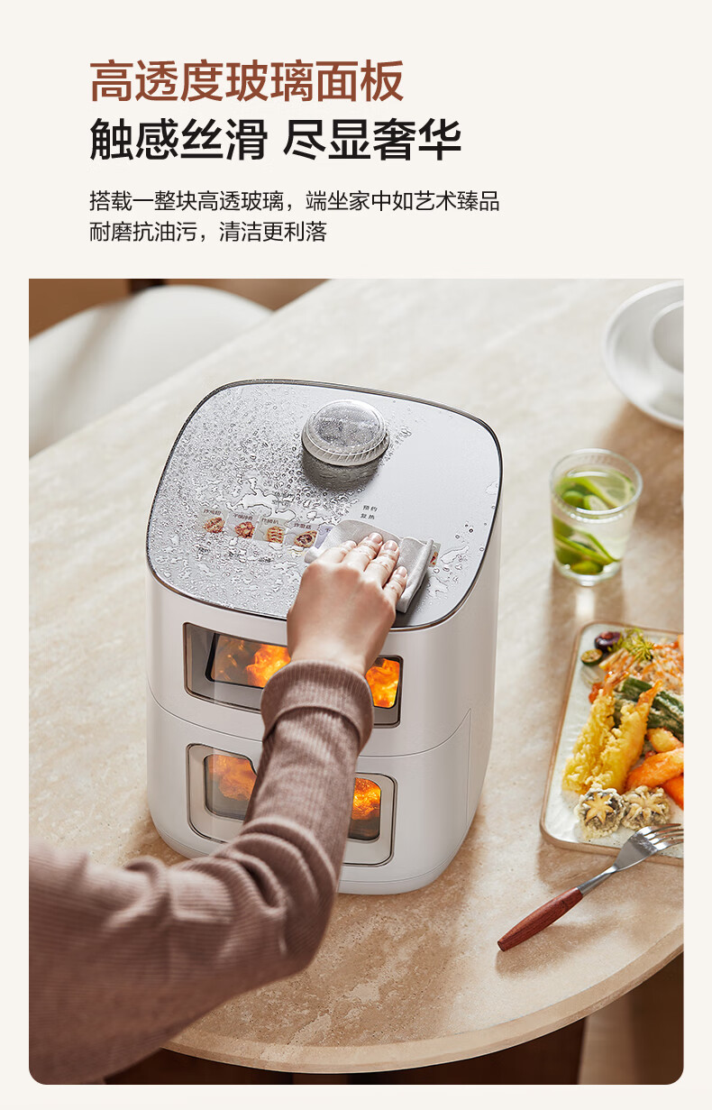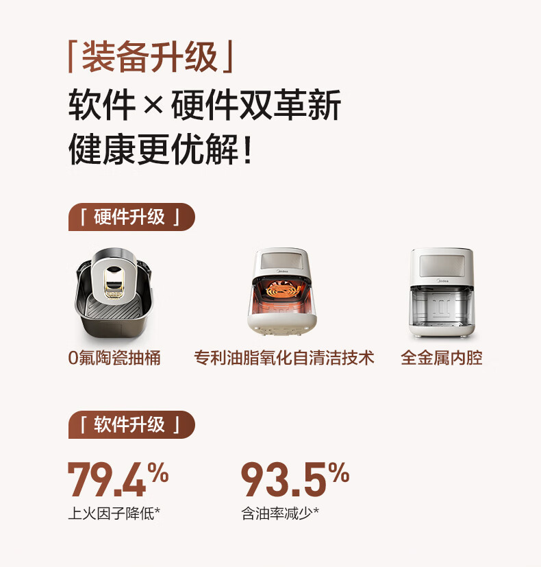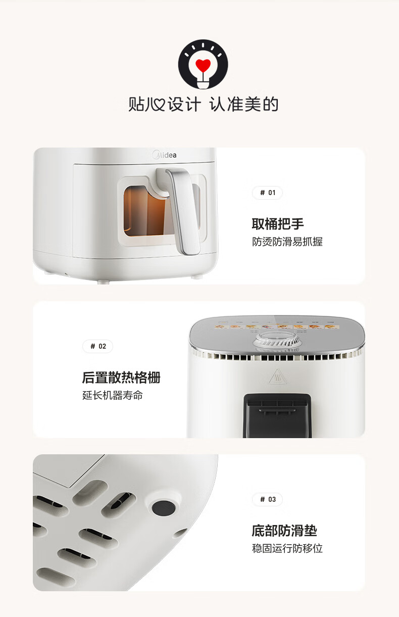 Midea New Fengyan Grilled Air Fryer 2025 New Turn-Free 0 Fluorine Ceramic Household Large Capacity 6.5L Large View Window Air Fryer Steaming and Grilling Integrated KZC6521