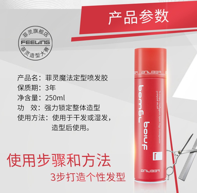 FEELING Hairspray Men's Hairspray Spray Styling Long-lasting Strong Styling Spray Hairspray Dry Spray Women's Hair Styling Fresh Fragrance Hairspray 250ML