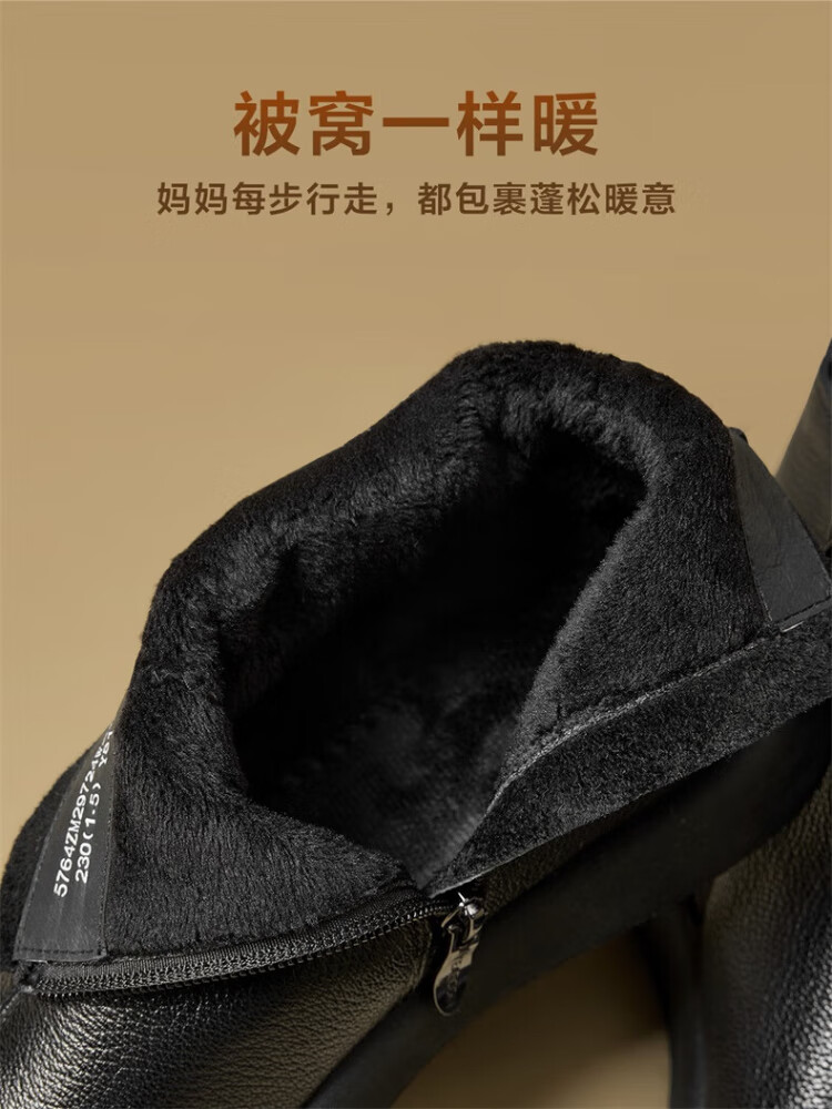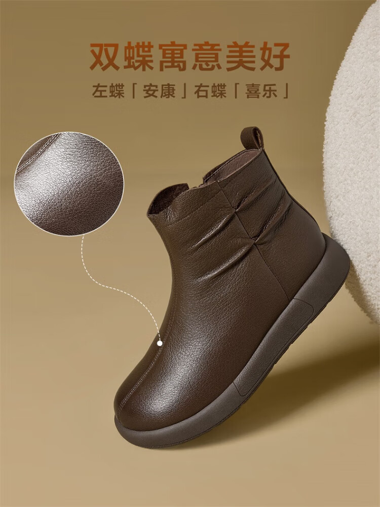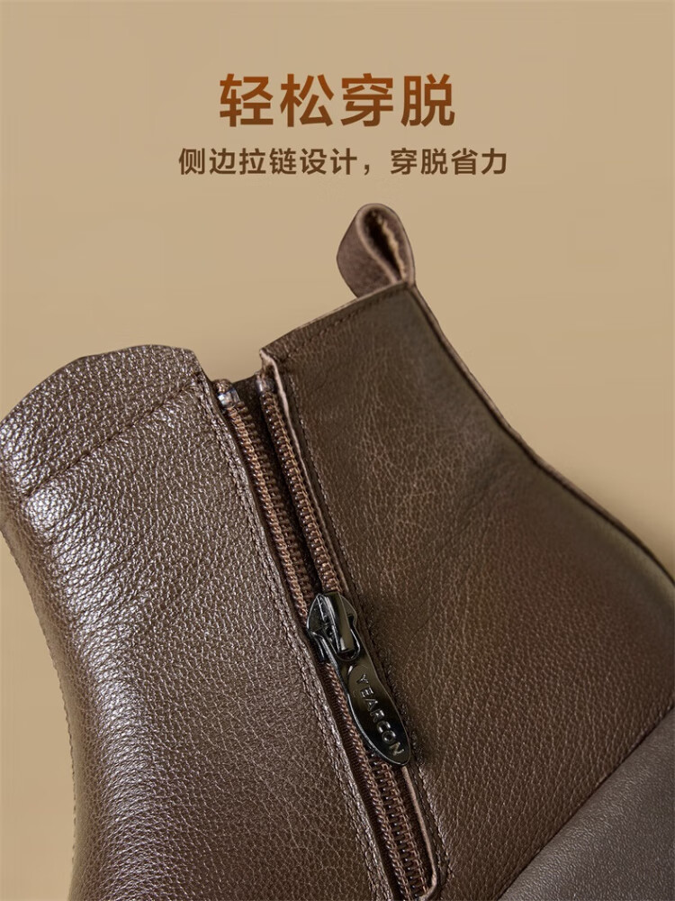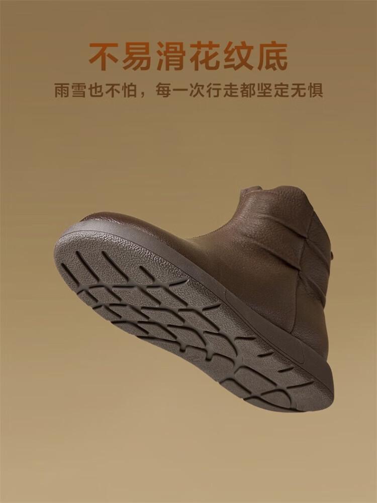 Yierkan Women's Shoes Mother's Cotton Shoes Warm Plus Velvet Cotton Shoes Leather Shoes Women's Middle-aged and Elderly Short Boots 29724W Brown 39