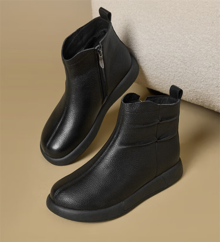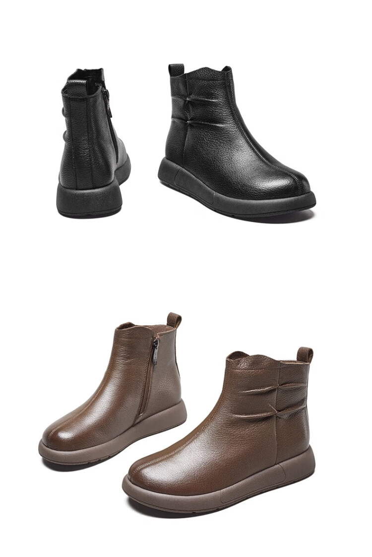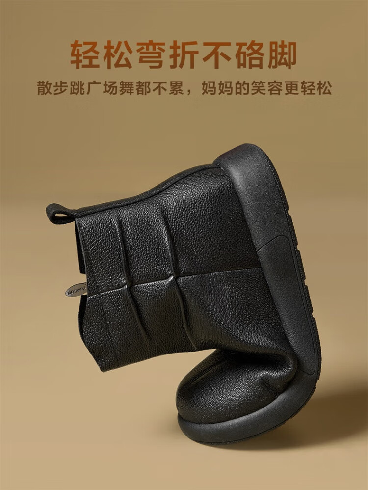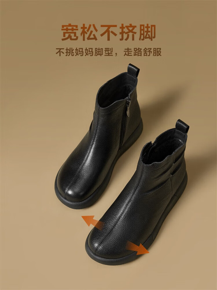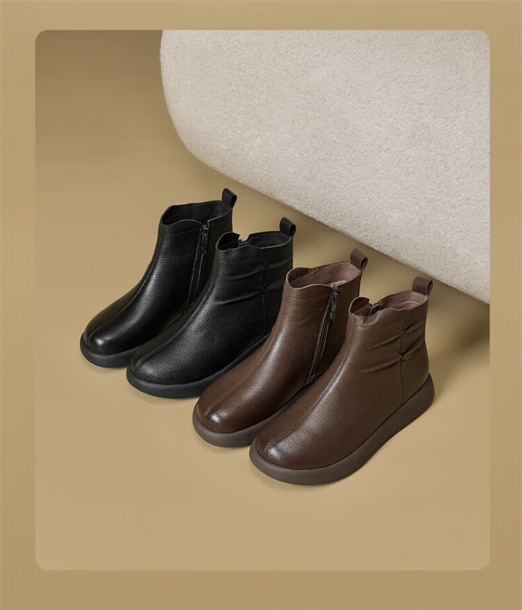 Yierkan Women's Shoes Mother's Cotton Shoes Warm Plus Velvet Cotton Shoes Leather Shoes Women's Middle-aged and Elderly Short Boots 29724W Brown 39
