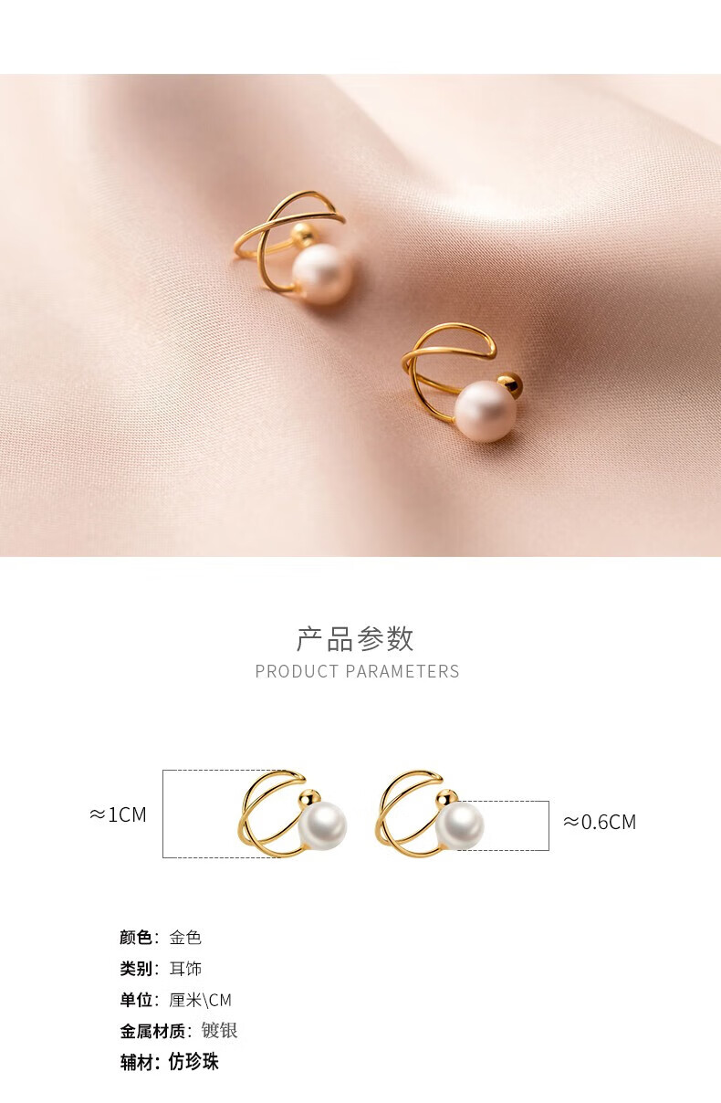 Warme Farben commuting versatile Japanese style simple imitation pearl non-pierced ear clips temperament cross line earrings a pair of ear clips