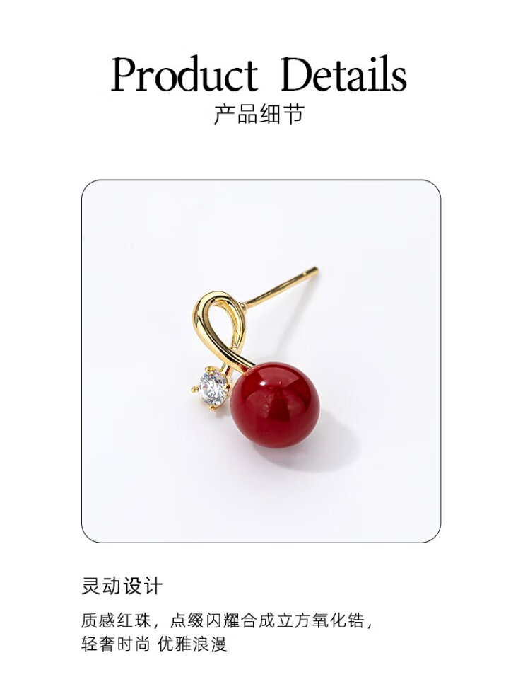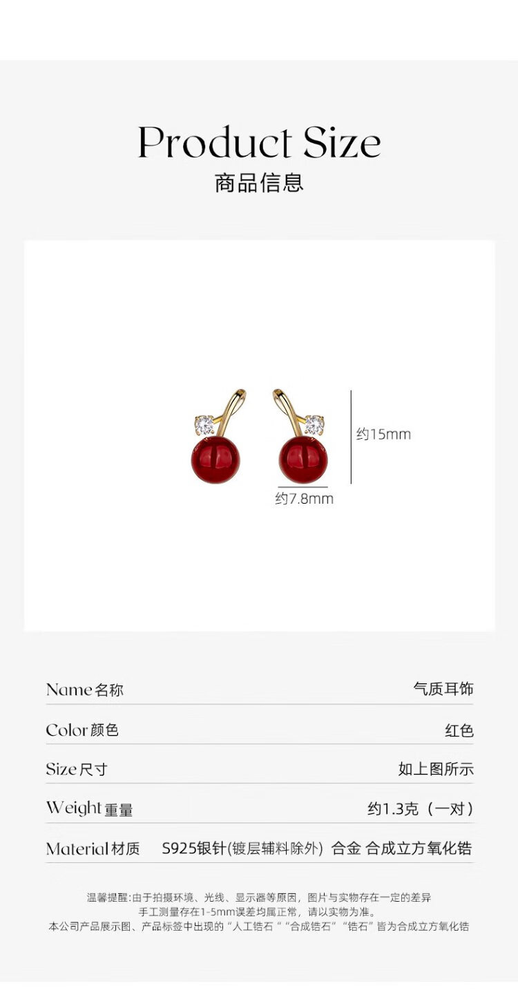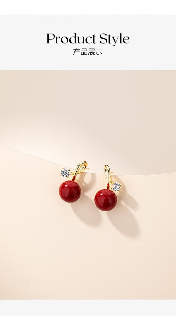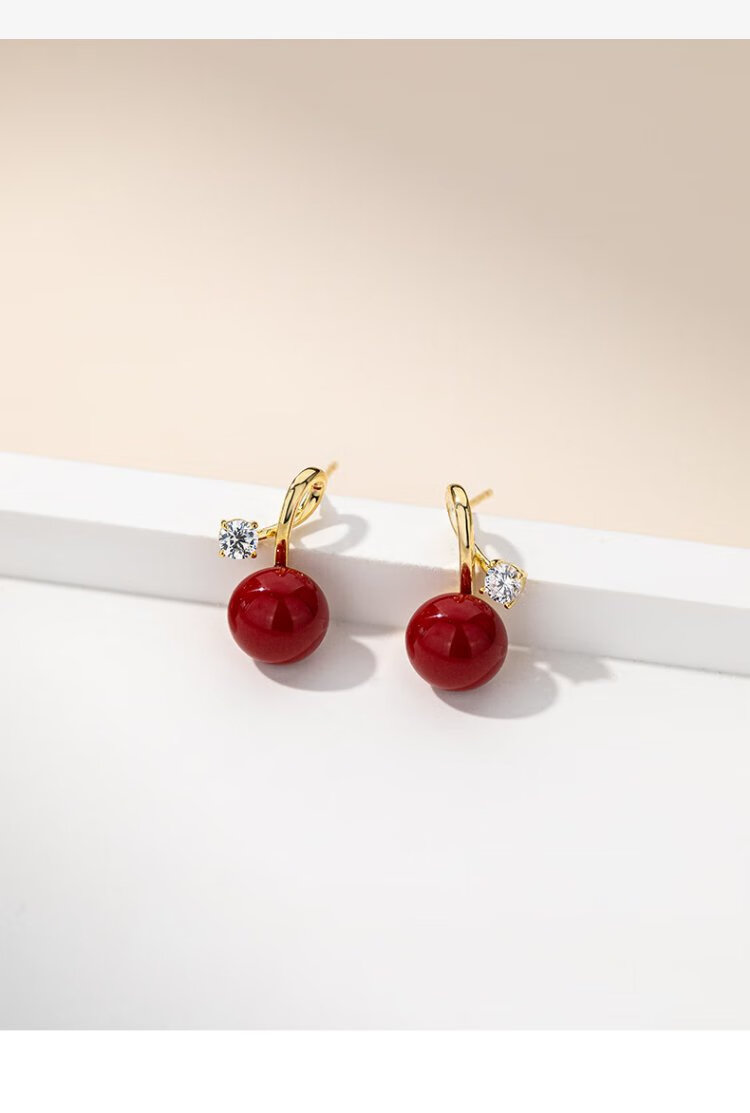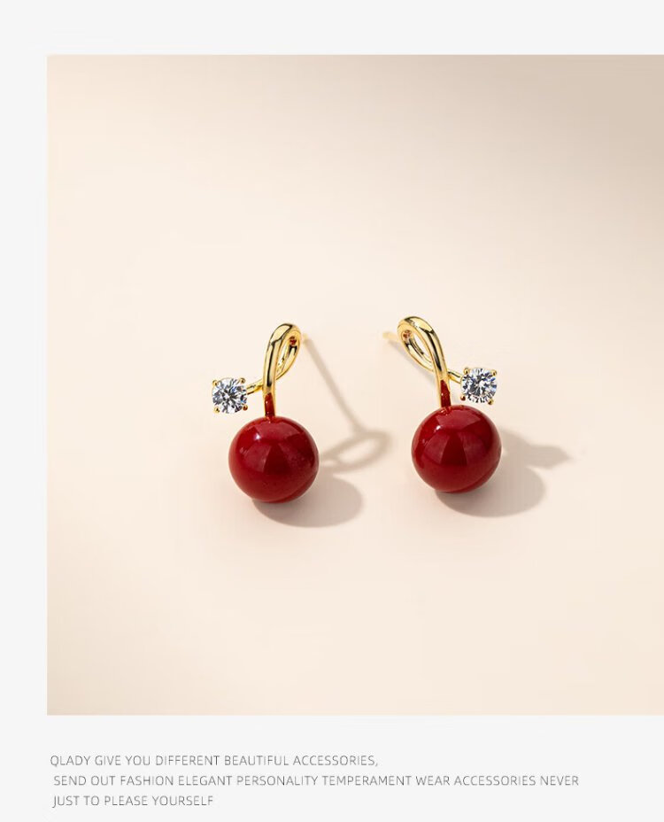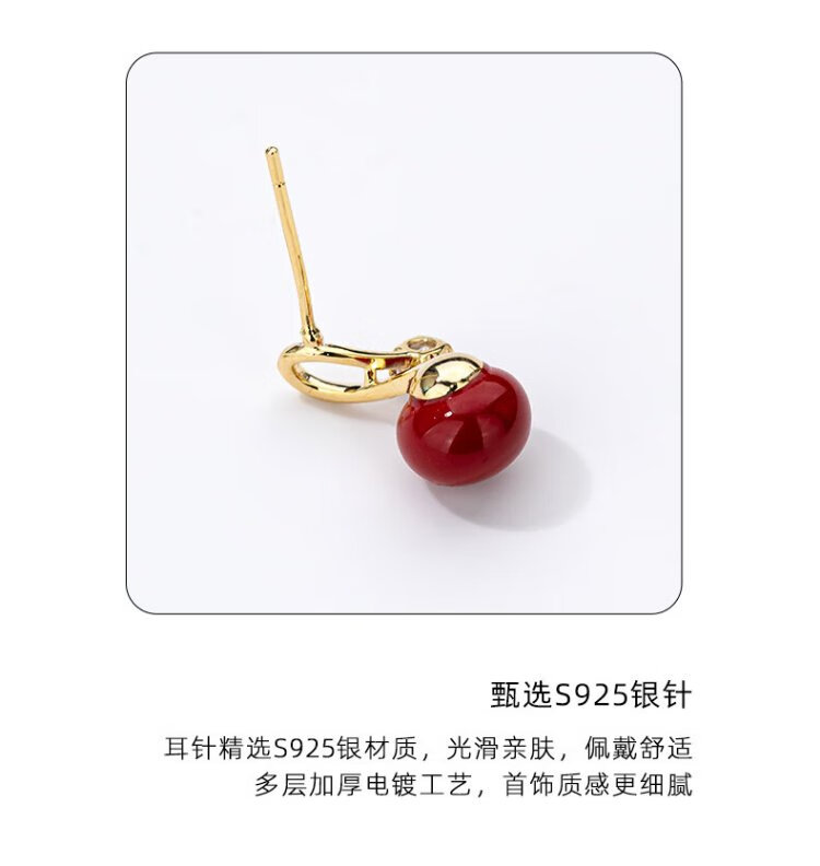 Yalundi red earrings, feminine silver earrings, 2025 new hot style, niche design, high-end, unique and exquisite