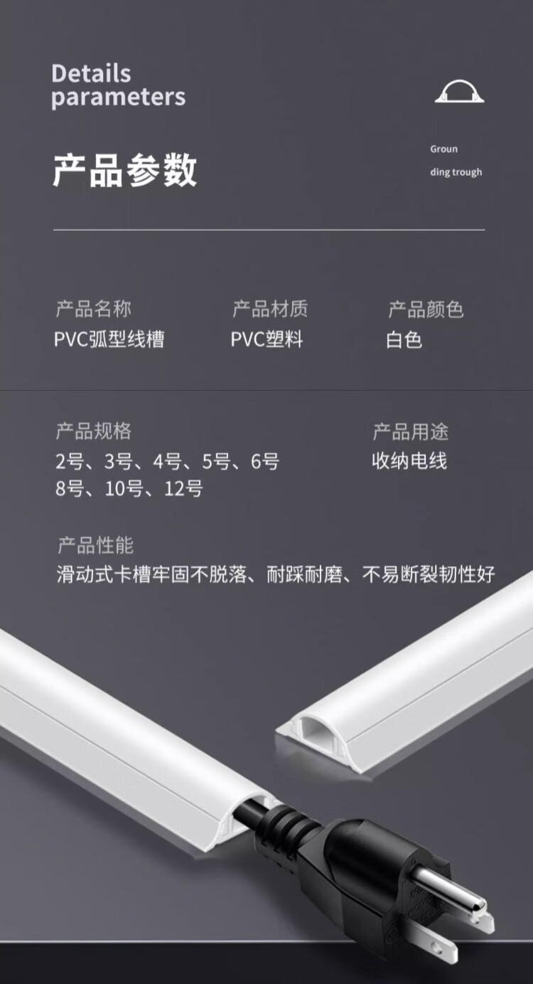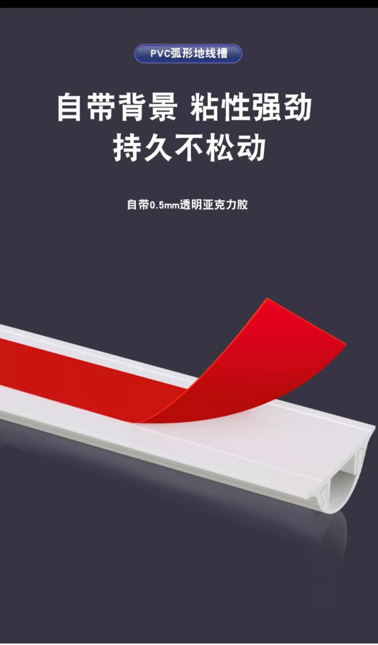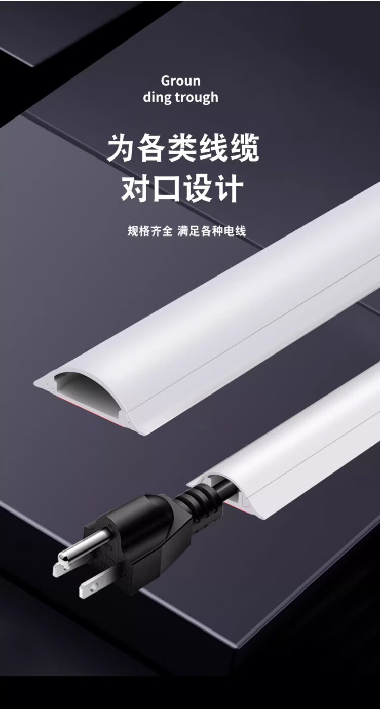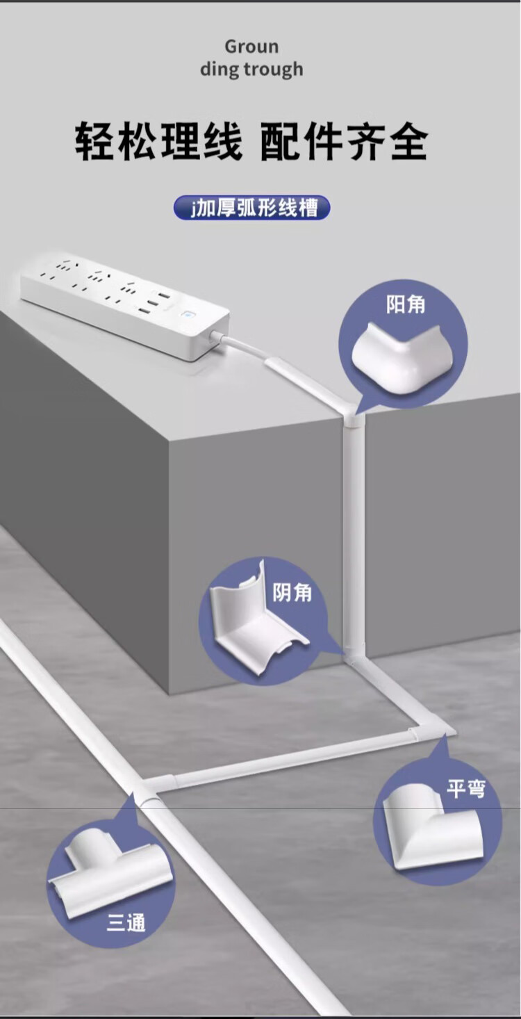 Jieshitu curved PVC cable trough surface-mounted cable trough ground anti-step self-adhesive thickened network cable wire trough flame retardant insulation No. 3/meter