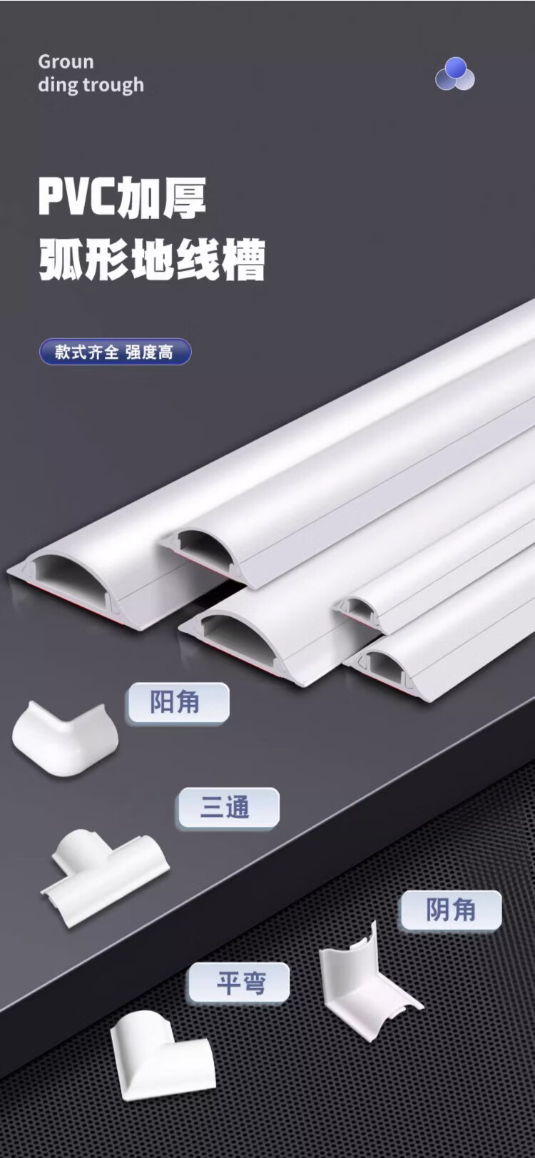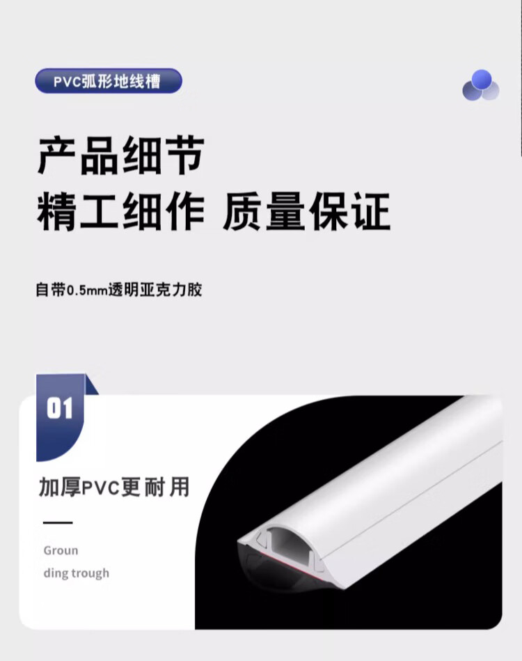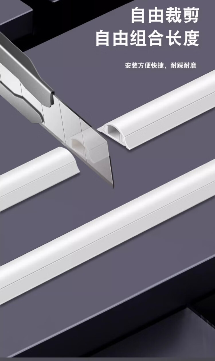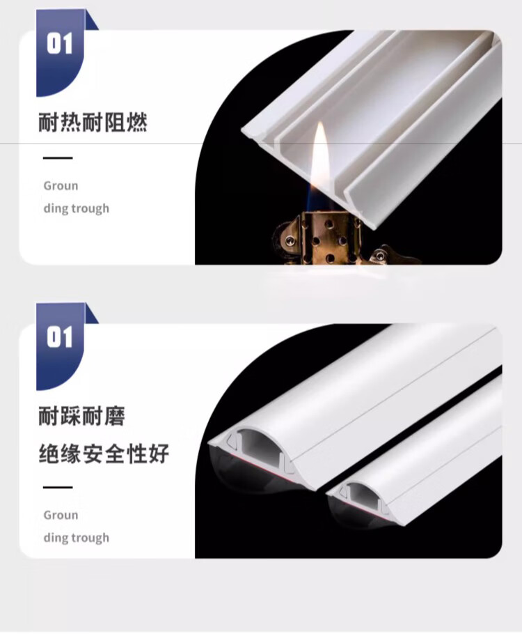 Jieshitu curved PVC cable trough surface-mounted cable trough ground anti-step self-adhesive thickened network cable wire trough flame retardant insulation No. 3/meter