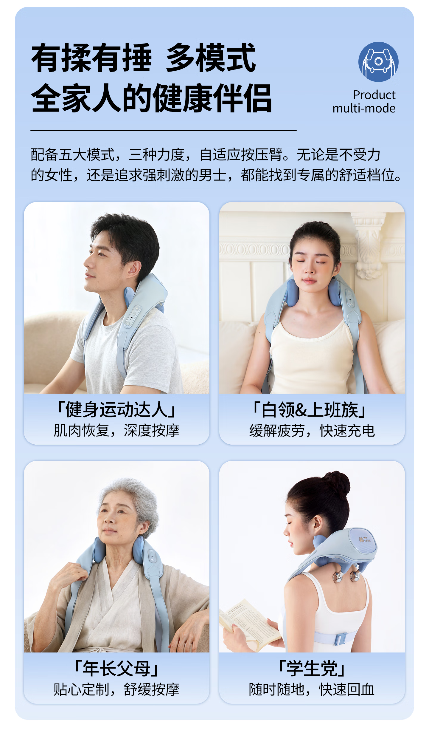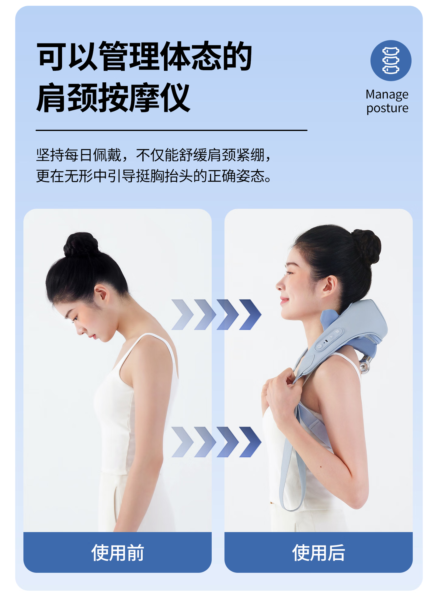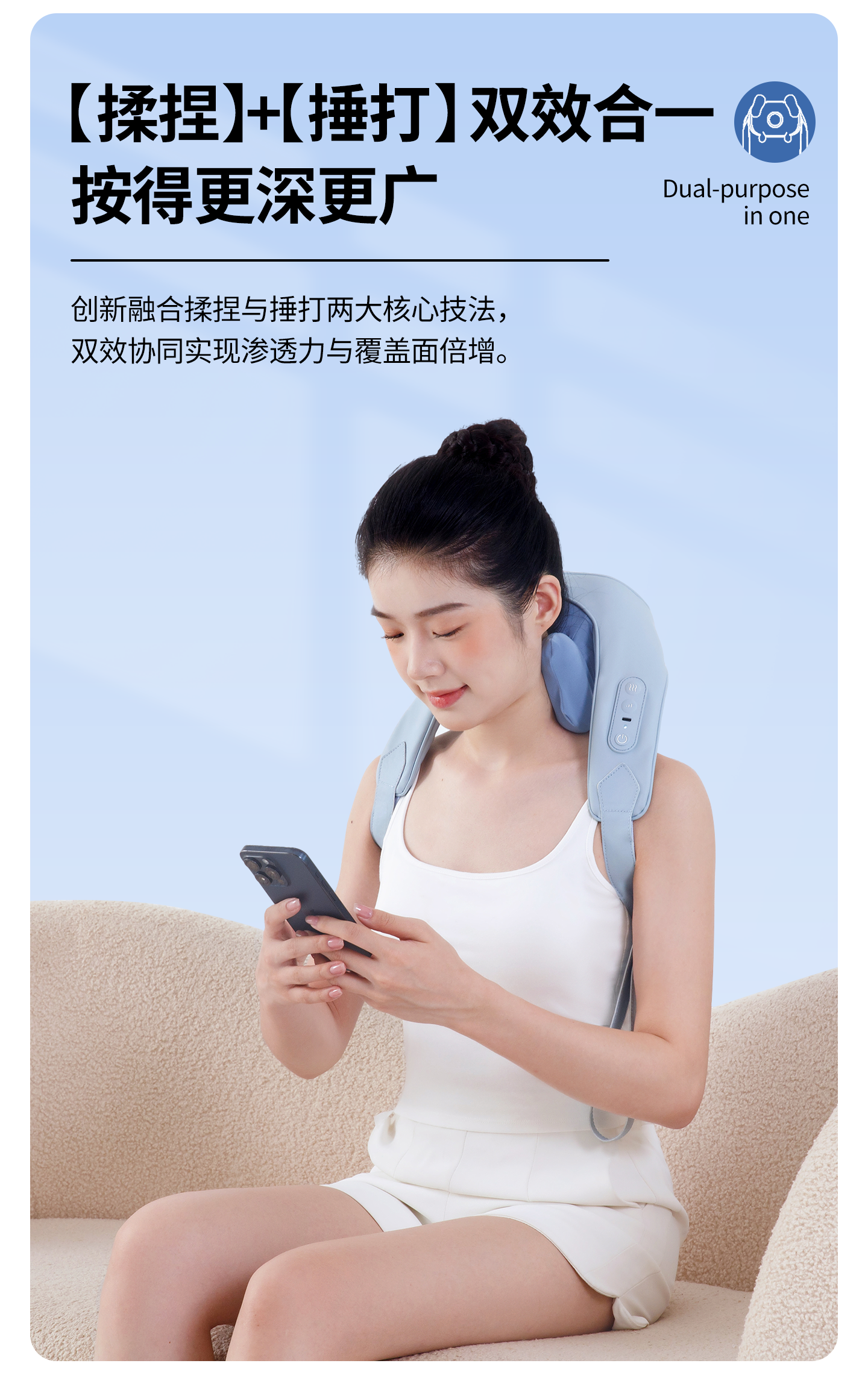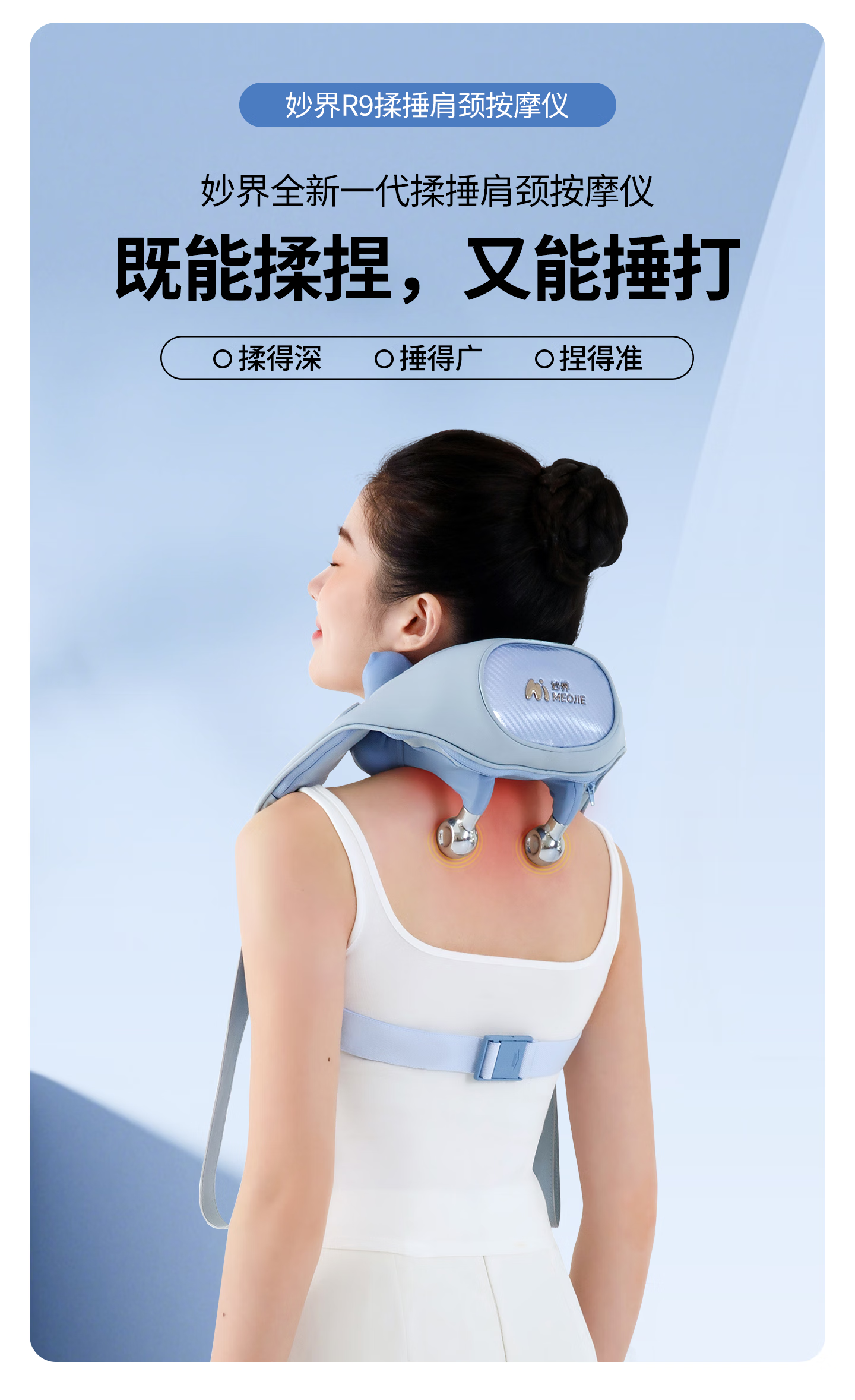Miaojie R9 shoulder and neck massager cervical spine massager hot compress massage shawl kneading and beating all-in-one neck, shoulder, waist, leg and back multi-functional massage birthday Christmas gift blue