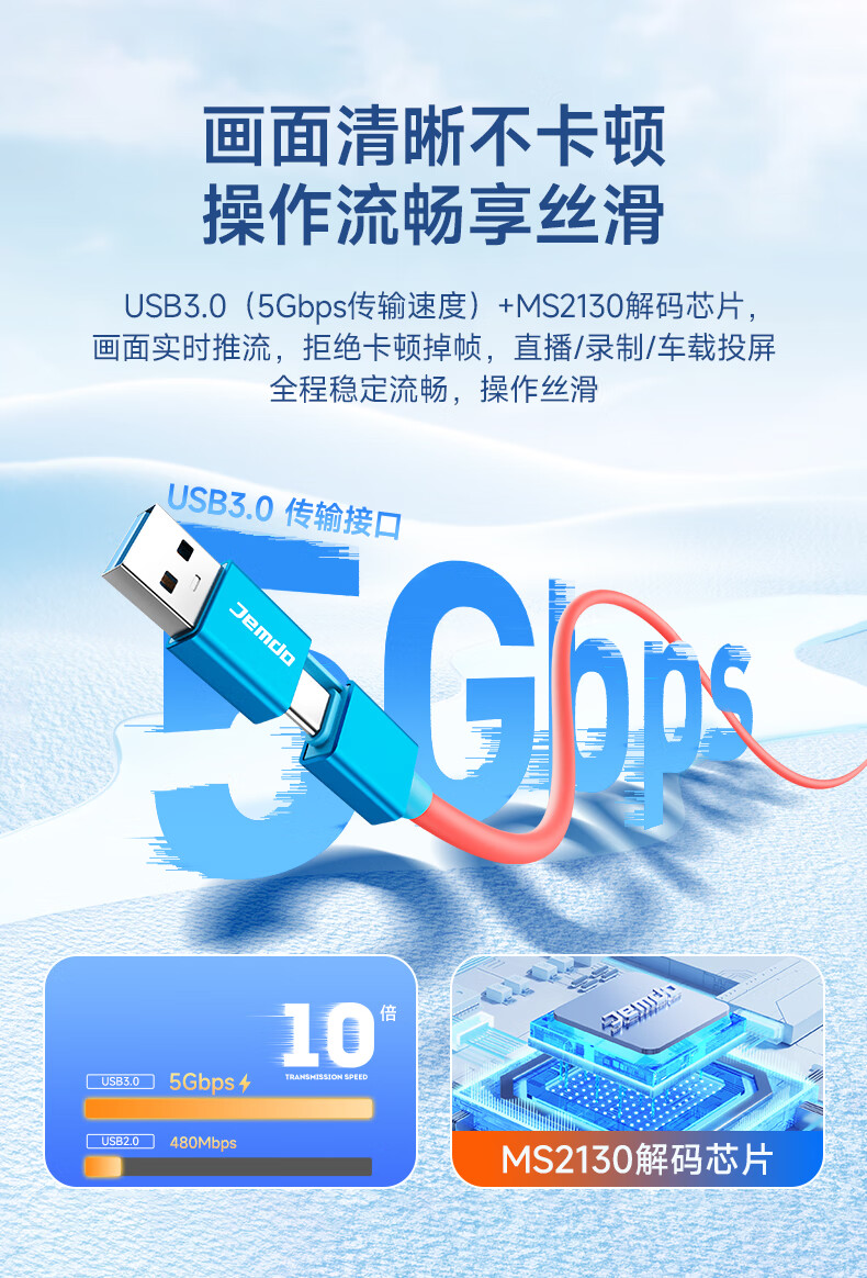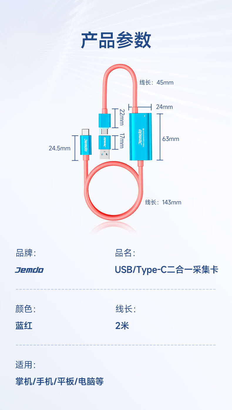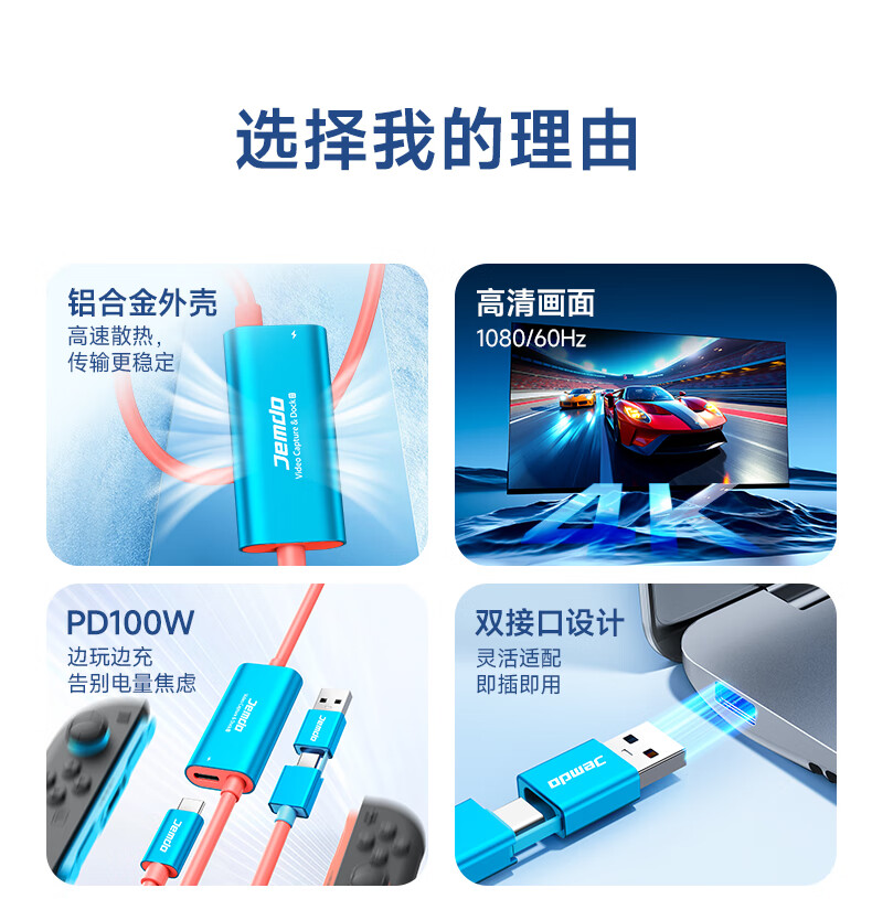 Jemdo is suitable for Switch2 capture card one-line high-definition video converter ns portable base connection ipad laptop tablet typec car vehicle screen projection cable