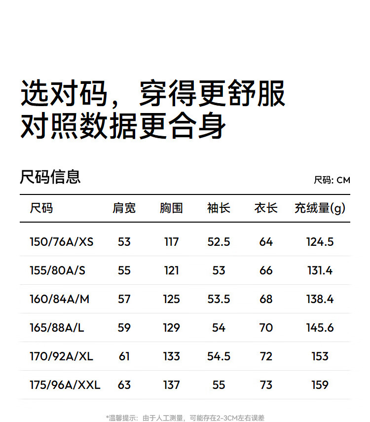 China (cm) 160-165/84-86 165-170 / 88-90 167-172 / 92-96 168-173 / 98-102 170-176 / 106-110