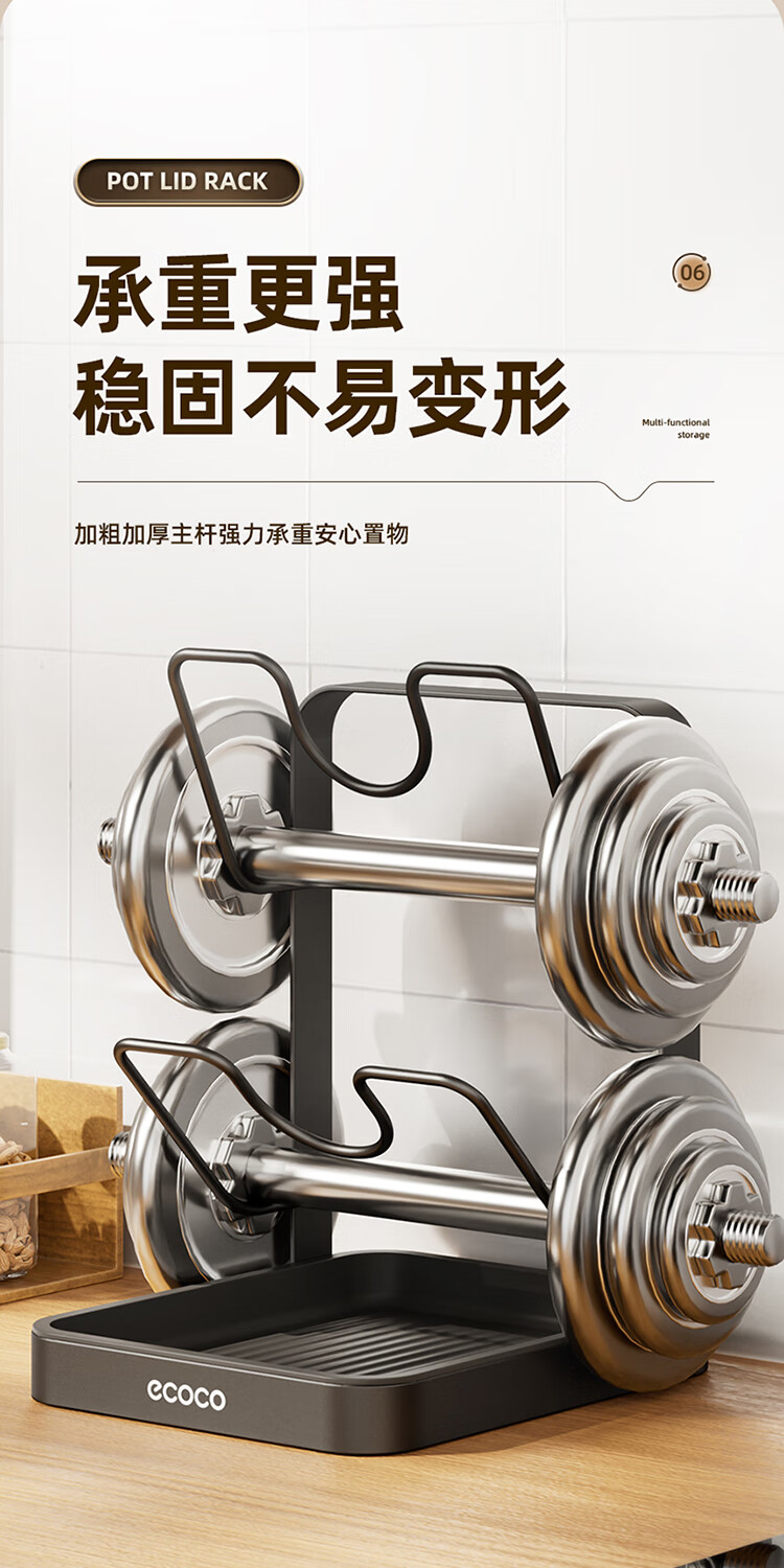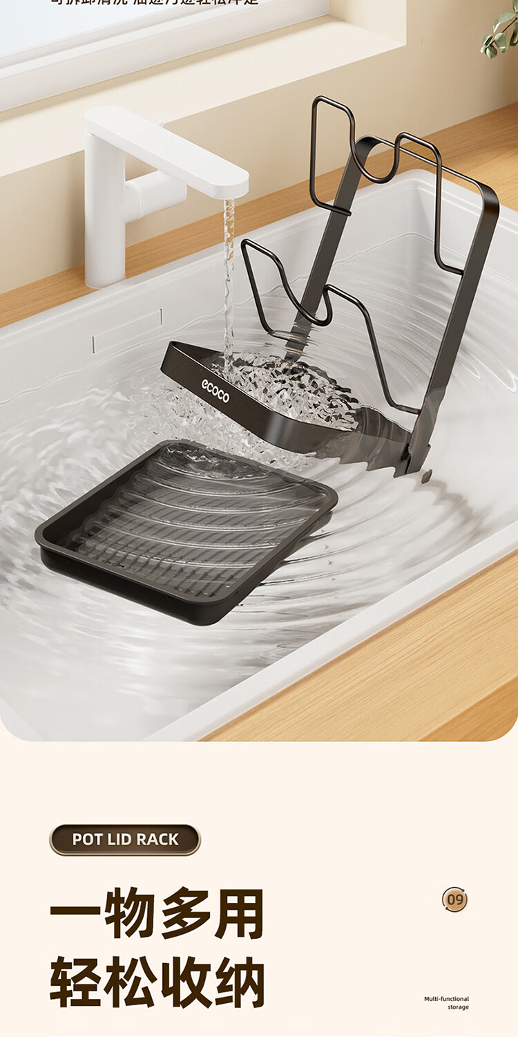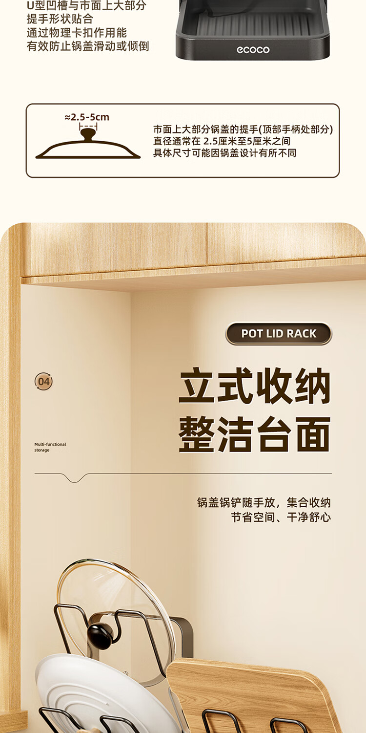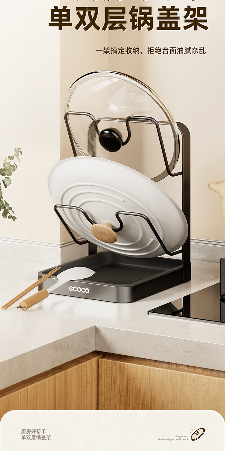 Ecoco pot cover rack punch-free countertop household vertical sitting detachable kitchen multi-functional storage rack E25174
