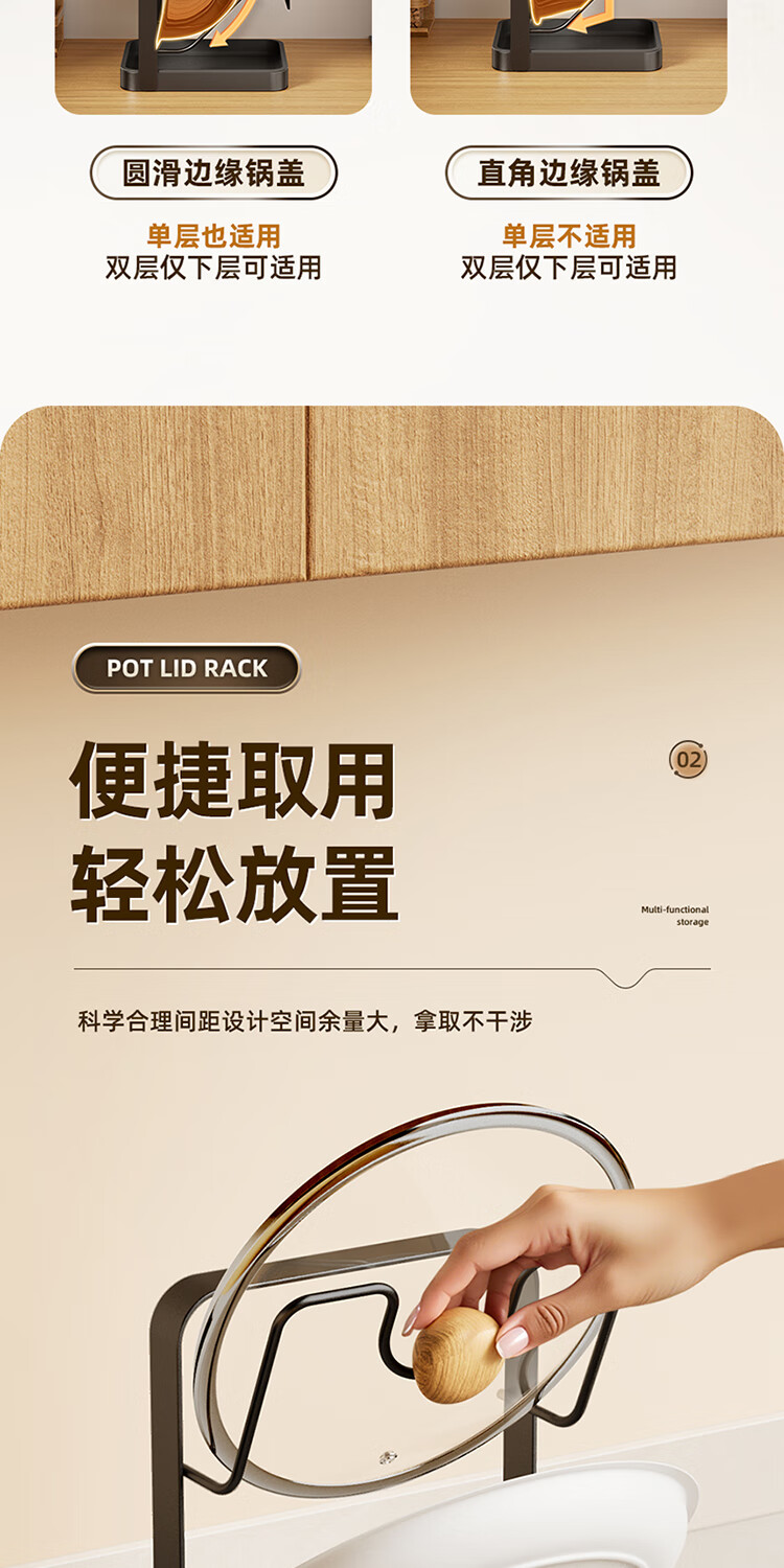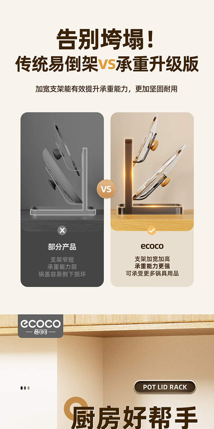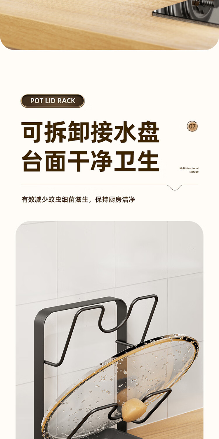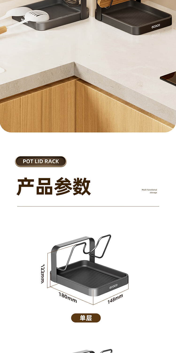 Ecoco pot cover rack punch-free countertop household vertical sitting detachable kitchen multi-functional storage rack E25174
