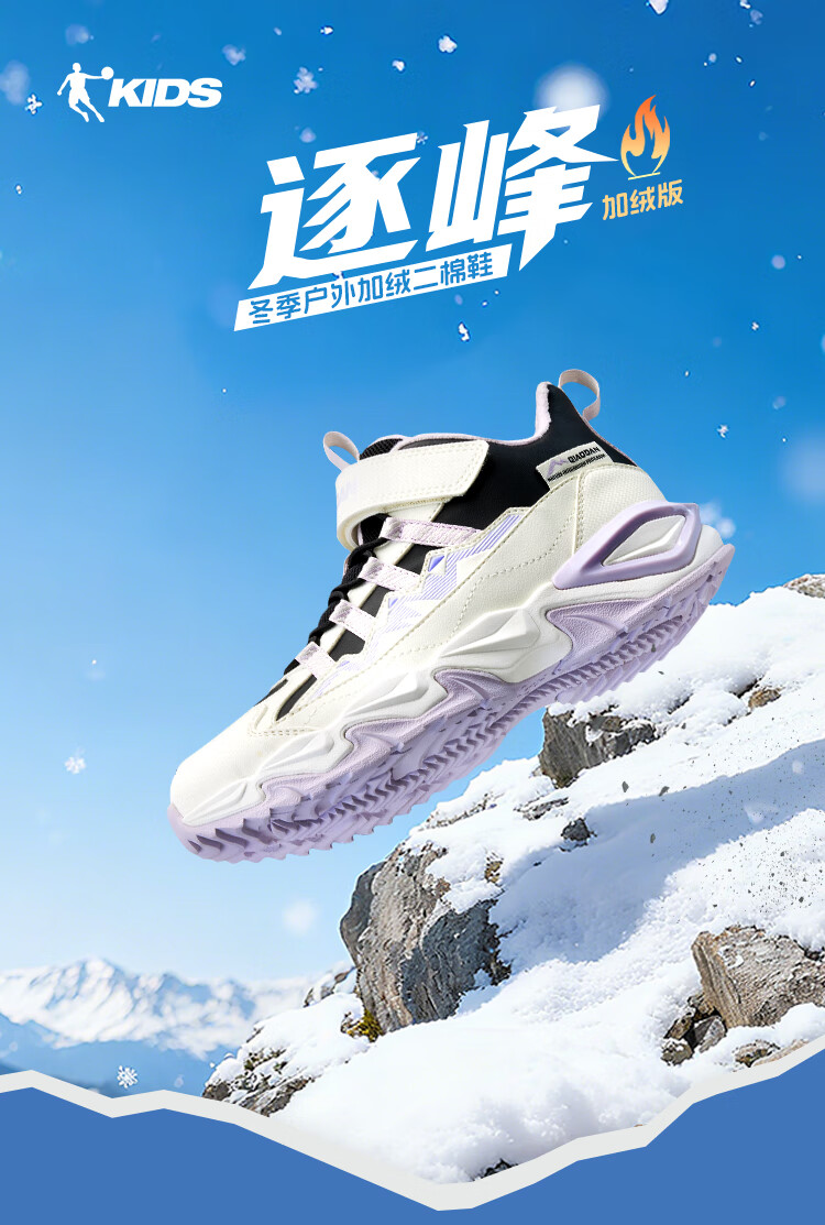 Jordan Boys' Velvet Cotton Shoes Children's Mid-top Outdoor Two-Cotton Shoes Children's Sports Shoes Black/Ivory White 35