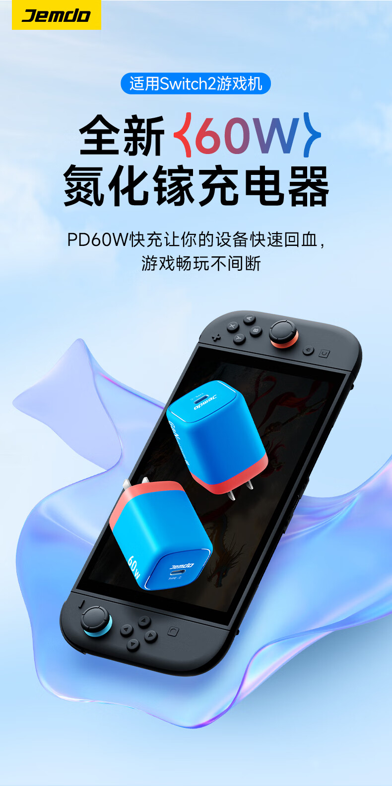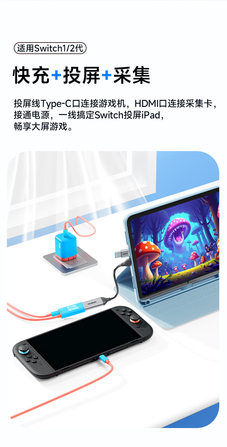 Jemdo is suitable for Nintendo Switch2 gallium nitride charger ns2 generation game console portable base oled projection cable HDMI conversion head fast charging plug power adapter accessories