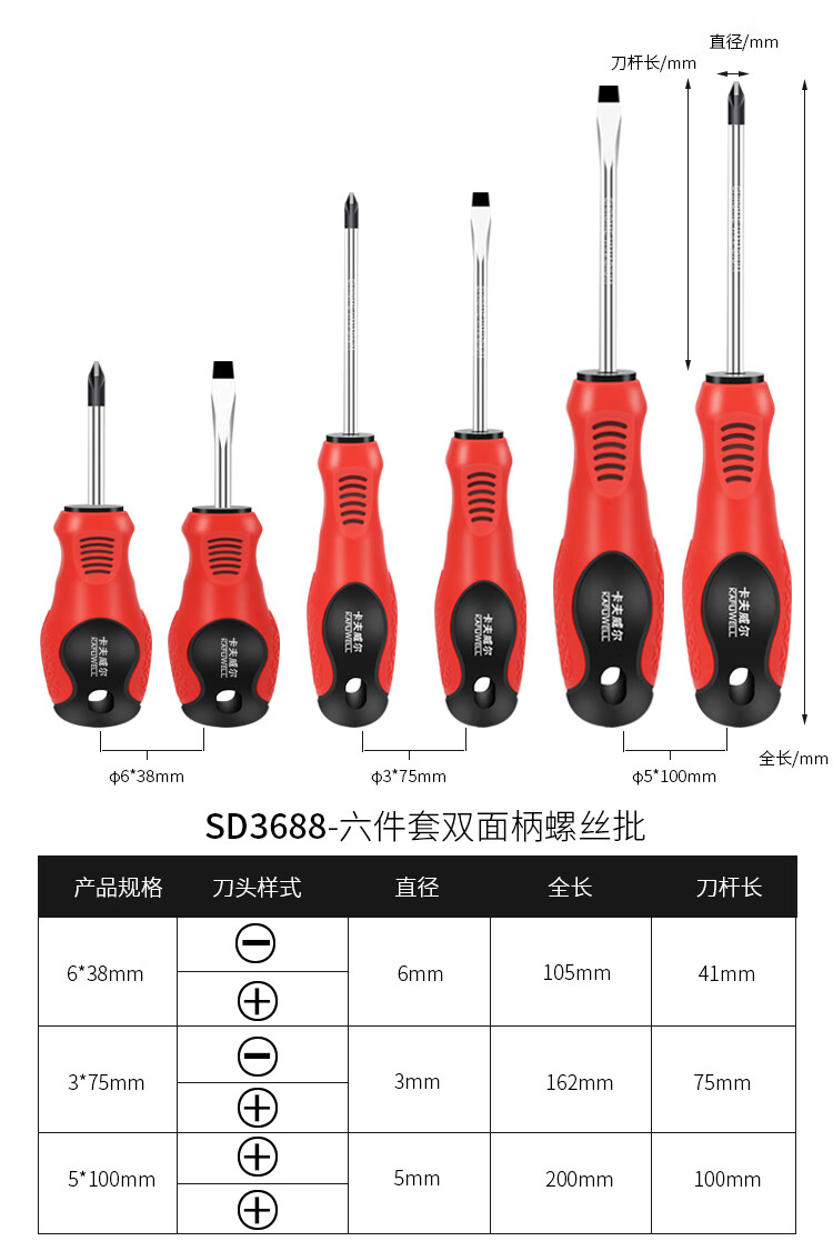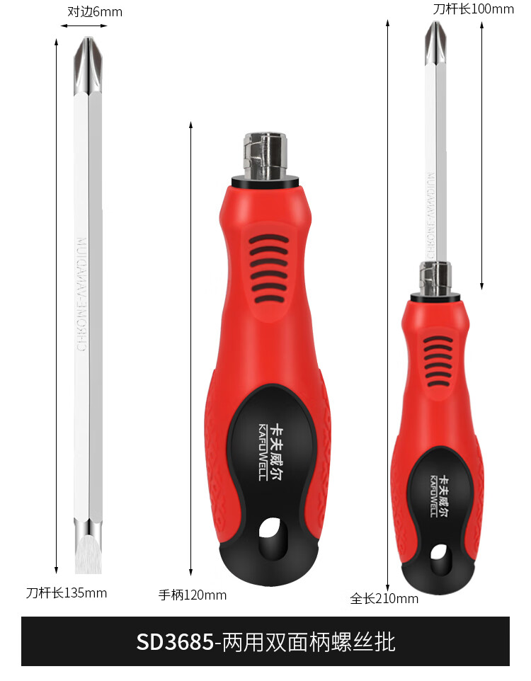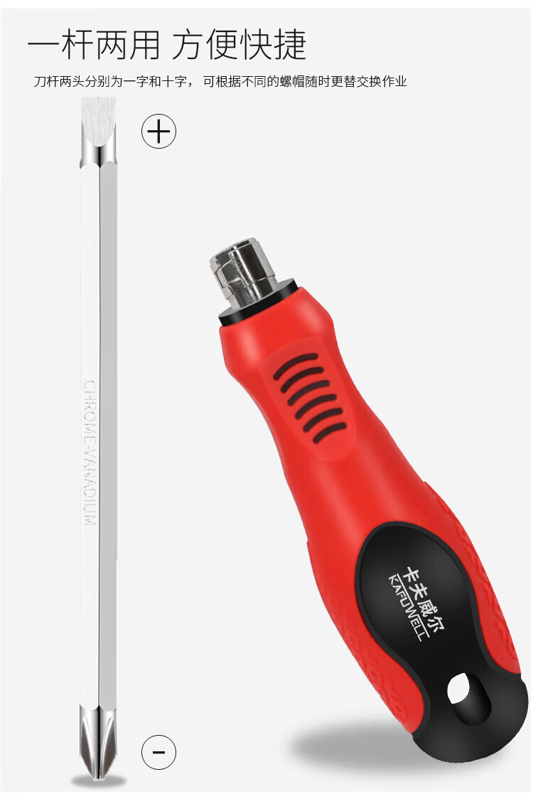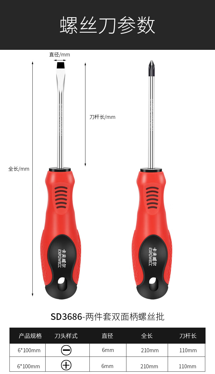 Kraftwell double-sided handle screwdriver 2-piece set chrome vanadium steel screwdriver with magnetic suction screw SD3686