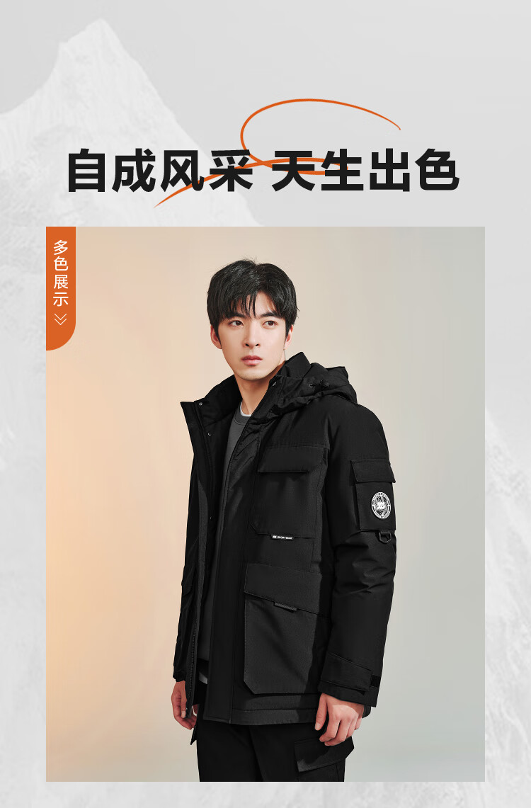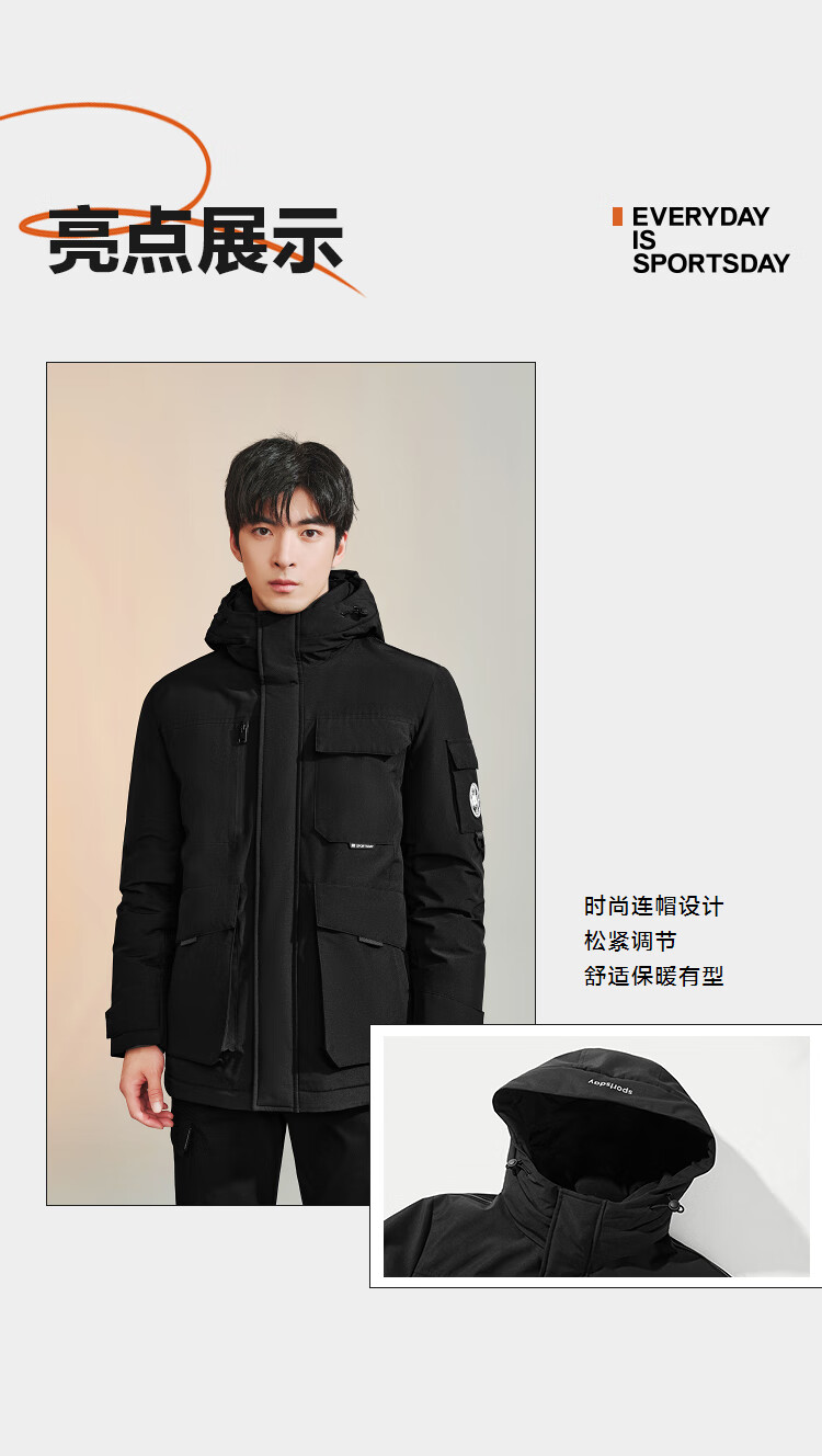 HLA海澜之家羽绒服男25运动舒适连帽外套男冬季