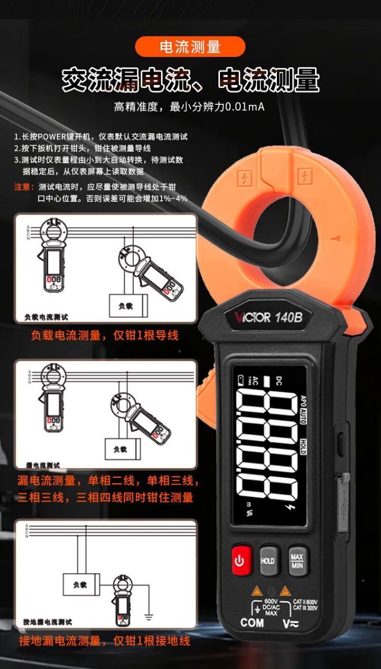 Victory Instrument (VICTOR) mA clamp meter leakage current detector clamp ammeter high precision clamp meter mA tester VC140B