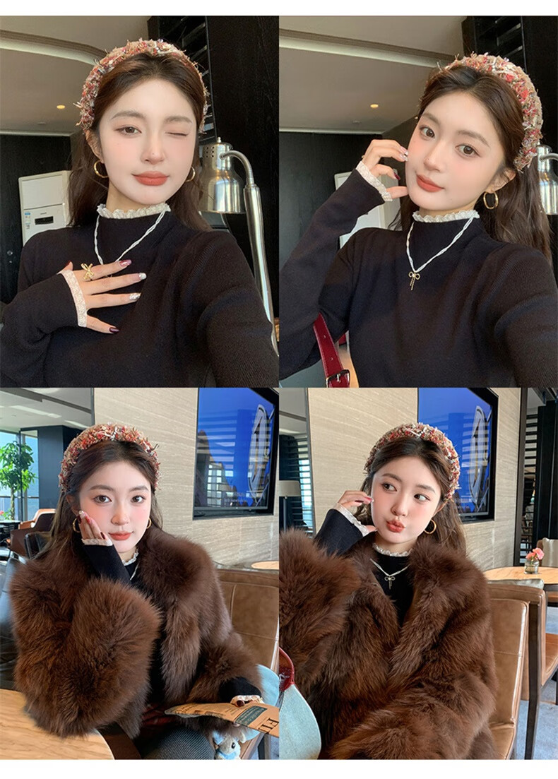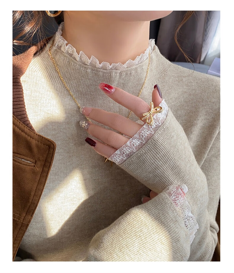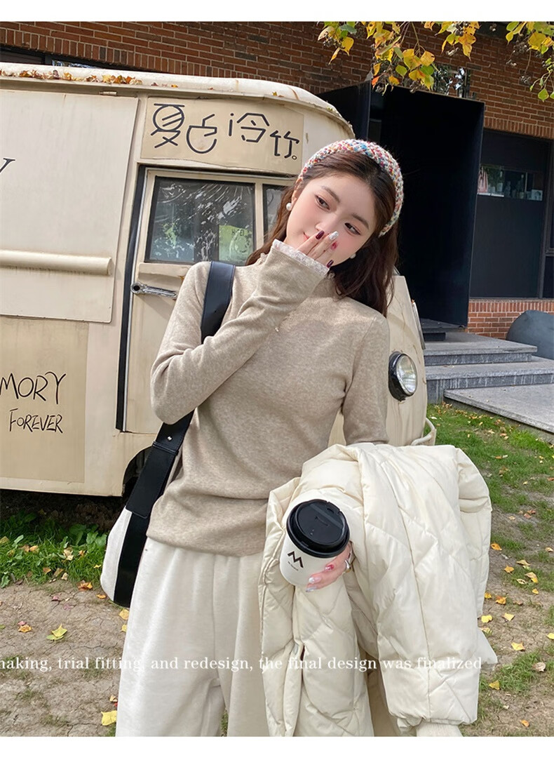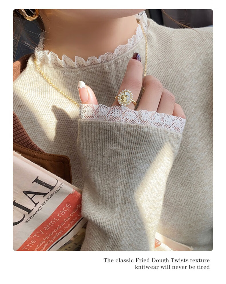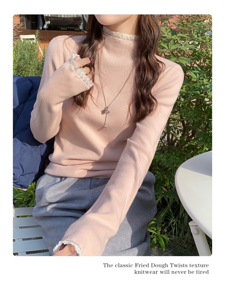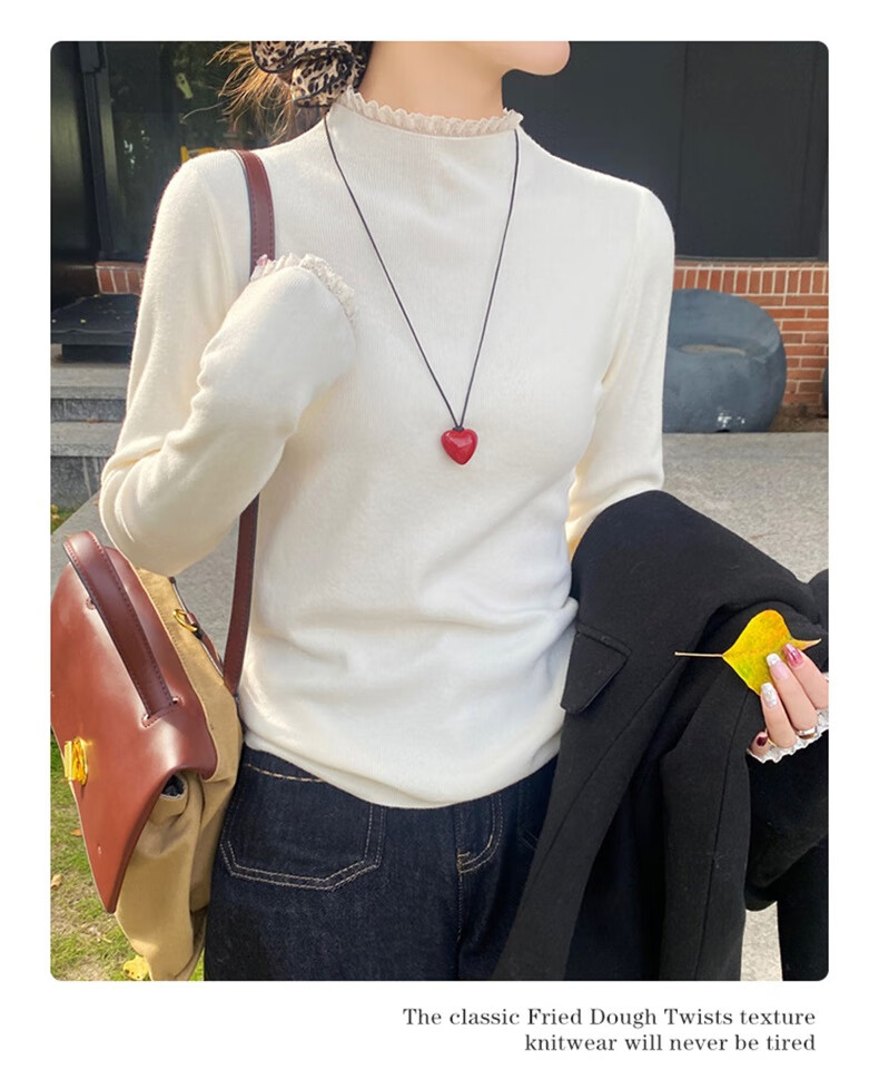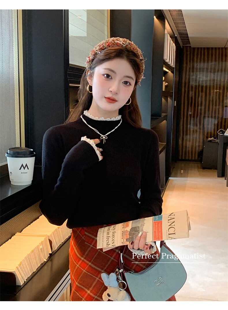 Yu Zhaolin (YUZHAOLIN) lace edge bottoming shirt women's knitted inner wear 2025 new high-end top half turtleneck sweater autumn and winter