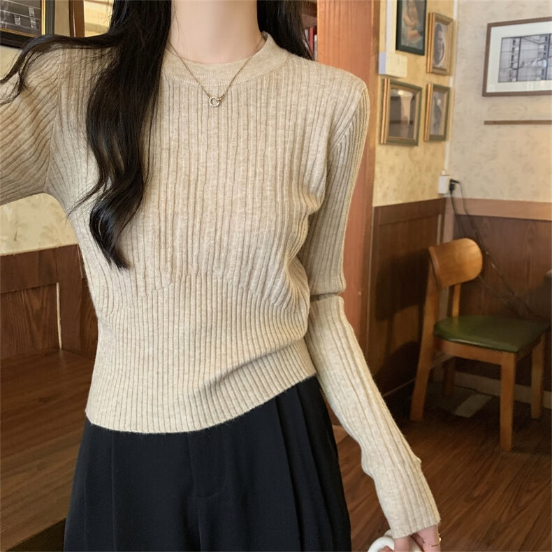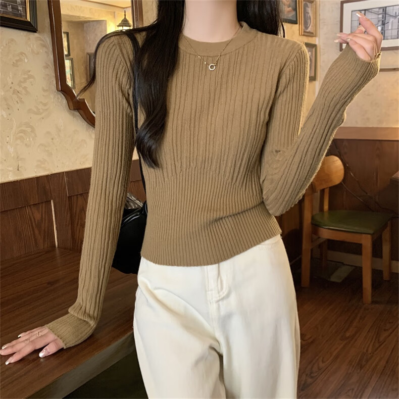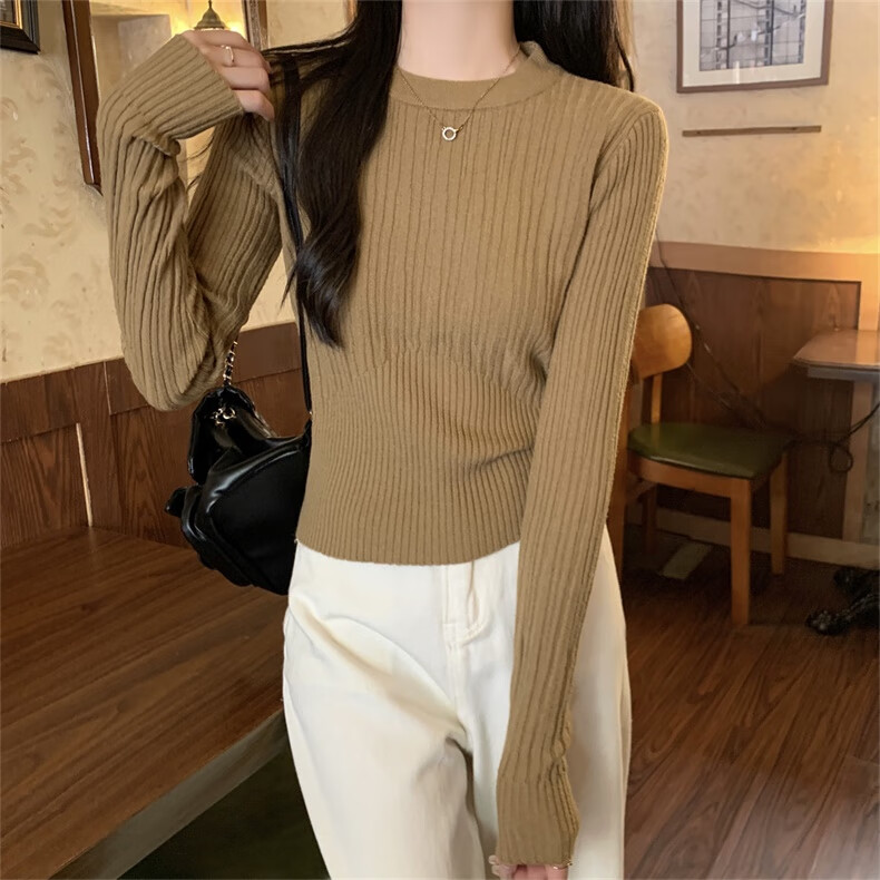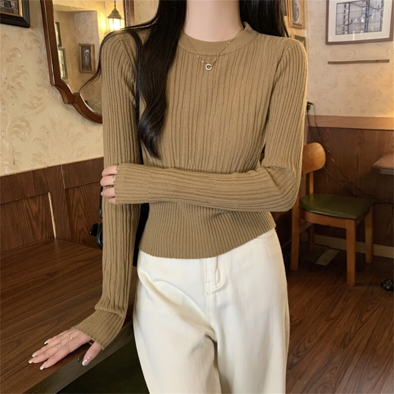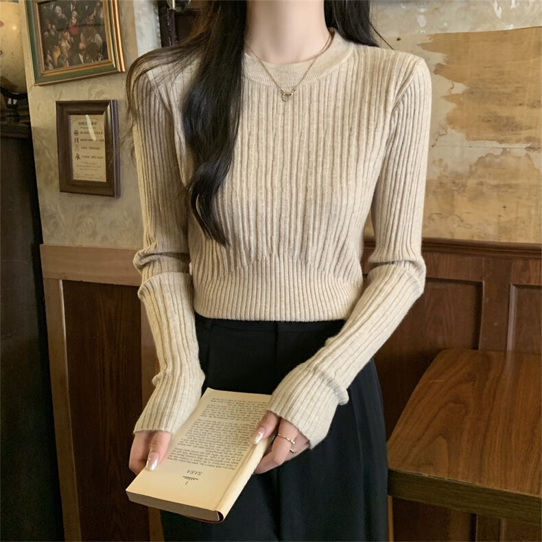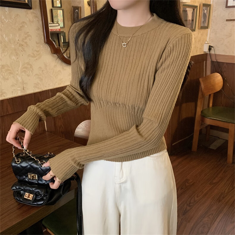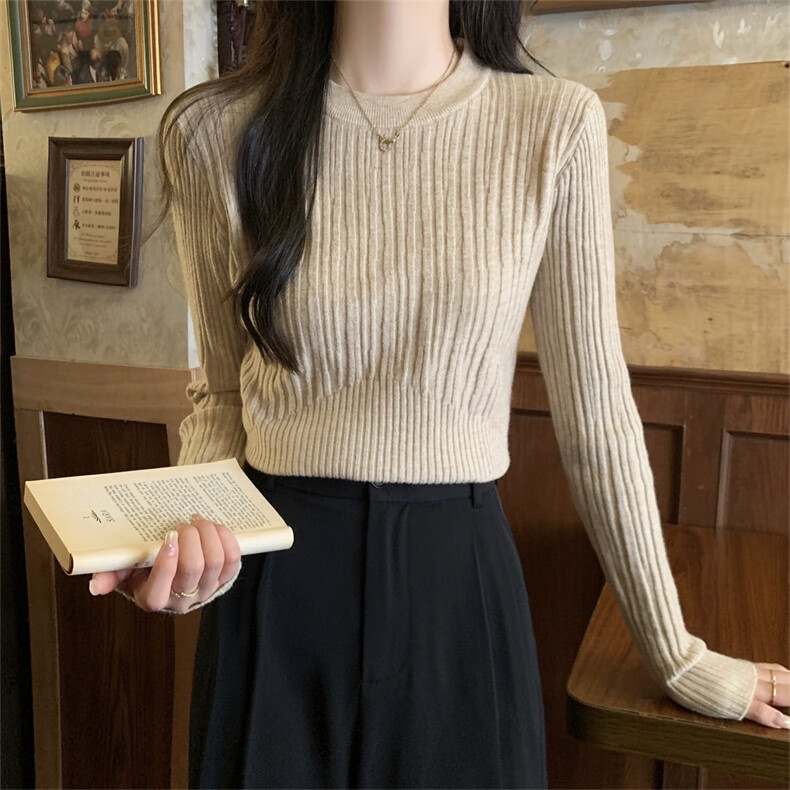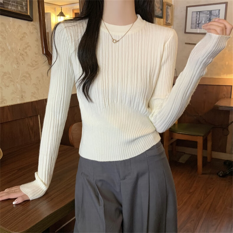 Yu Zhaolin (YUZHAOLIN) Andy velvet bottoming sweater sweater for women 2025 spring, autumn and winter design with pit stripes, slim short inner top