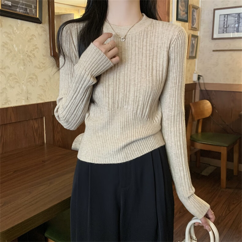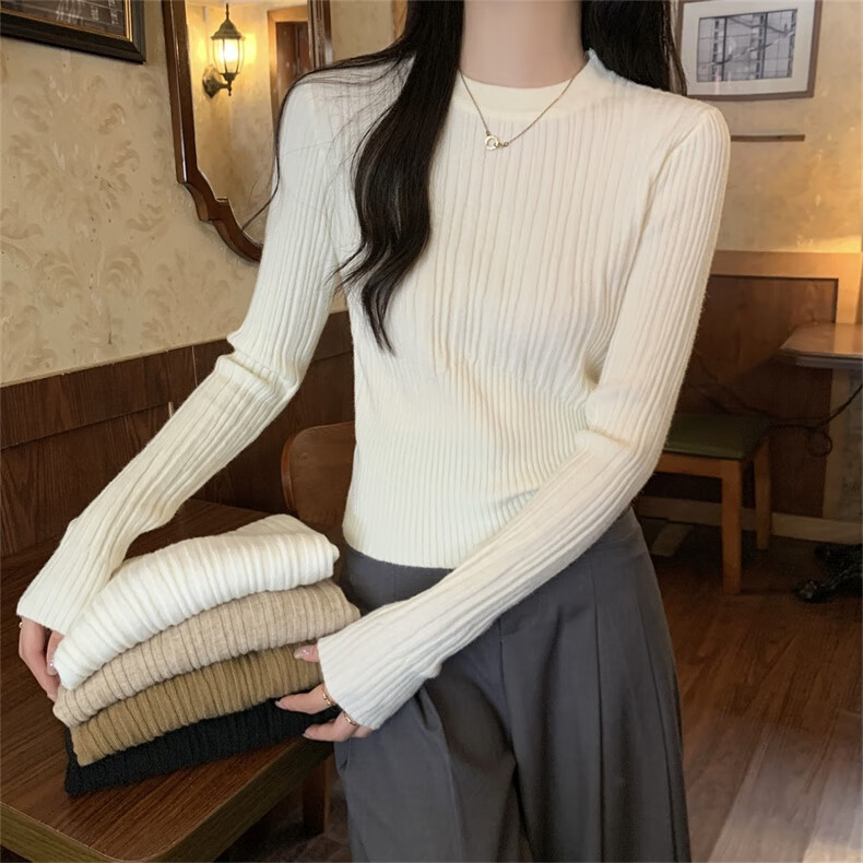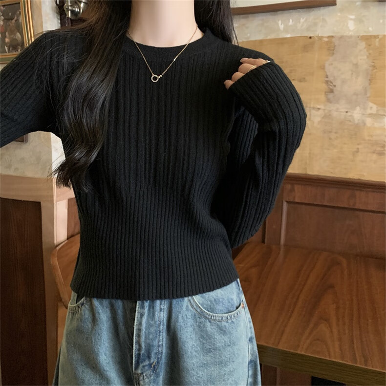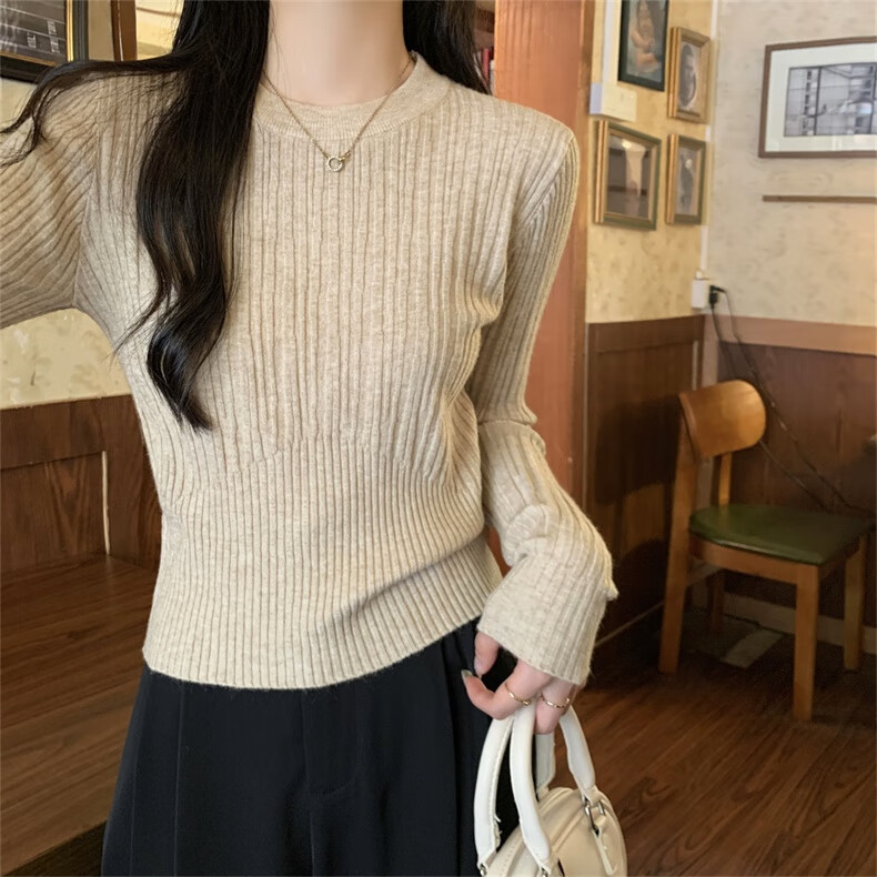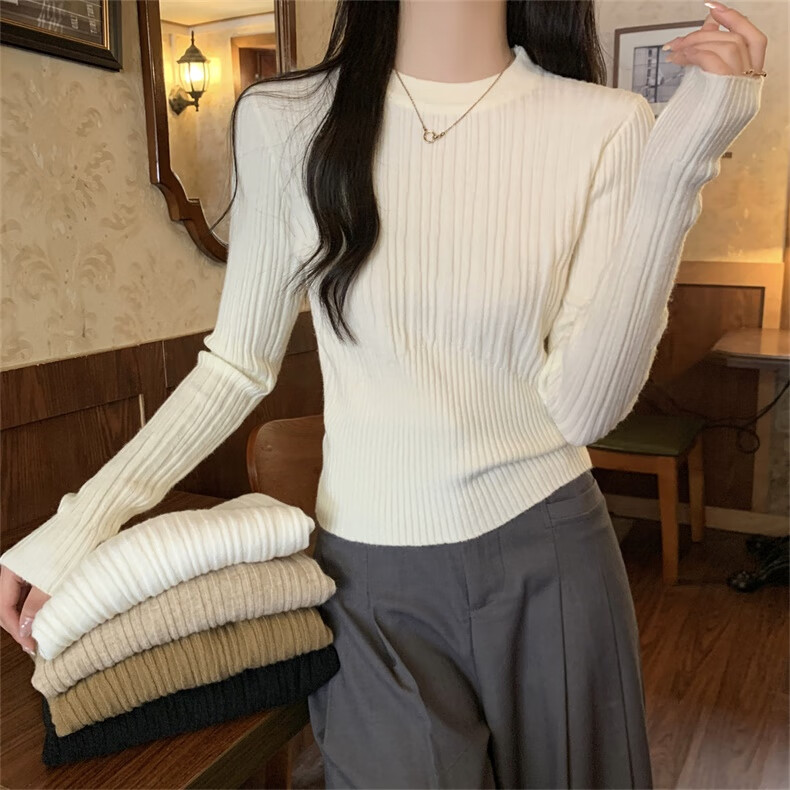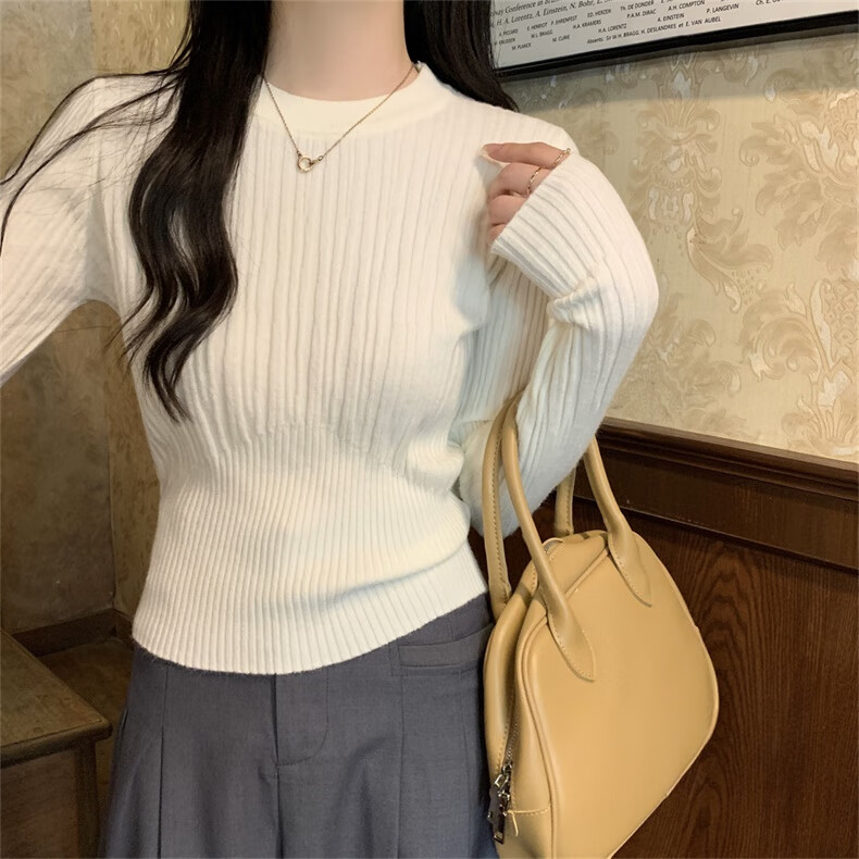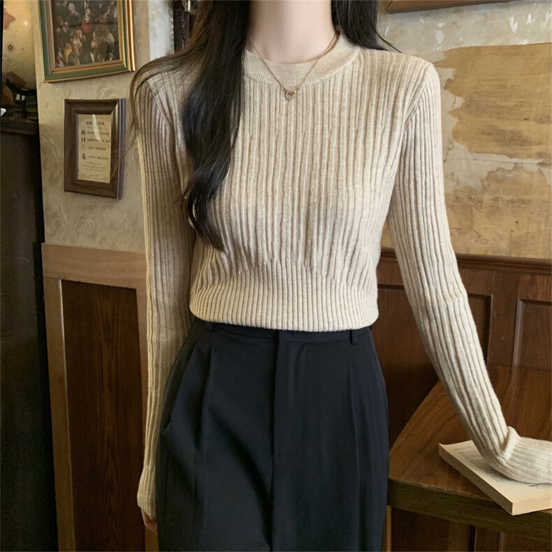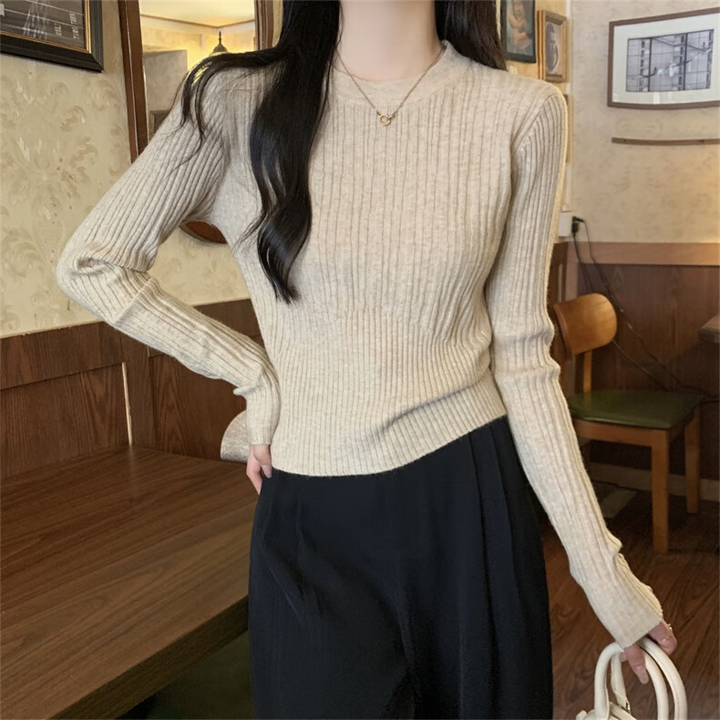 Yu Zhaolin (YUZHAOLIN) Andy velvet bottoming sweater sweater for women 2025 spring, autumn and winter design with pit stripes, slim short inner top