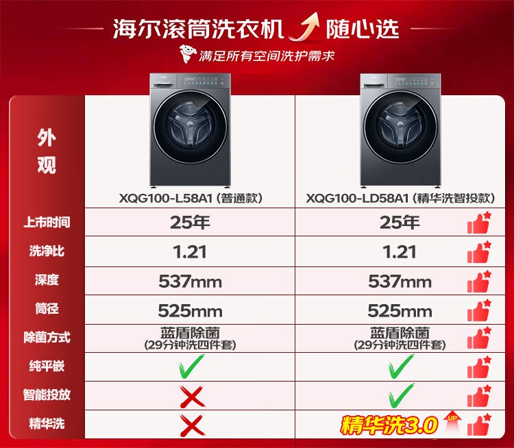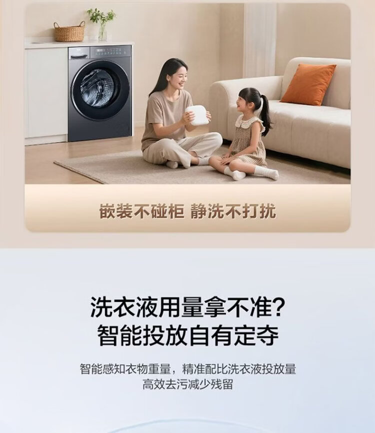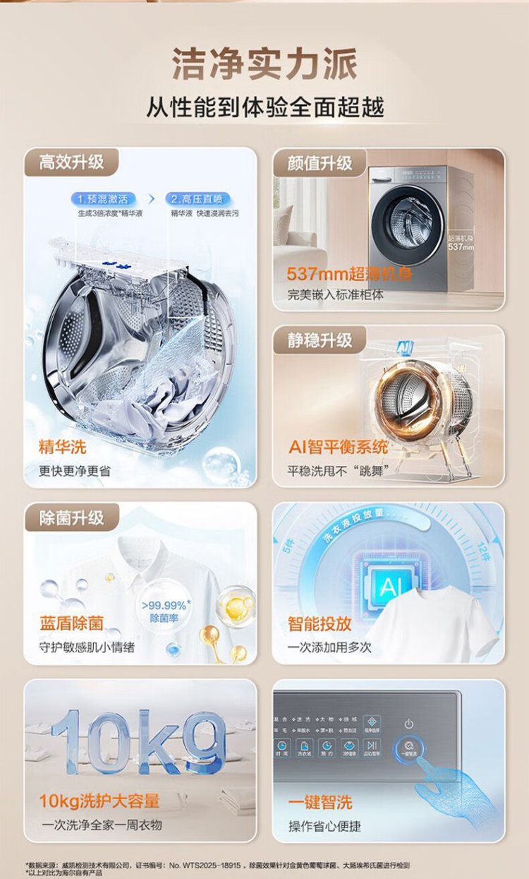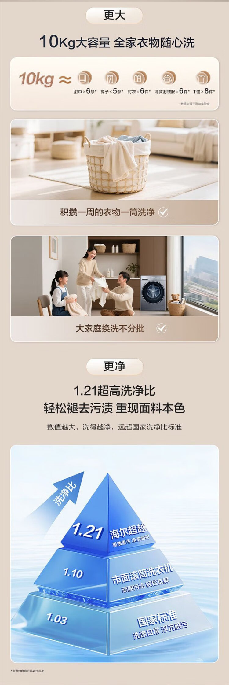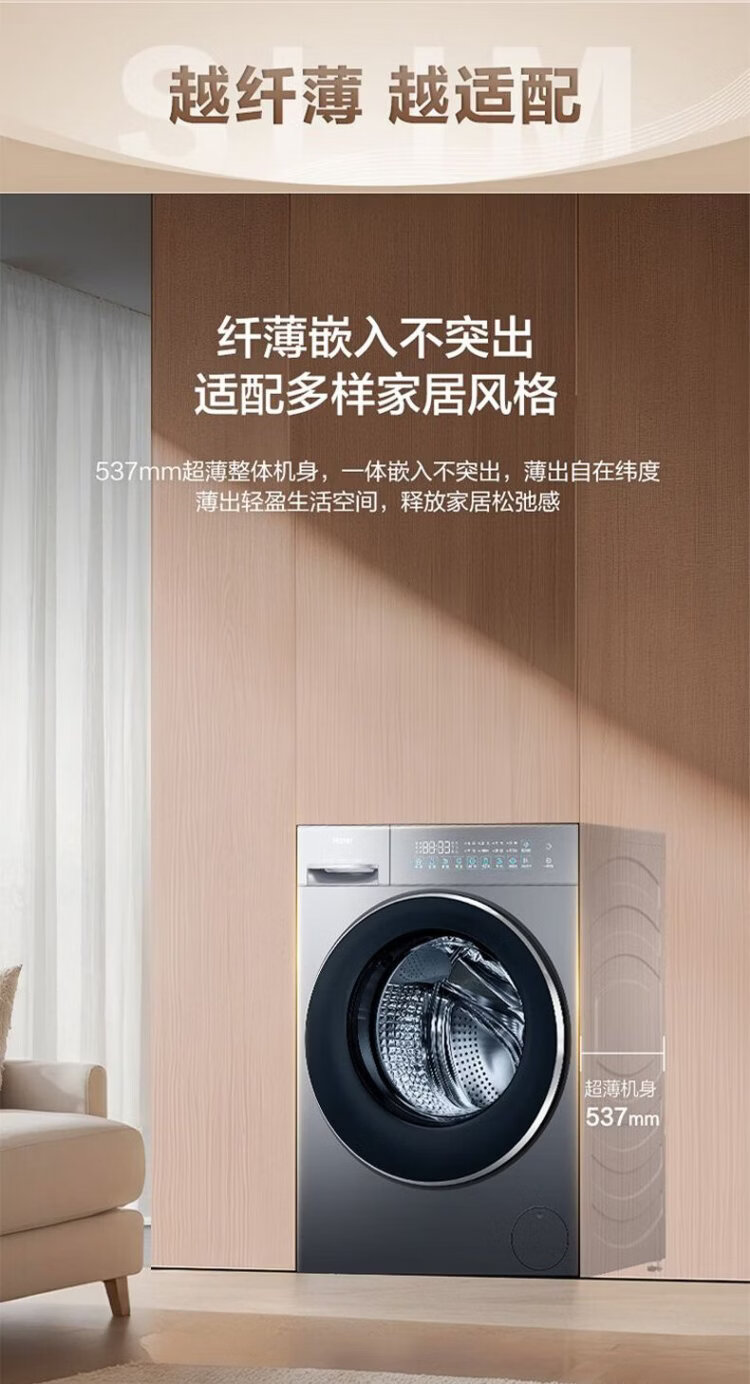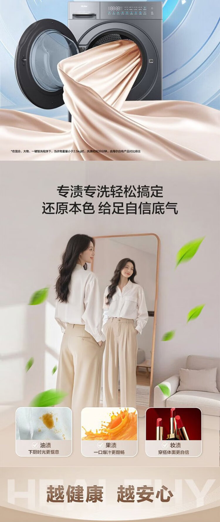 Haier Essence Washing Drum Washing Machine 10KG Household Fully Automatic Frequency Conversion Ultra-Thin Smart Put Blue Shield Sterilization Eight-Dimensional Shock Absorption One Piece Smart Wash + Anti-Rust XQG100-LD58A1