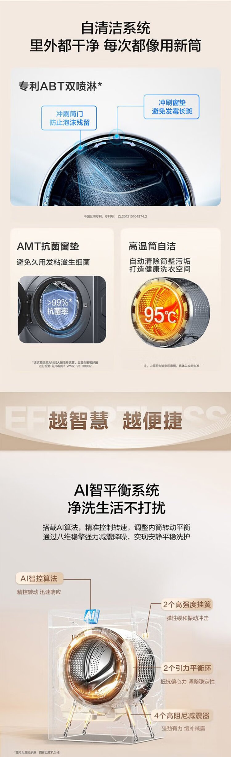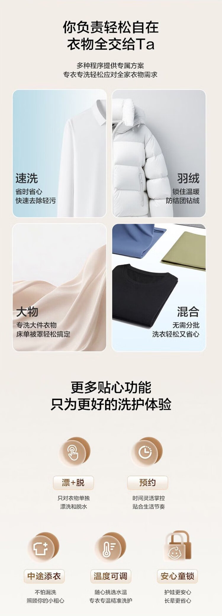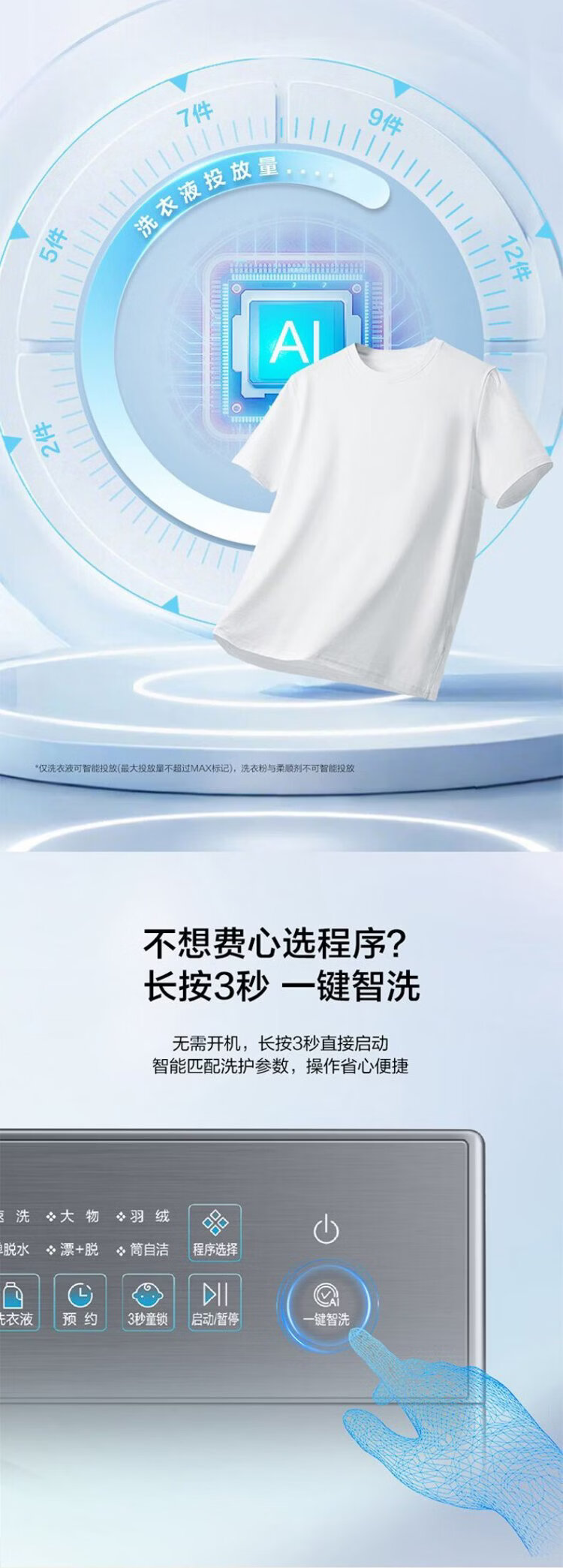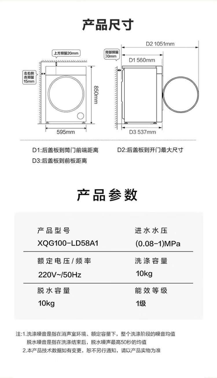 Haier Essence Washing Drum Washing Machine 10KG Household Fully Automatic Frequency Conversion Ultra-Thin Smart Put Blue Shield Sterilization Eight-Dimensional Shock Absorption One Piece Smart Wash + Anti-Rust XQG100-LD58A1