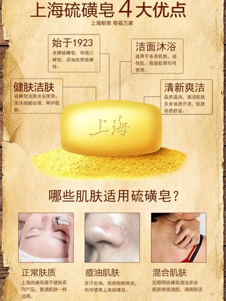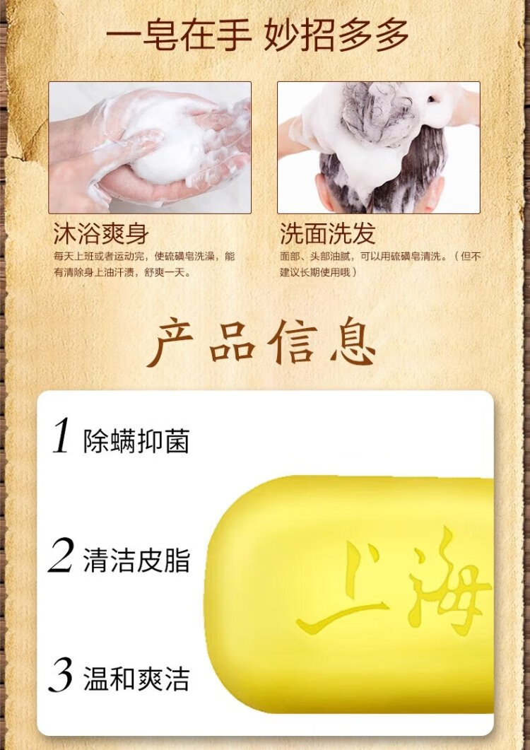Shanghai soap sulfur soap soap bath bath shampoo hair wash face shampoo oil control sulfur shower gel for men 85g*3