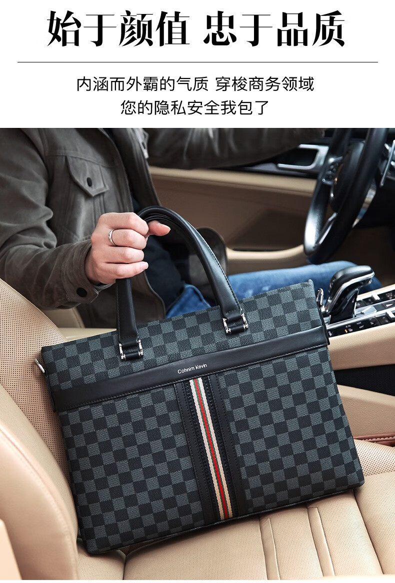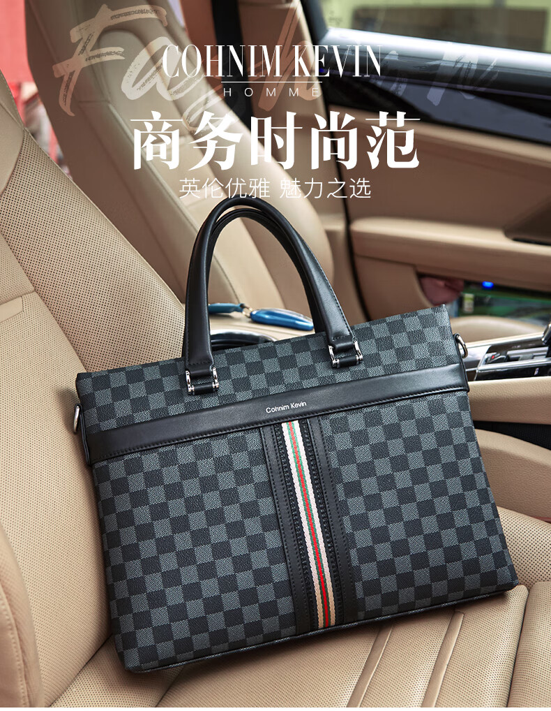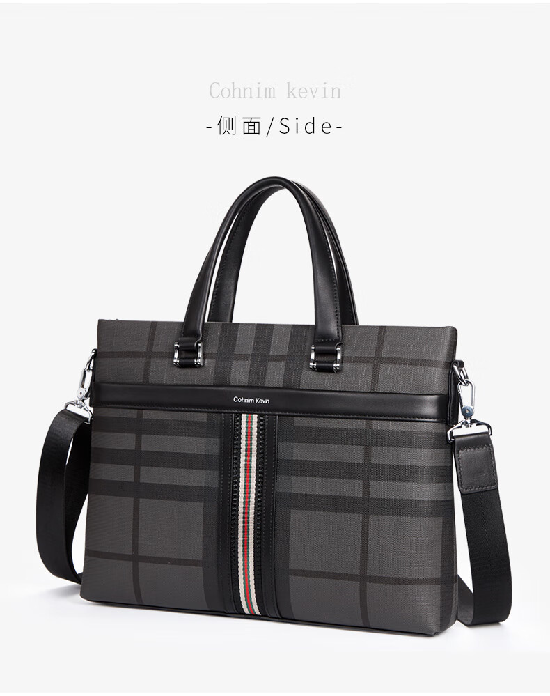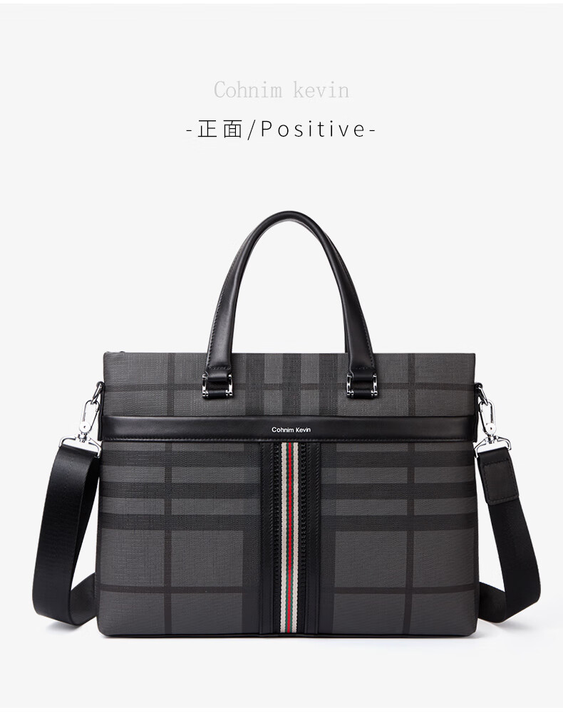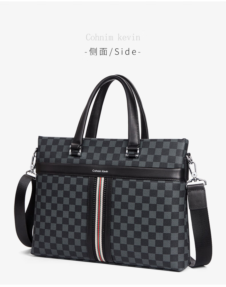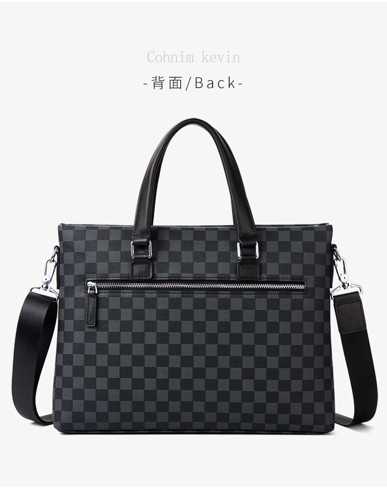 Cohnim kevin luxury men's briefcase laptop document shoulder cross-body bag as a Valentine's Day birthday gift for boyfriend C01834 plaid black shipped from the nearest warehouse large bag 14 inches