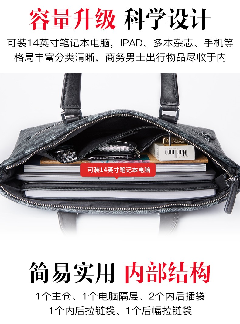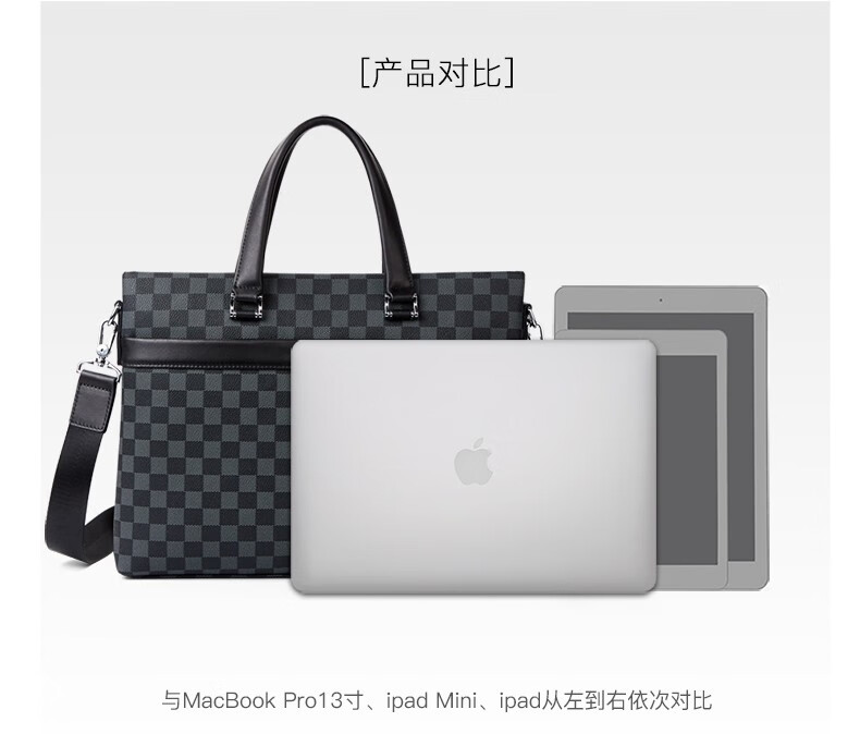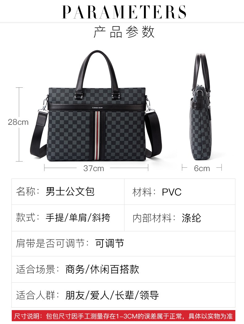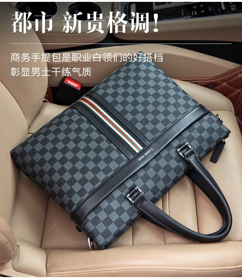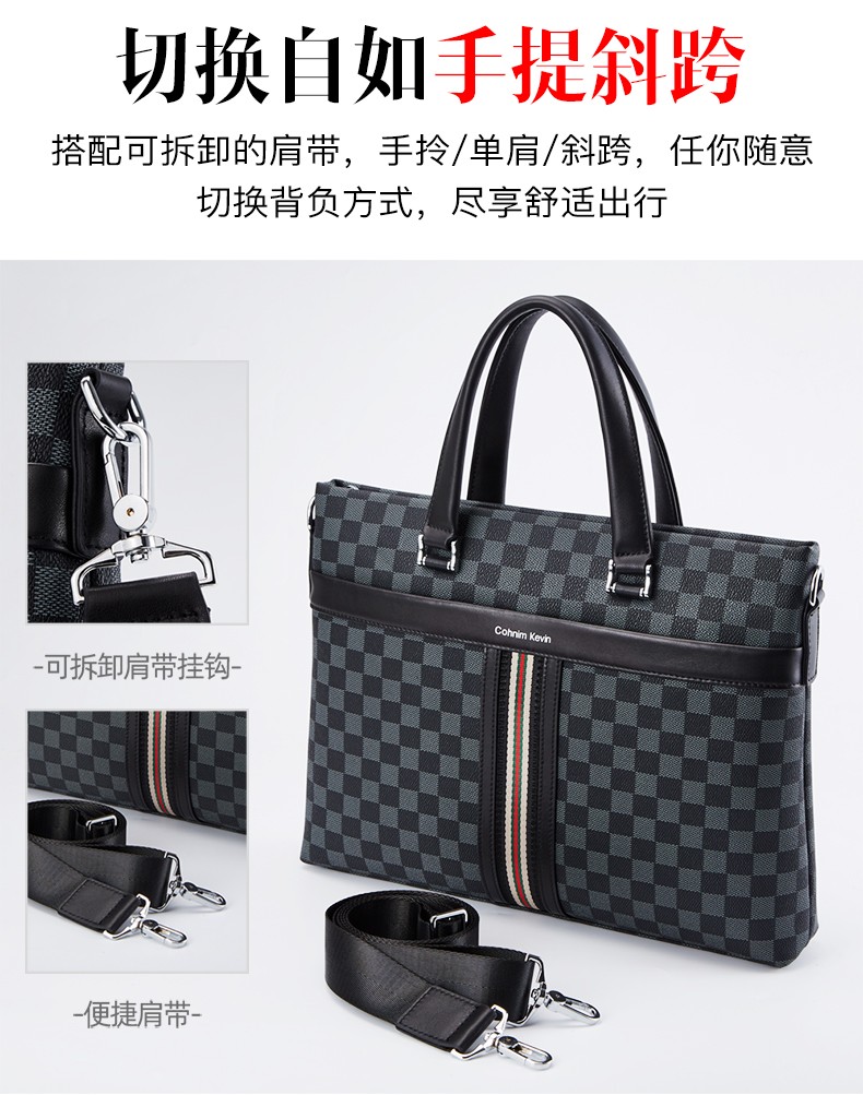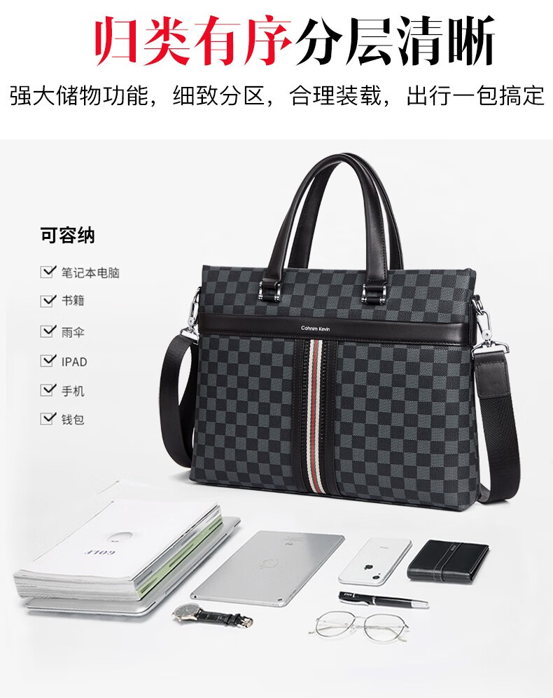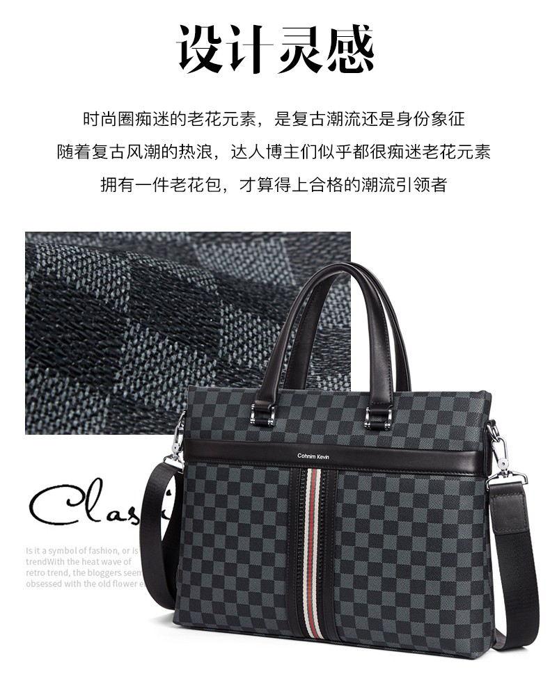 Cohnim kevin luxury men's briefcase laptop document shoulder cross-body bag as a Valentine's Day birthday gift for boyfriend C01834 plaid black shipped from the nearest warehouse large bag 14 inches
