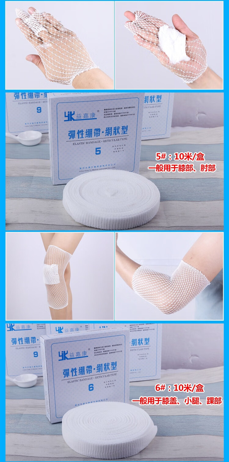 Elastic mesh bandage, elastic bandage, cap, headgear, mesh sleeve, knee joint, finger PICC protective sleeve, 3# children's wrist, forearm, 10 meters/box