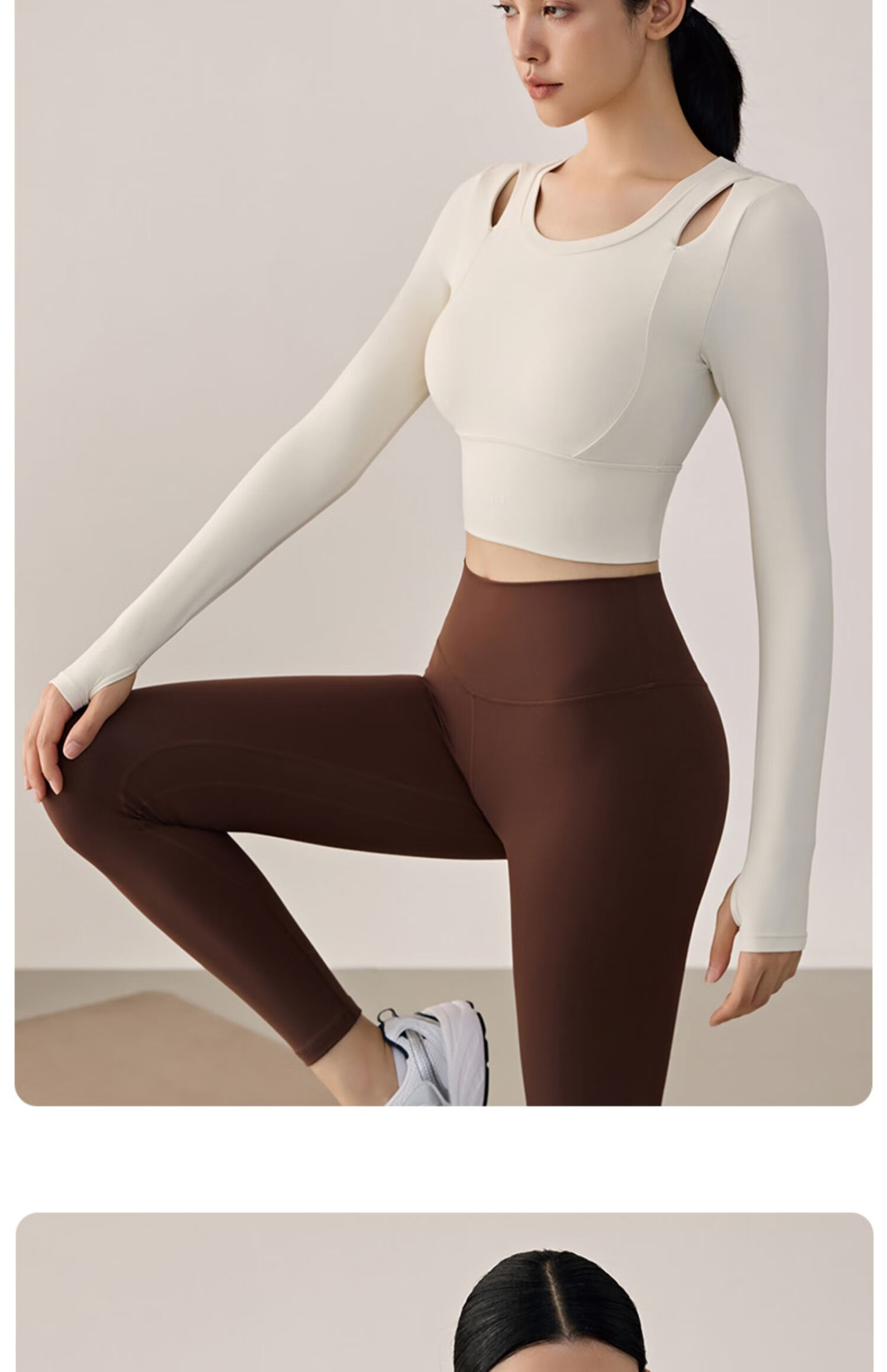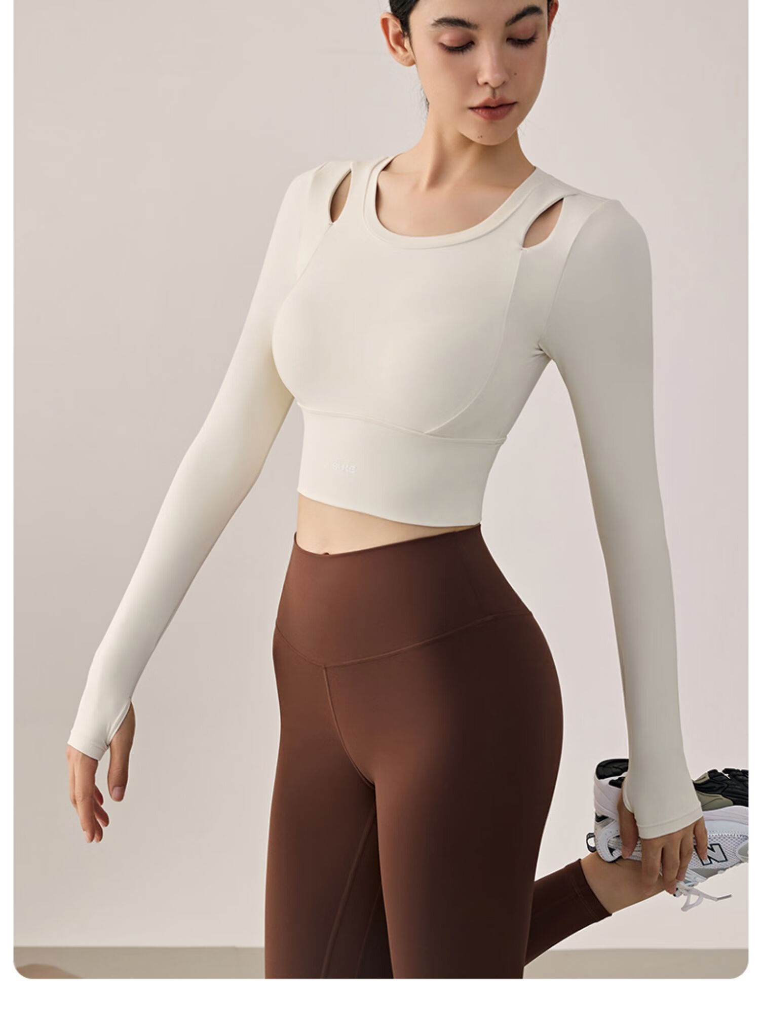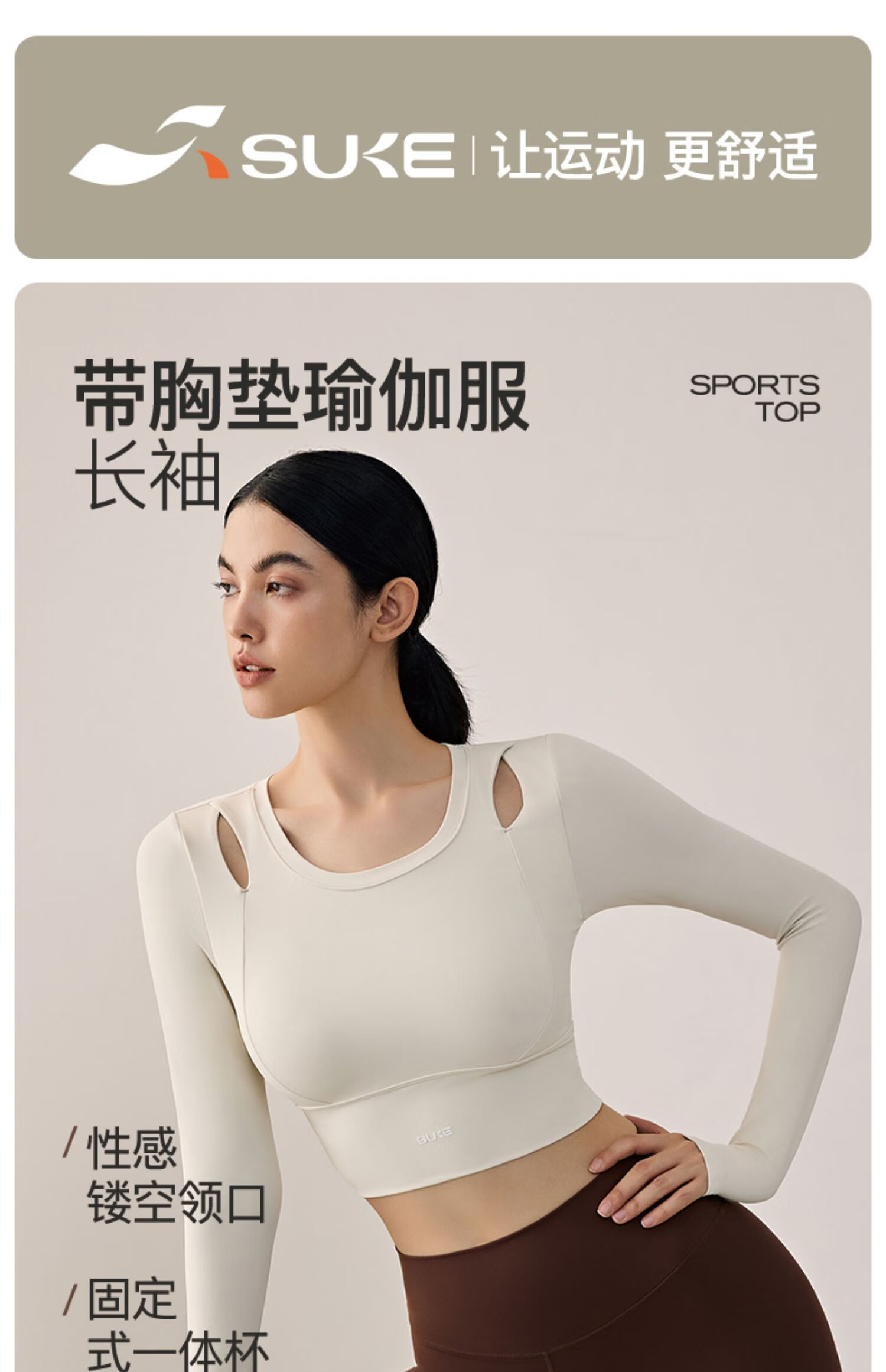 Sculpture SUKE slim yoga clothing top for women autumn and winter new style with chest pad running Pilates training fitness sports long sleeves