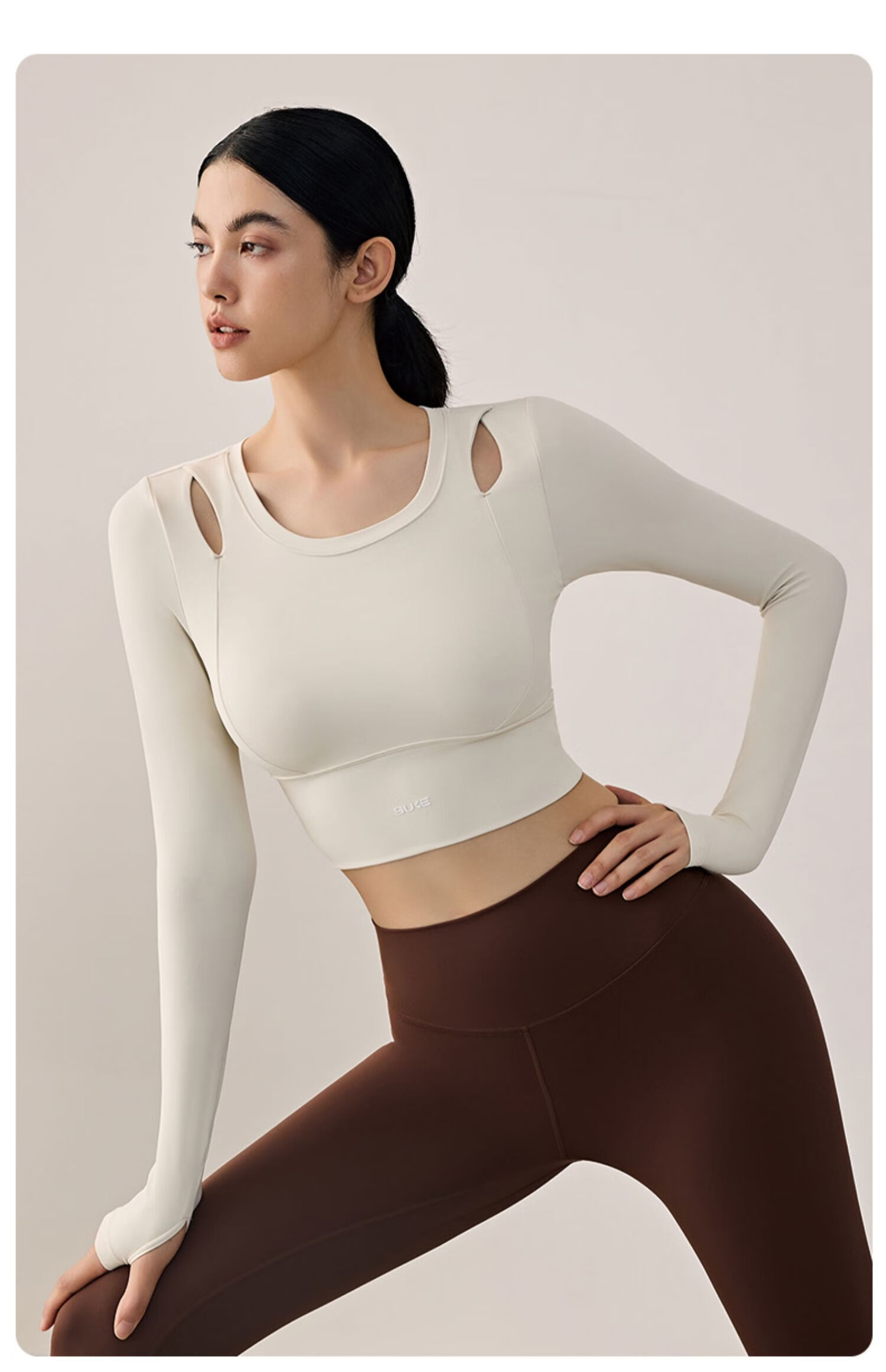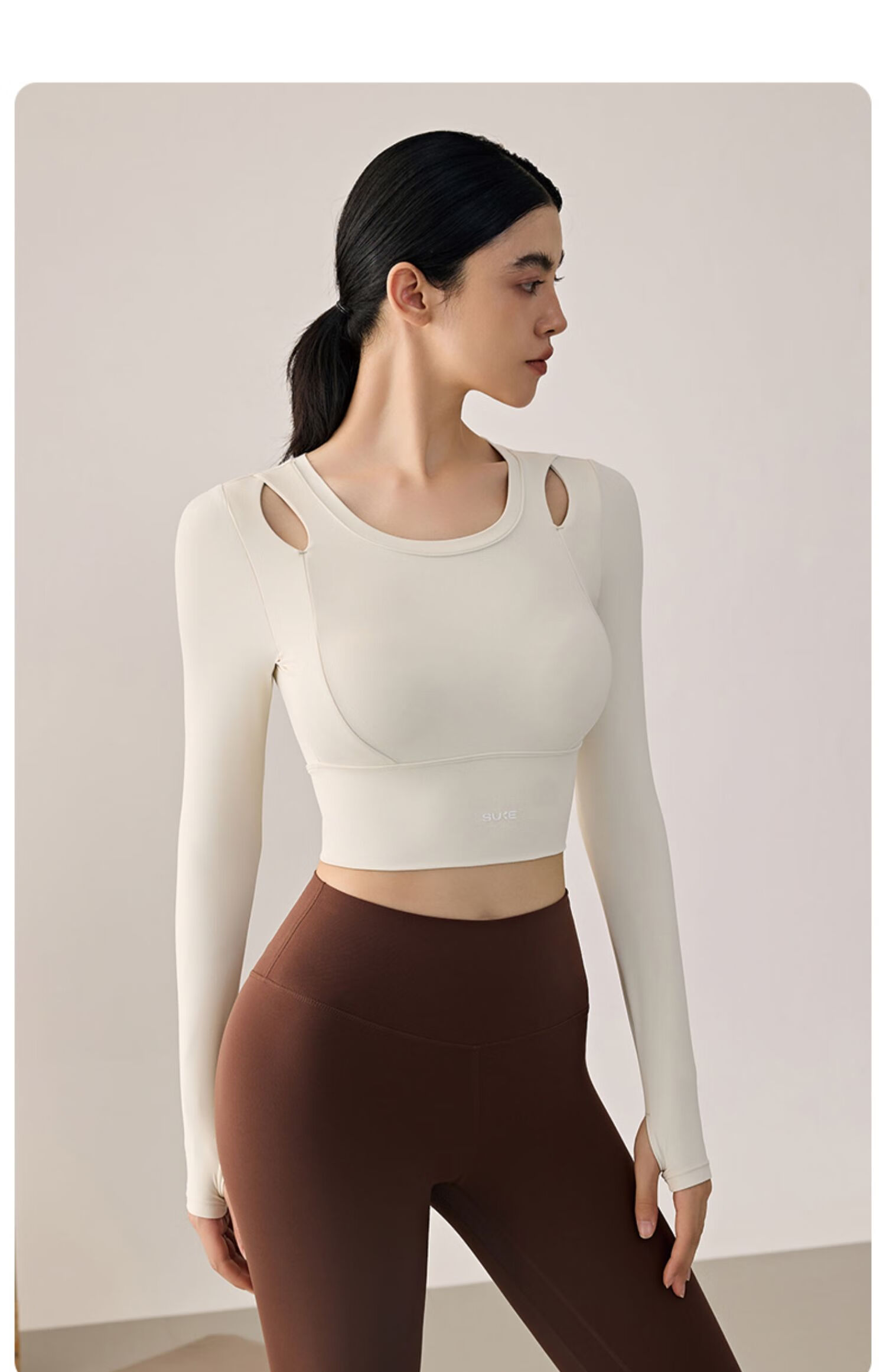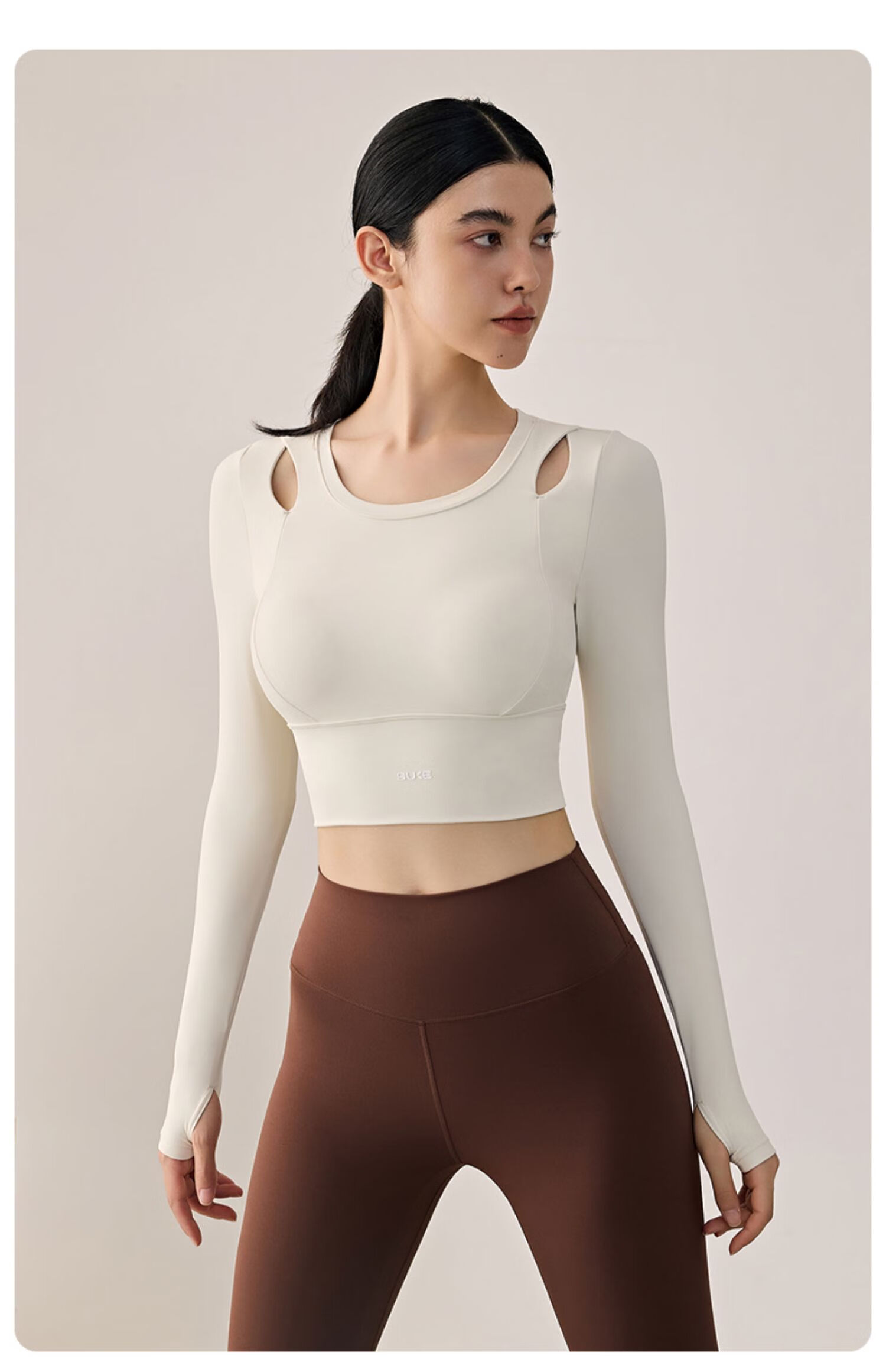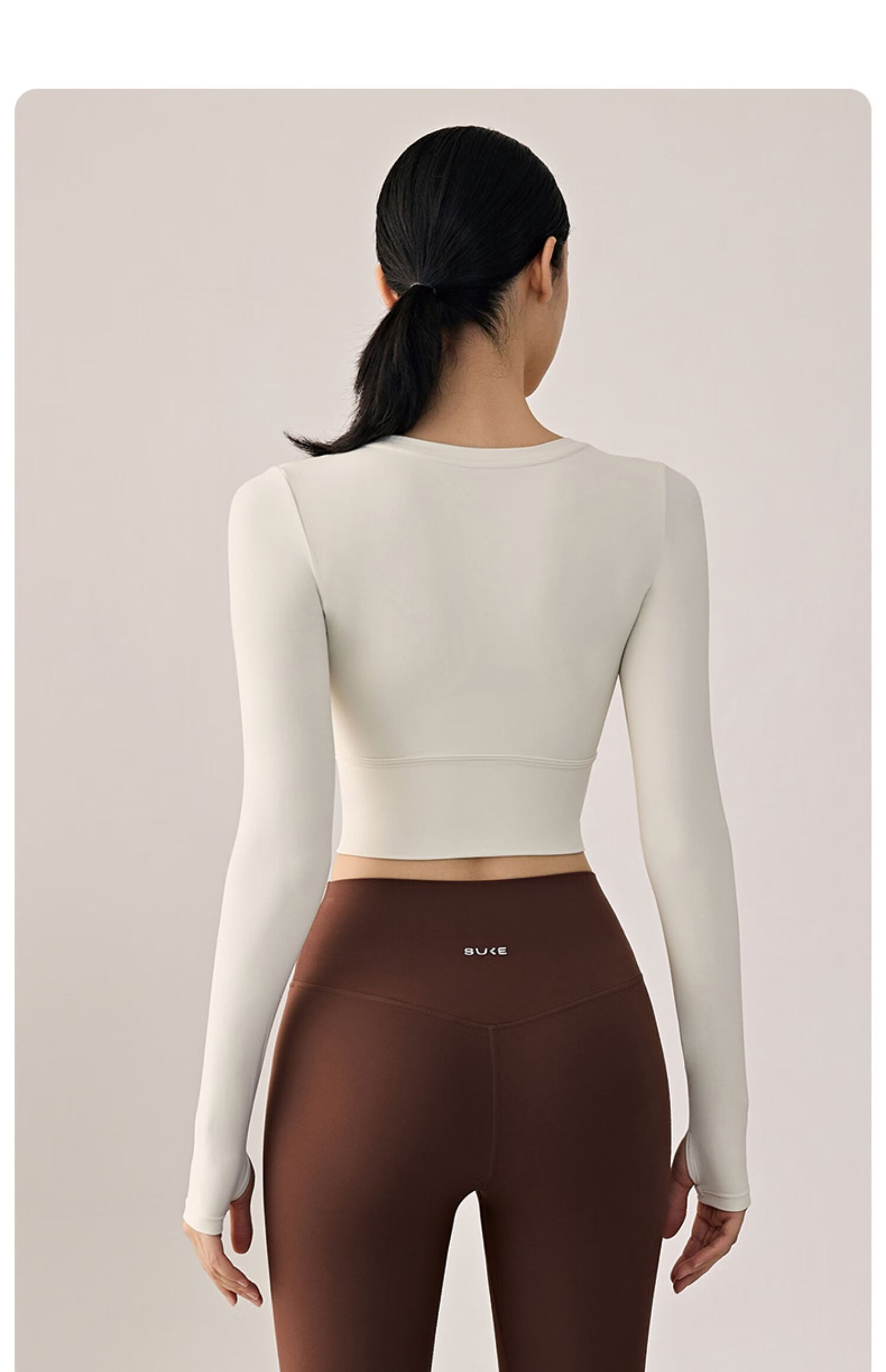 Sculpture SUKE slim yoga clothing top for women autumn and winter new style with chest pad running Pilates training fitness sports long sleeves