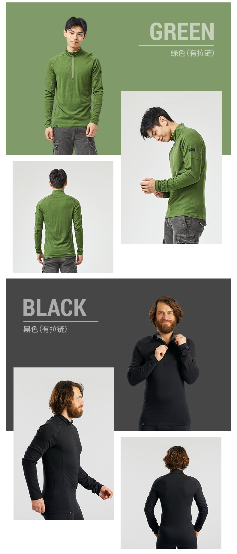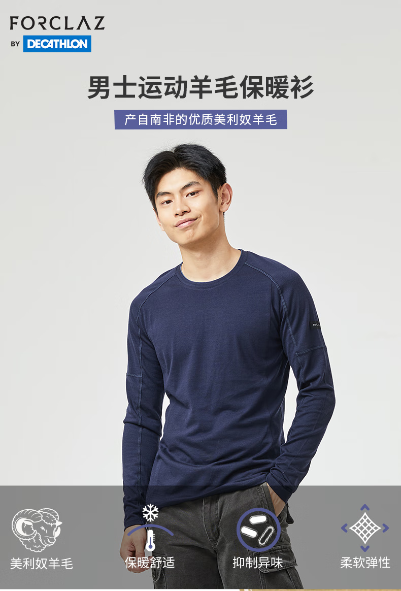 Decathlon Merino Wool Sweater Men's Warm T-Shirt Transparent Black (Zipper Style) XXL/185-2774633