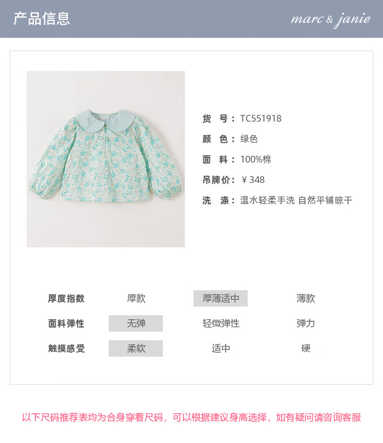 MARC&JANIE Mark Jenny Girls Doll Collar Button Cotton Floral Shirt 2026 Spring and Autumn 551918