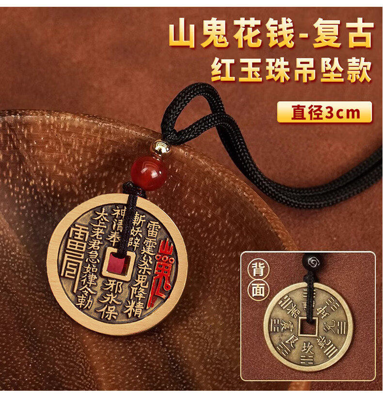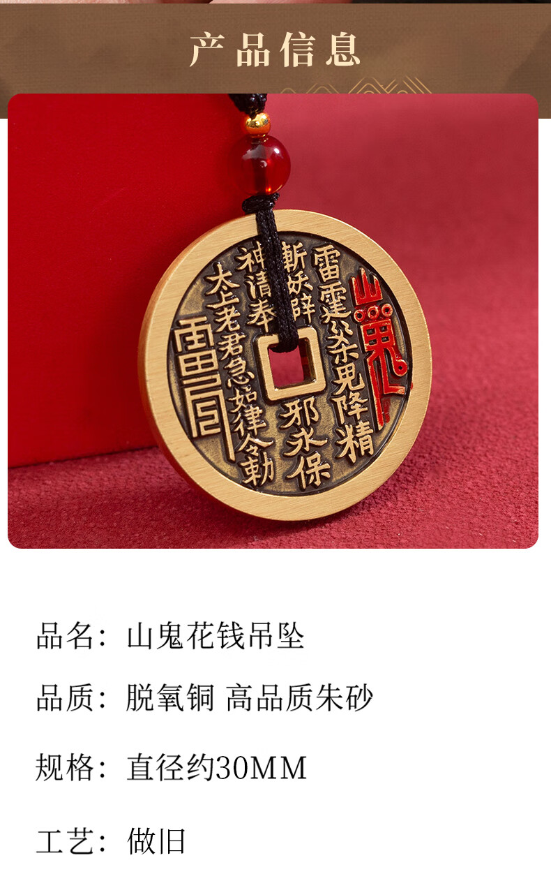 Longhu Mountain Mountain Ghost Money Pendant Cinnabar Necklace Taoist Genuine Ancient Coin Copper Coin Transfer Safety Buckle Life Year Pendant