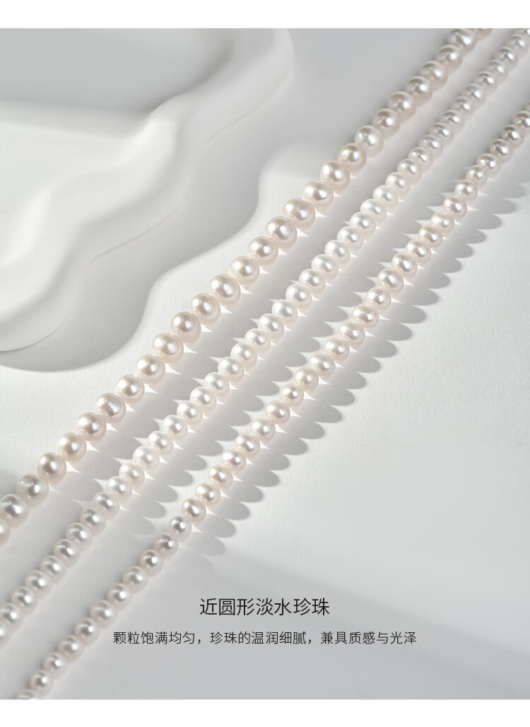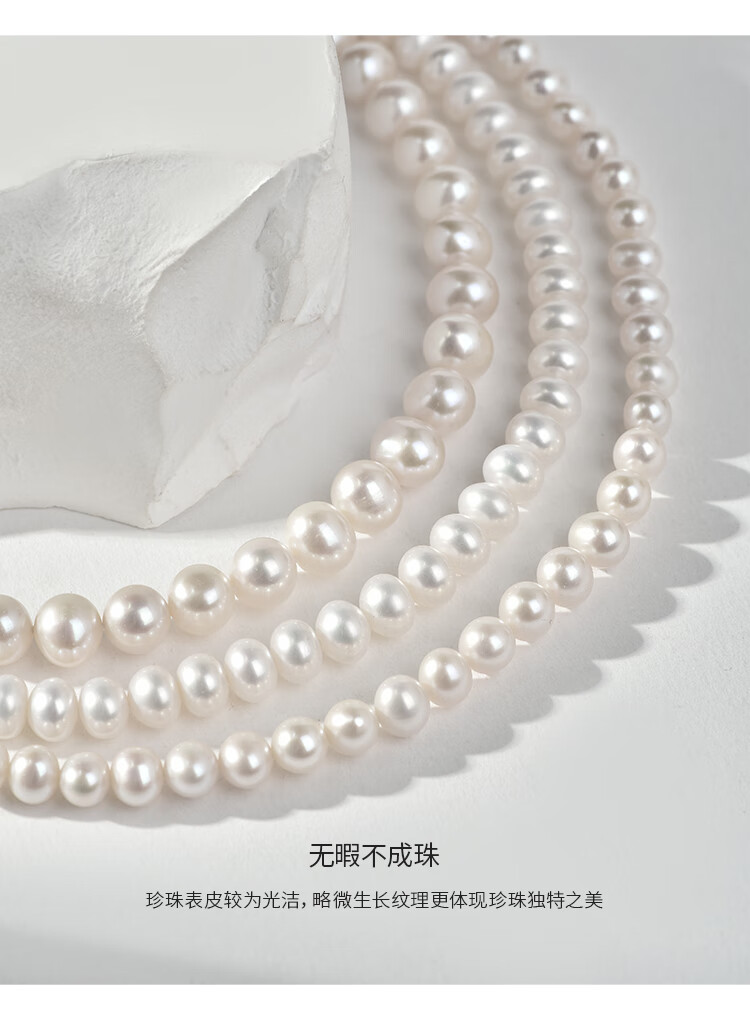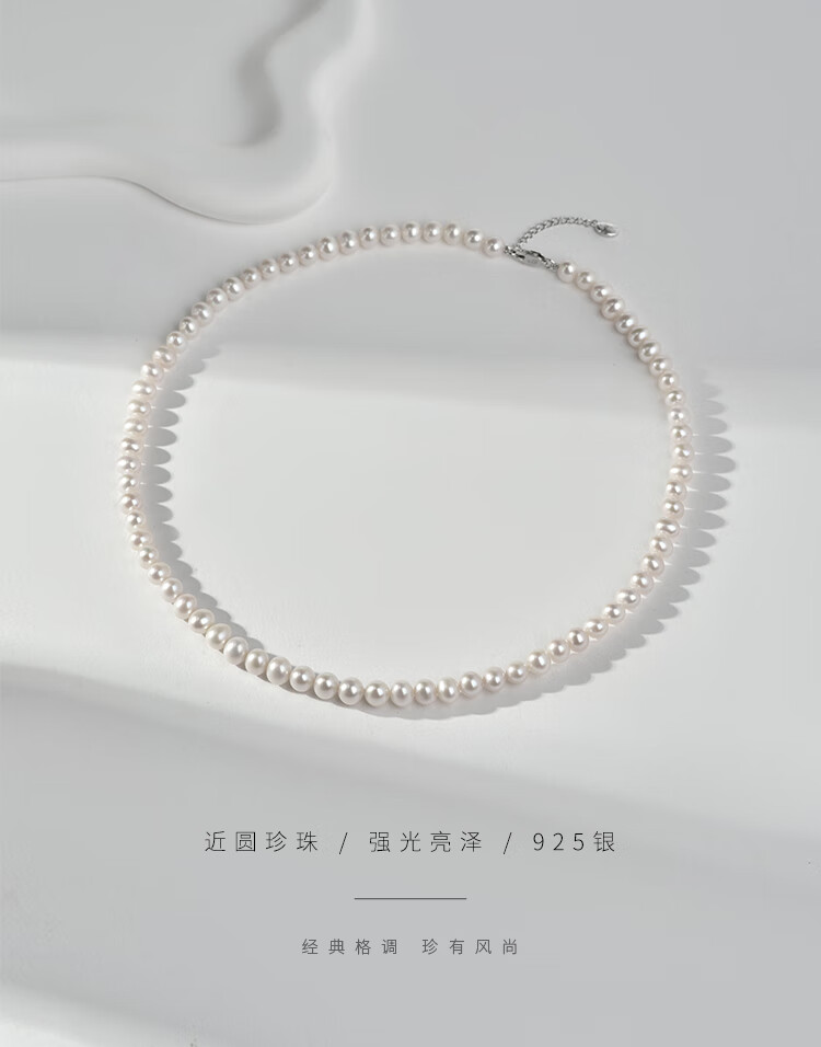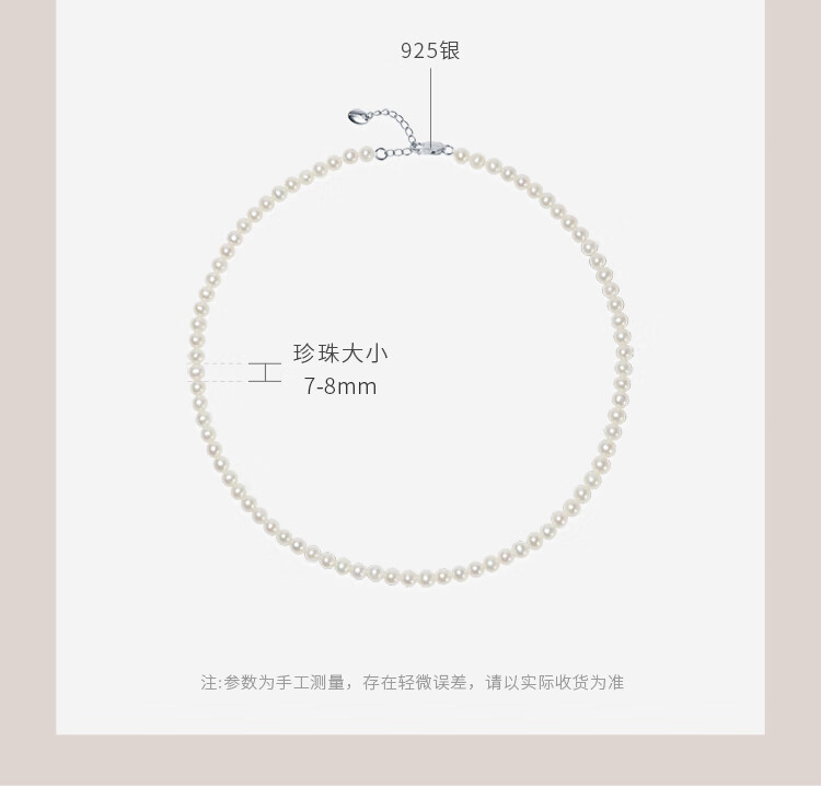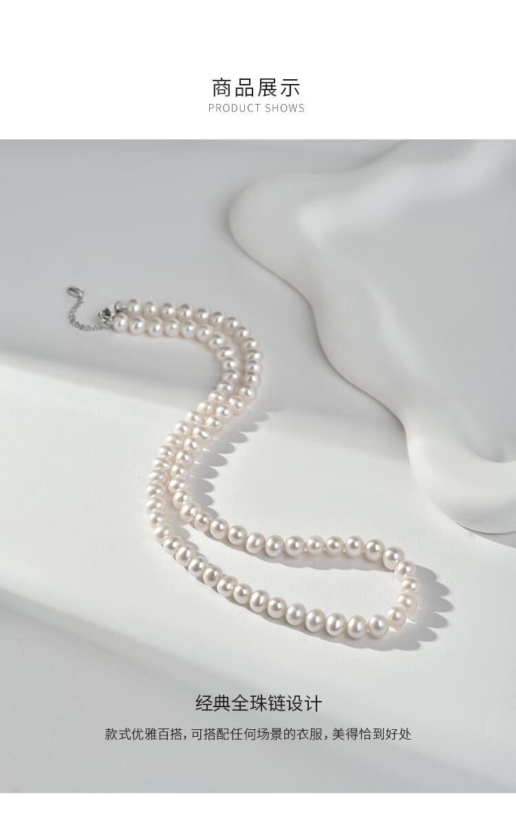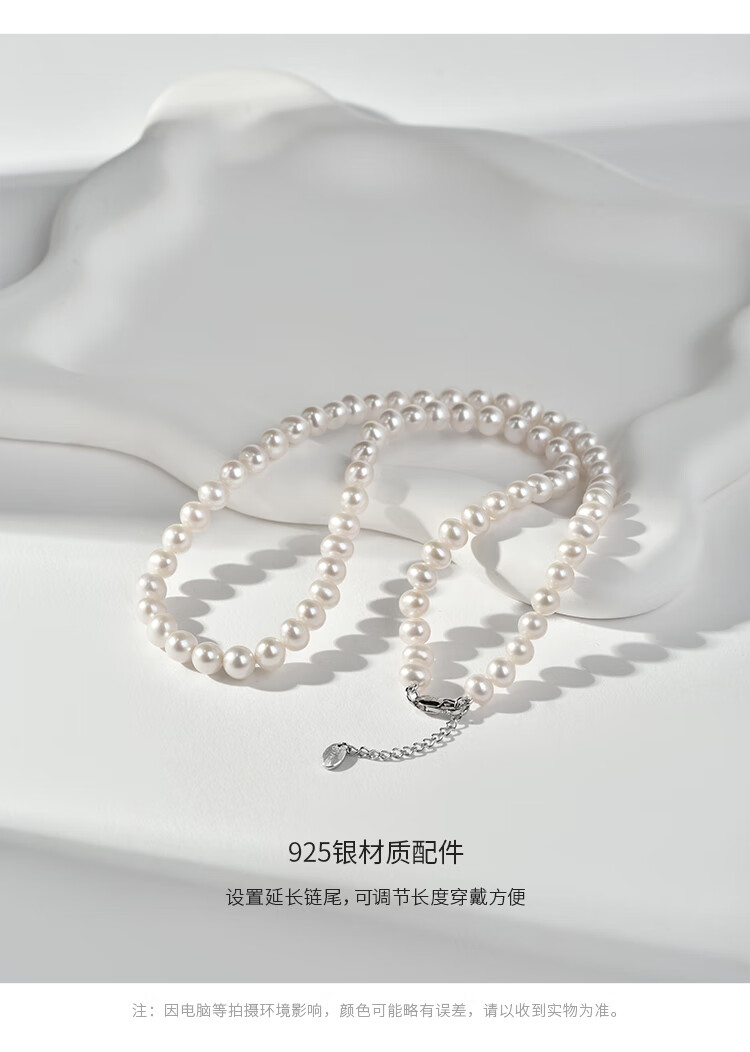Jingrun Pearl Necklace 925 Silver Freshwater Pearl Necklace Nearly Round 7-8mm Full Bead Chain as a Birthday Gift for Your Lover