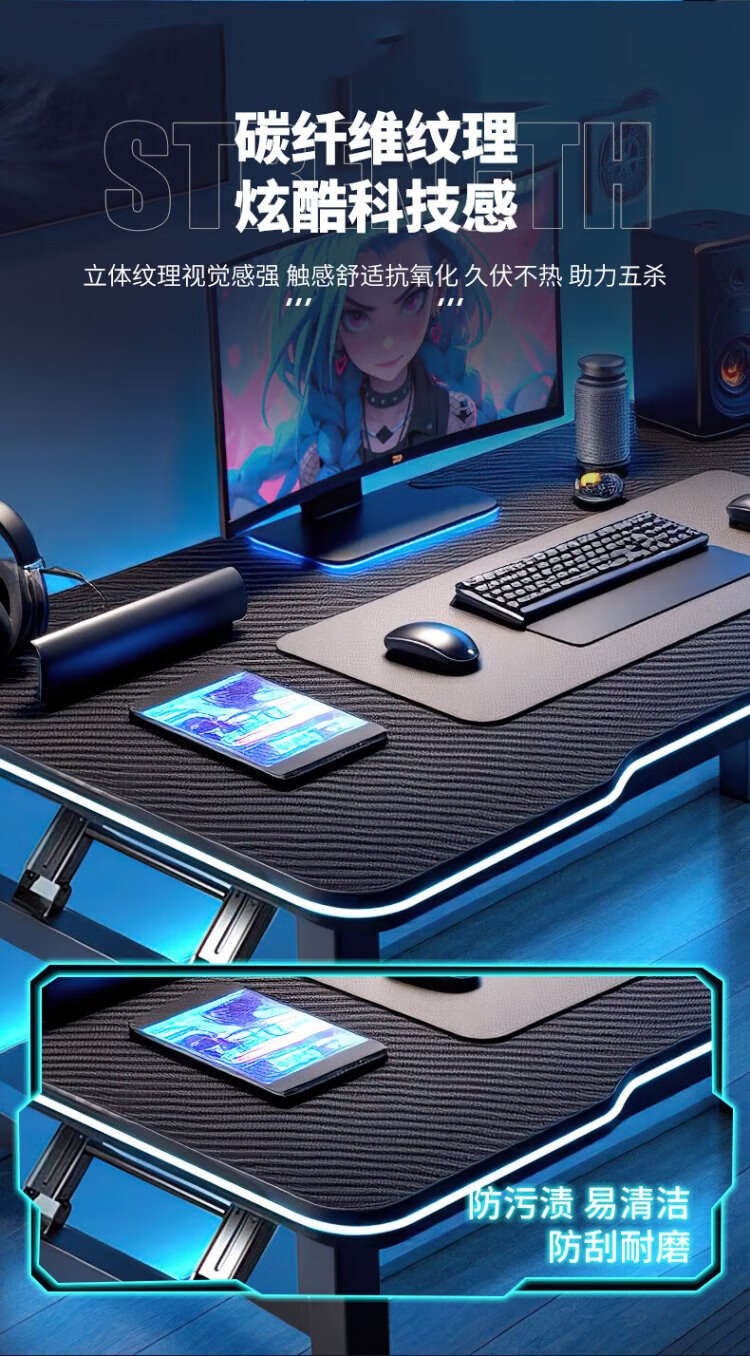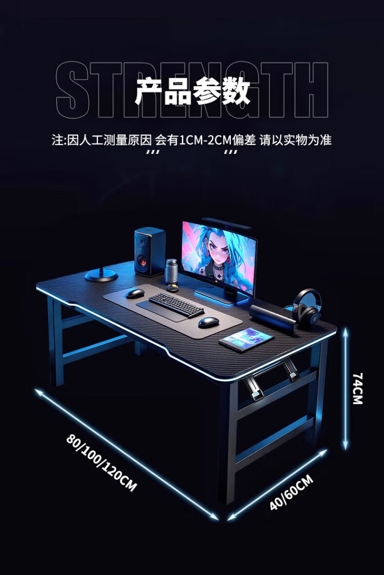 Yaoying computer desk folding table home e-sports desk student study table desk YLZ01 black 100*60cm